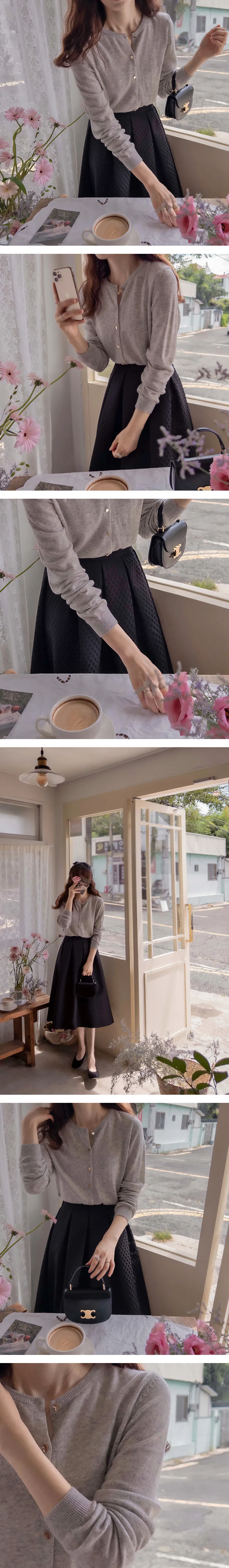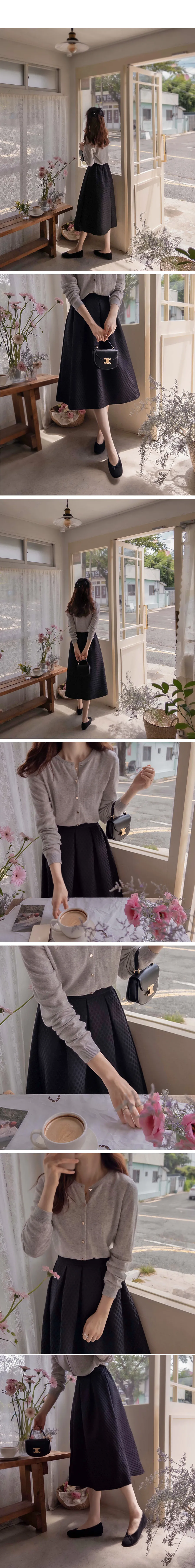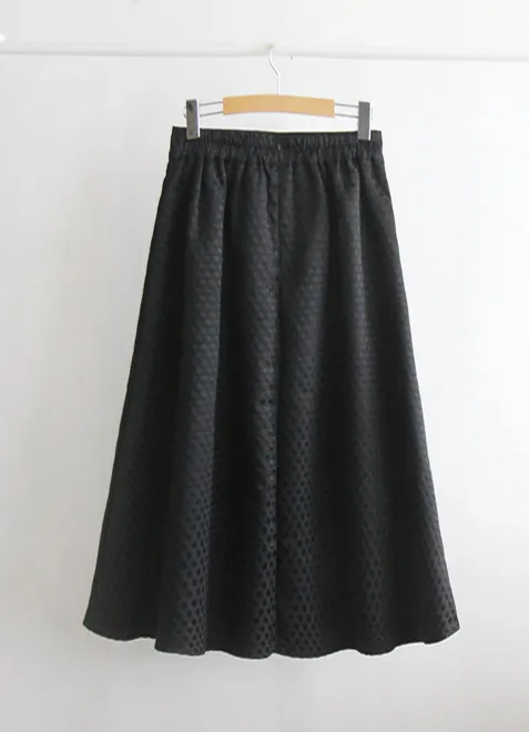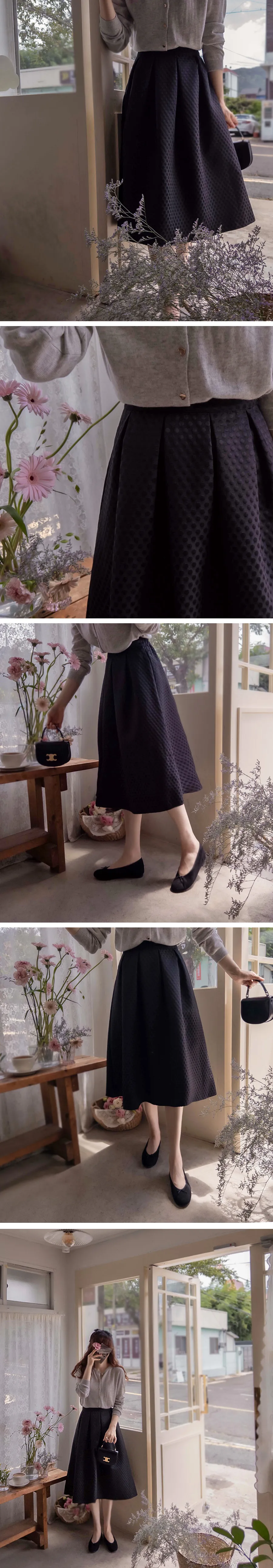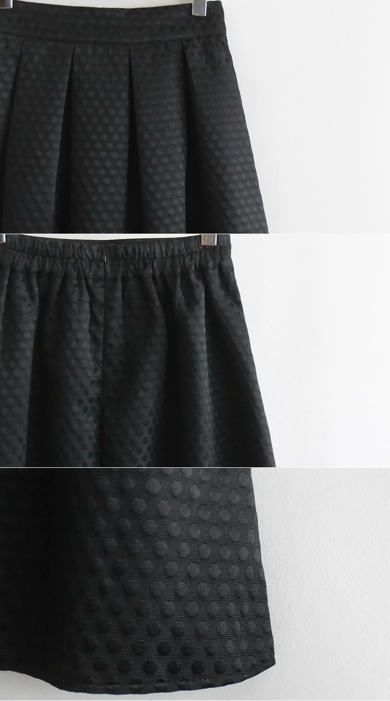 [聚酯纖維襯裡][腰部由後帶組成][後拉鍊構成][基本而奢華的緹花面料][捲邊合身打造時尚協調][具有秋天感且非常協調的裙子][圓點圖案的裙子