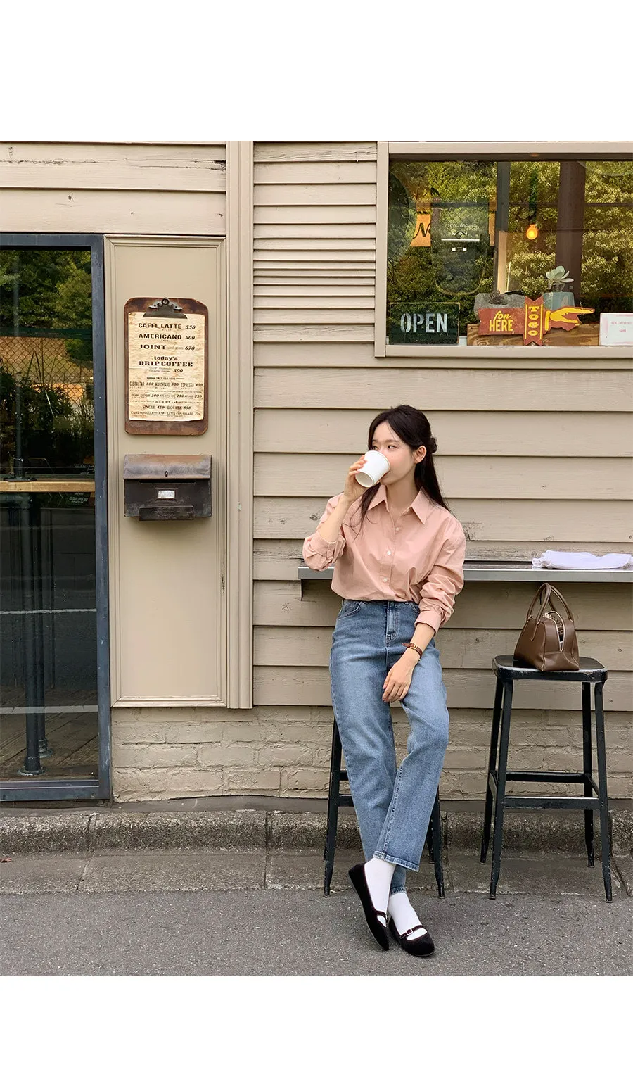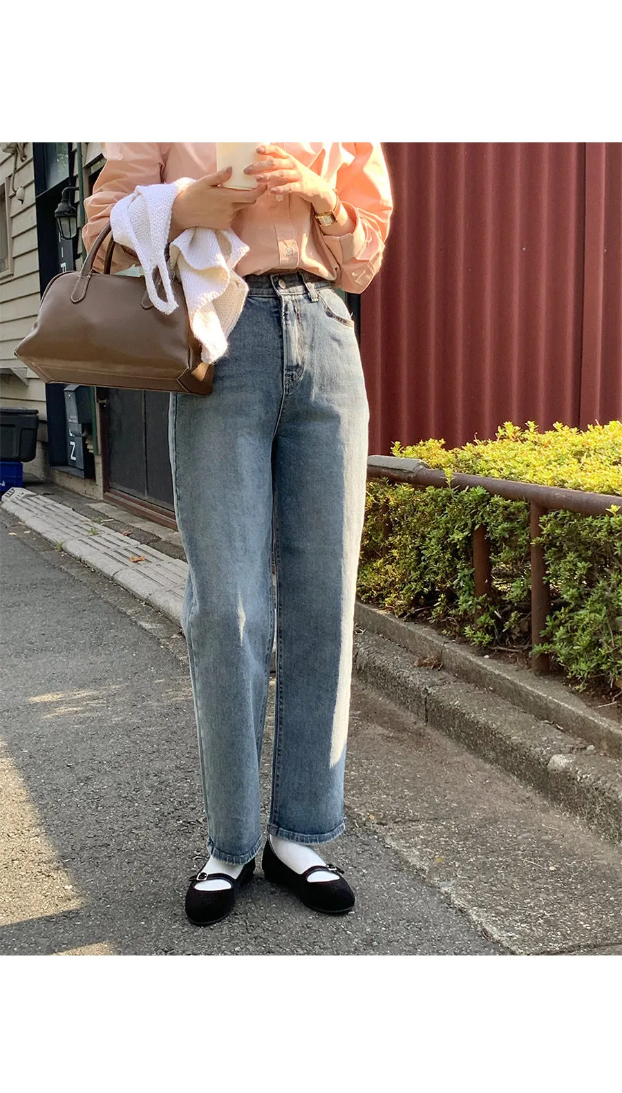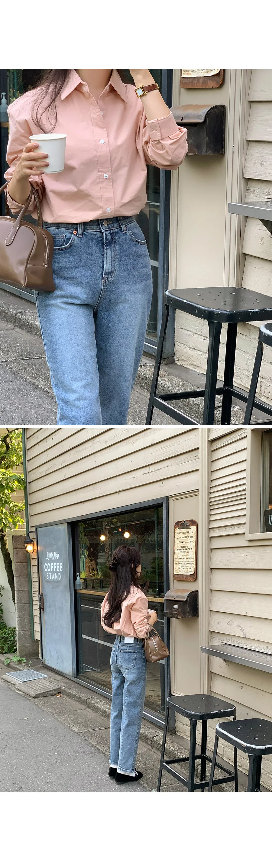 復古魅力後側剪裁隱藏鬆緊錐形牛仔褲
