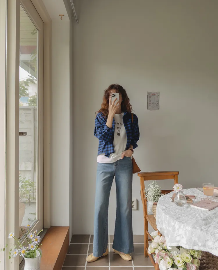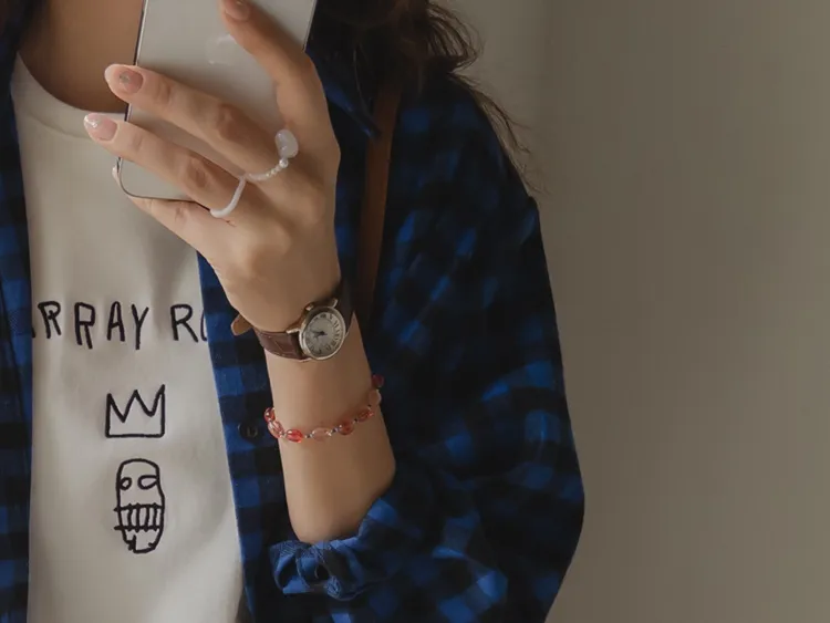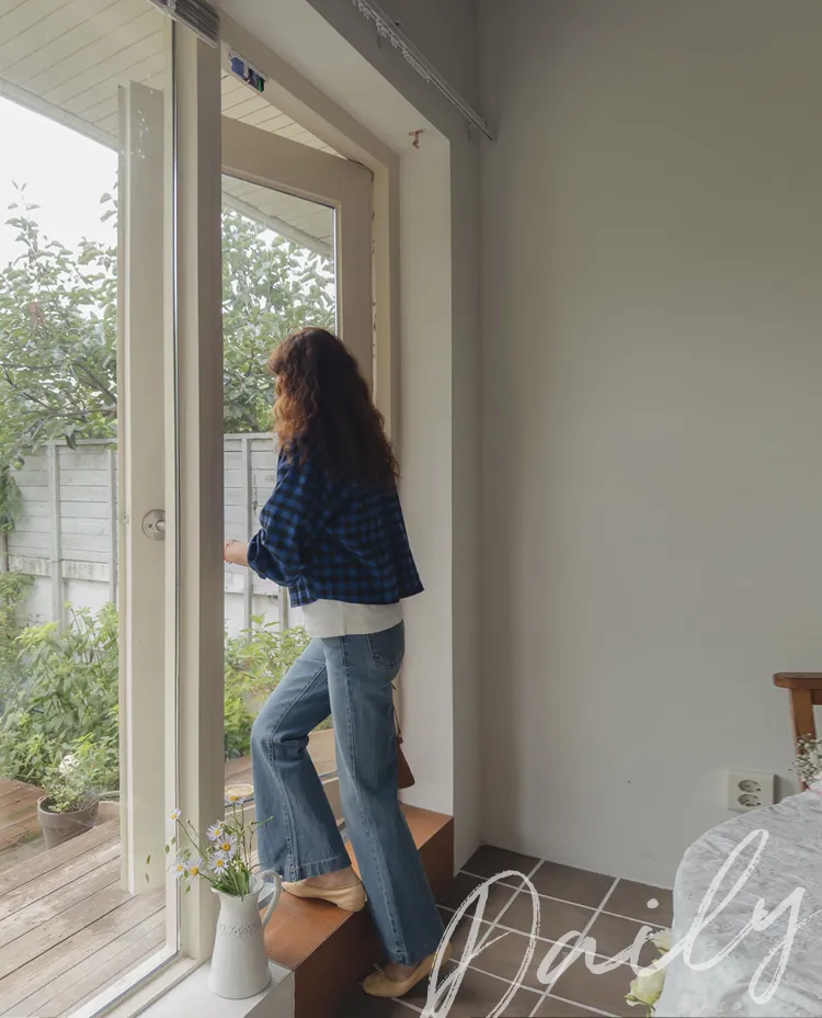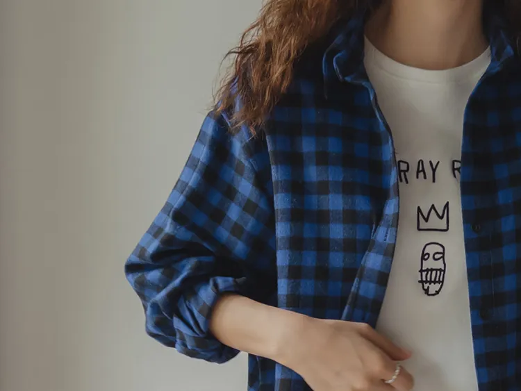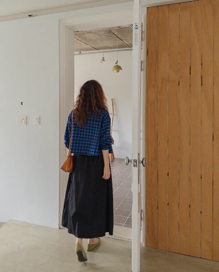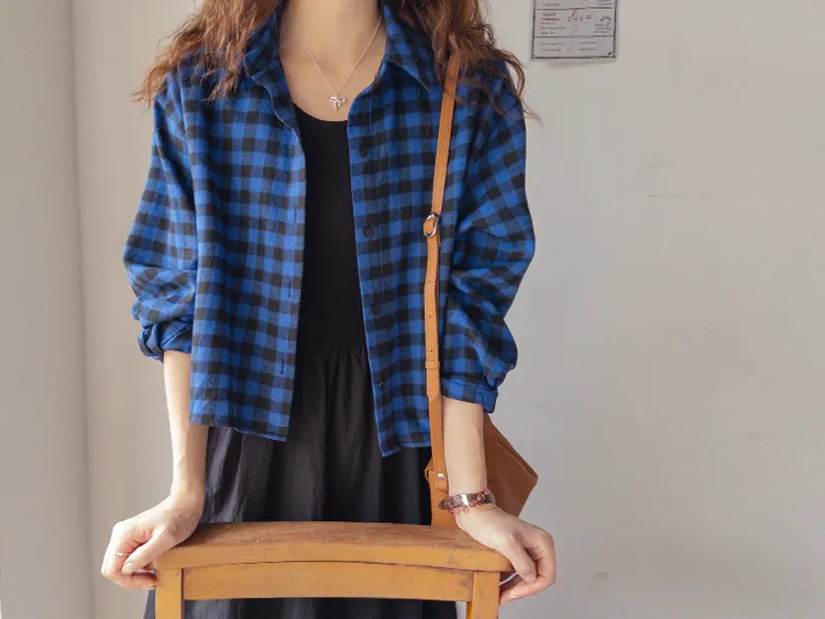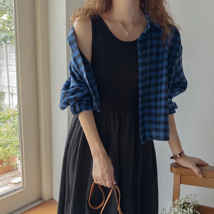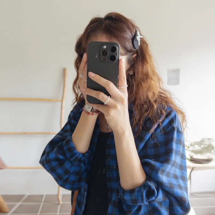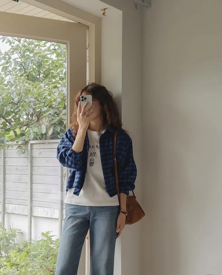 【成為亮點的格紋襯衫♥】【外面的桃色拉絲材質,很有觸感~】【即使沒有任何特效,格紋圖案也很有存在感!半短款,顯腿長】