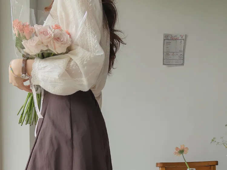 【非常可愛的蕾絲排扣上衣♥,帶有鏤空蕾絲布料細節】【立體蕾絲圖案】【無論搭配褲子裙子都很棒~】