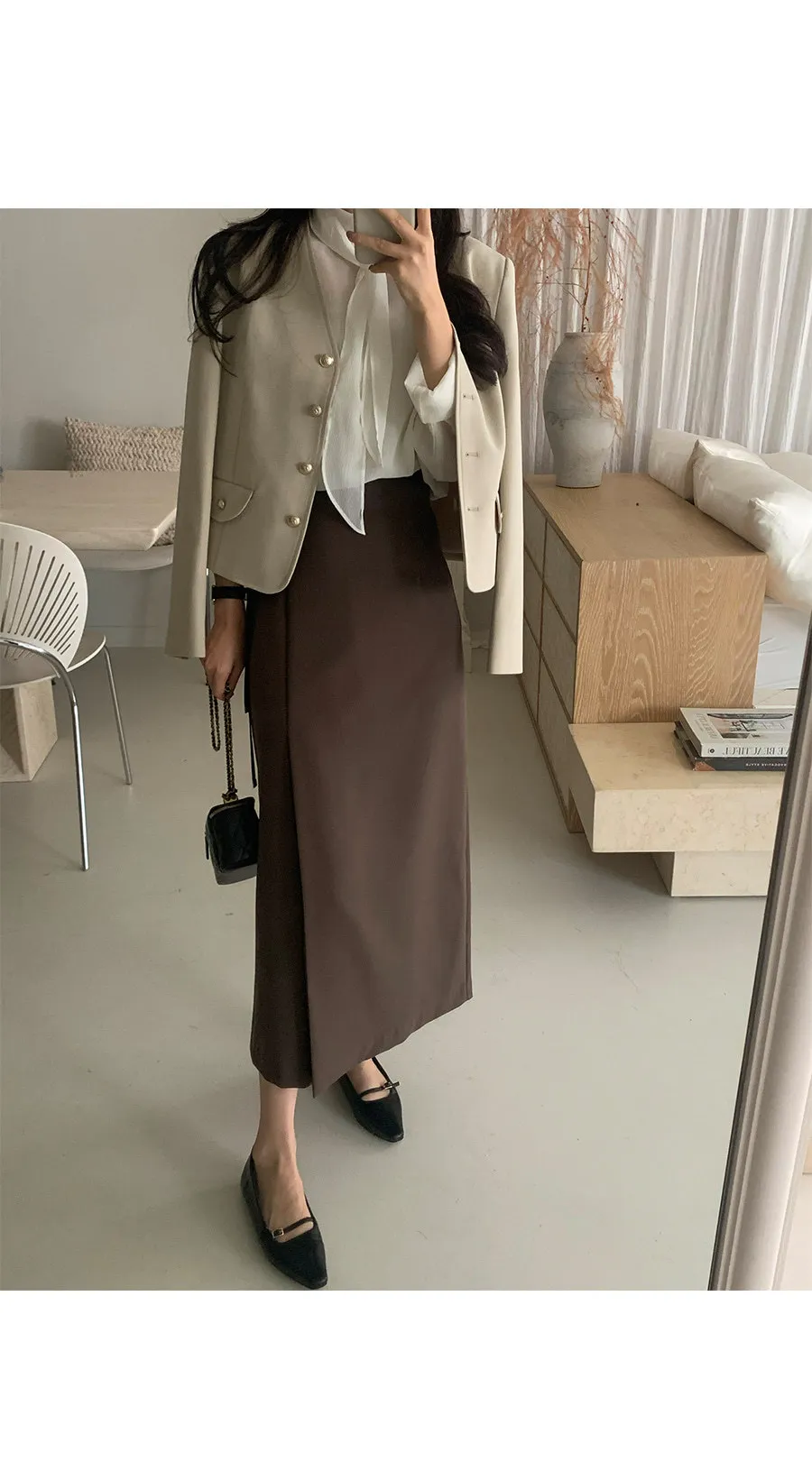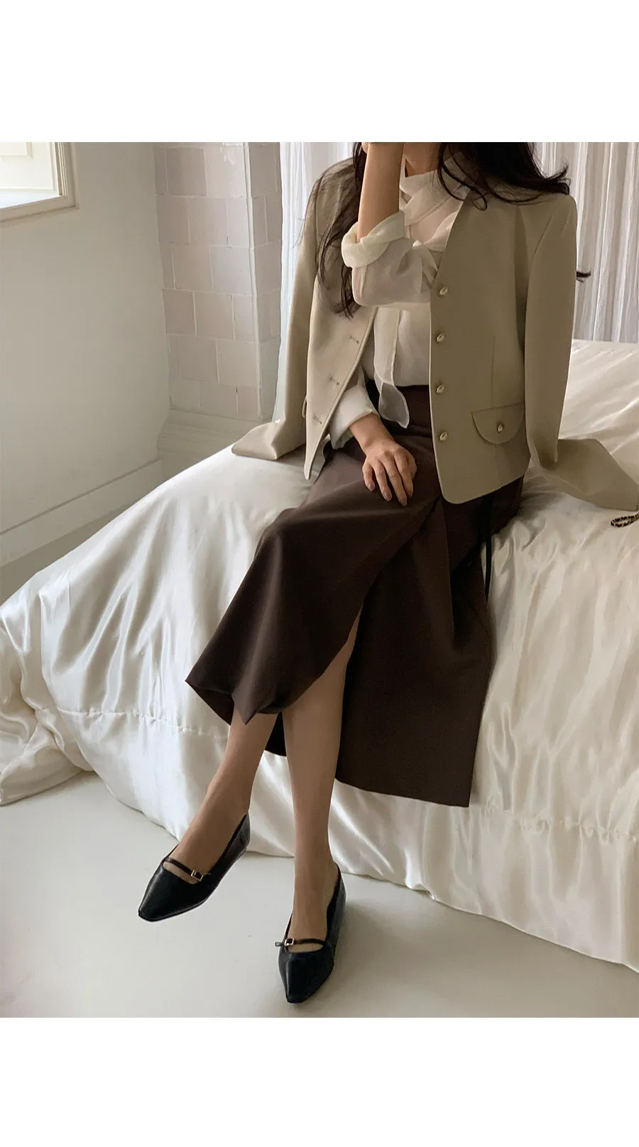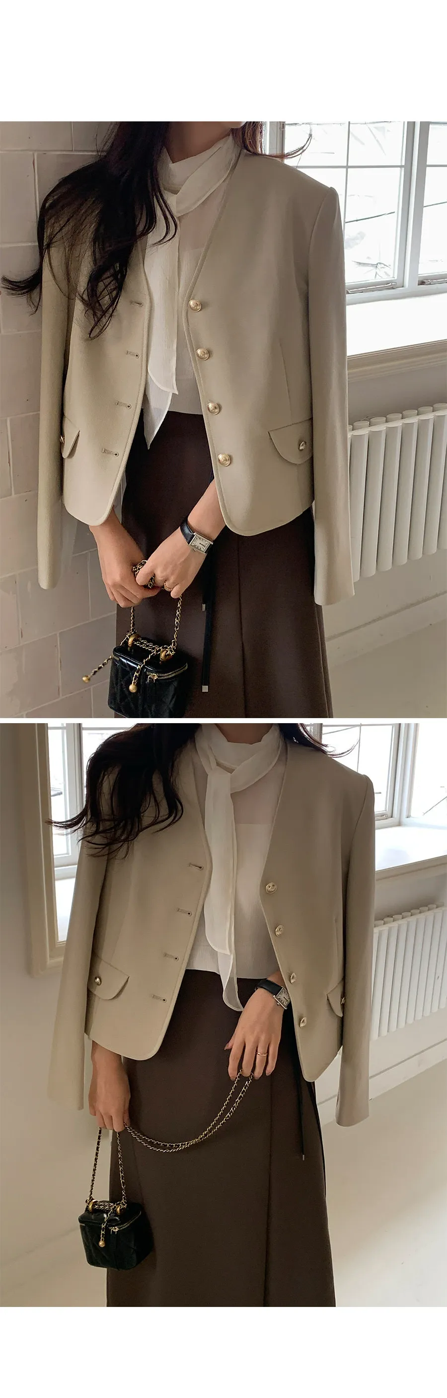 奢華氛圍斜紋紋理經典剪裁金釦外套