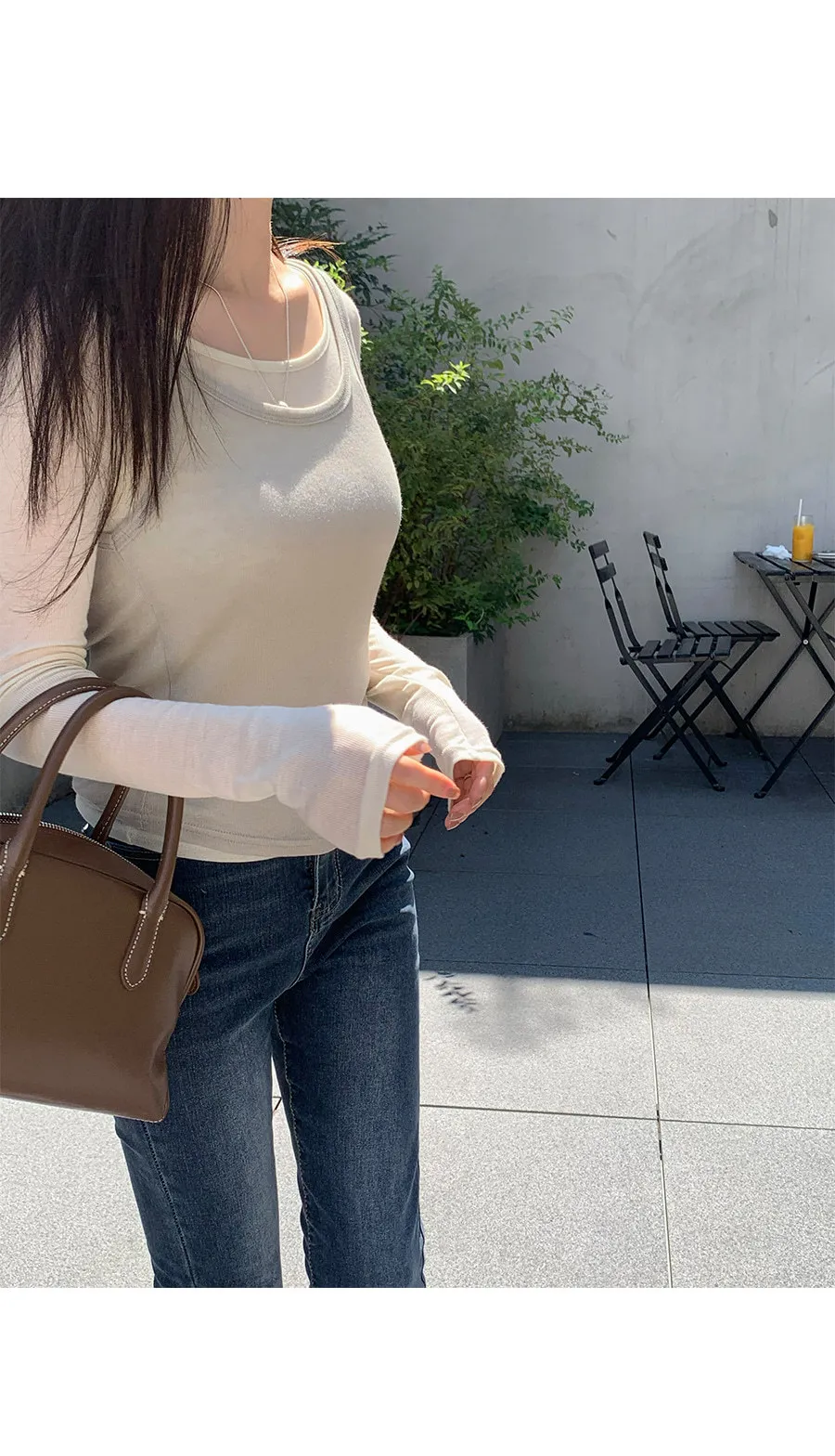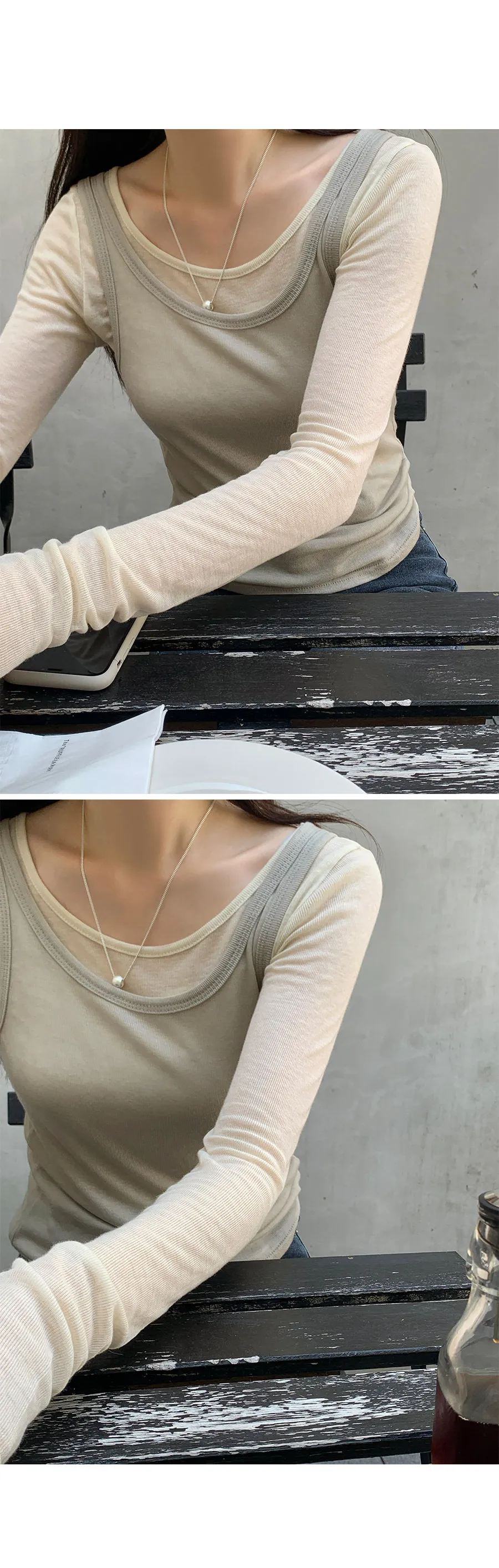 U領露出鎖骨線條,修身版型擁抱身體!時尚背心+上衣套裝♡