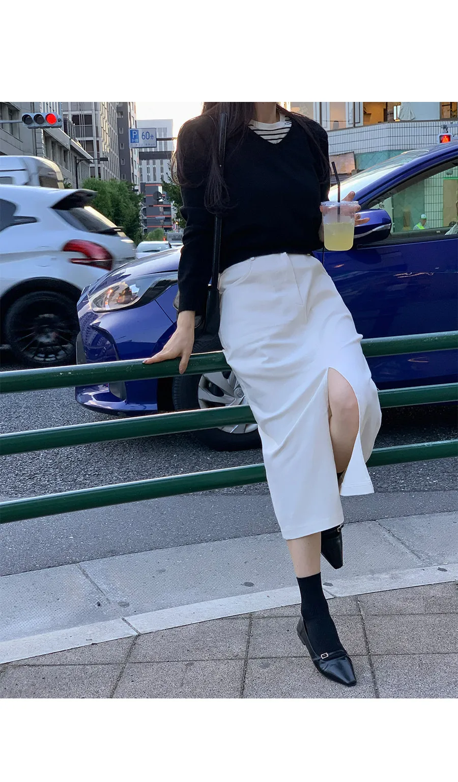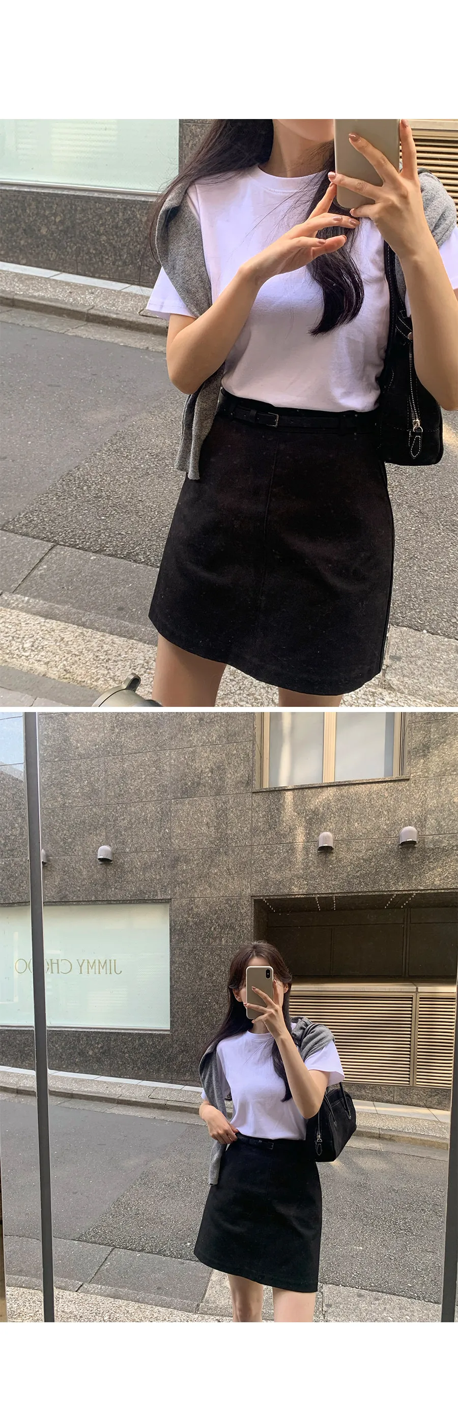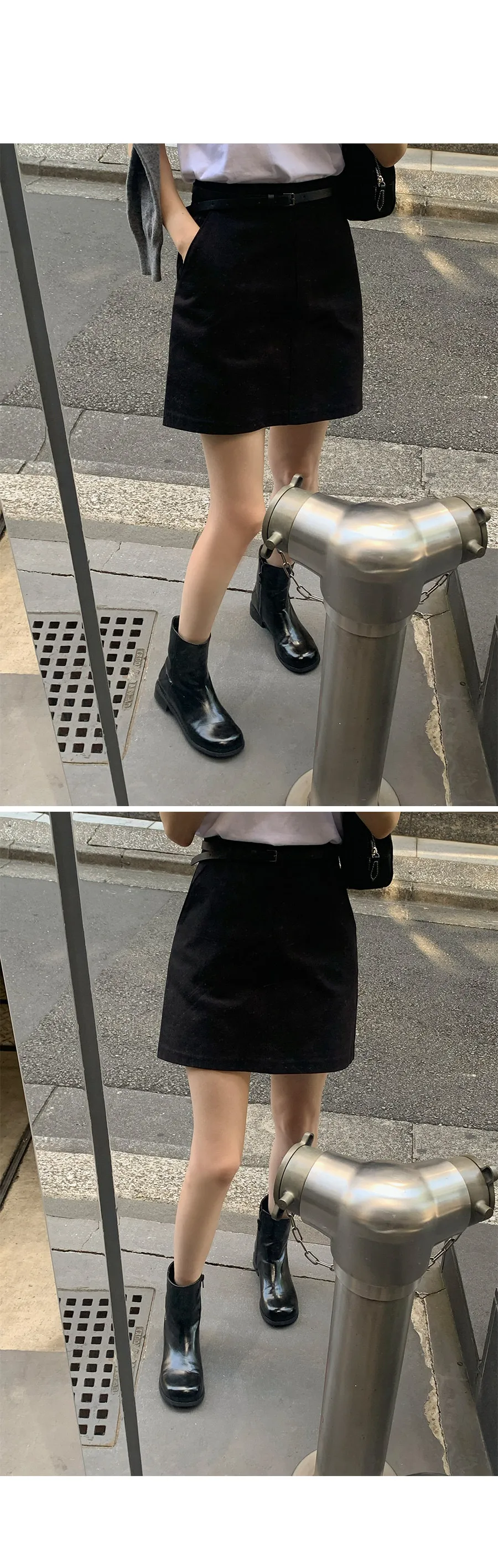 舒適H剪裁側斜口袋附腰帶短裙
