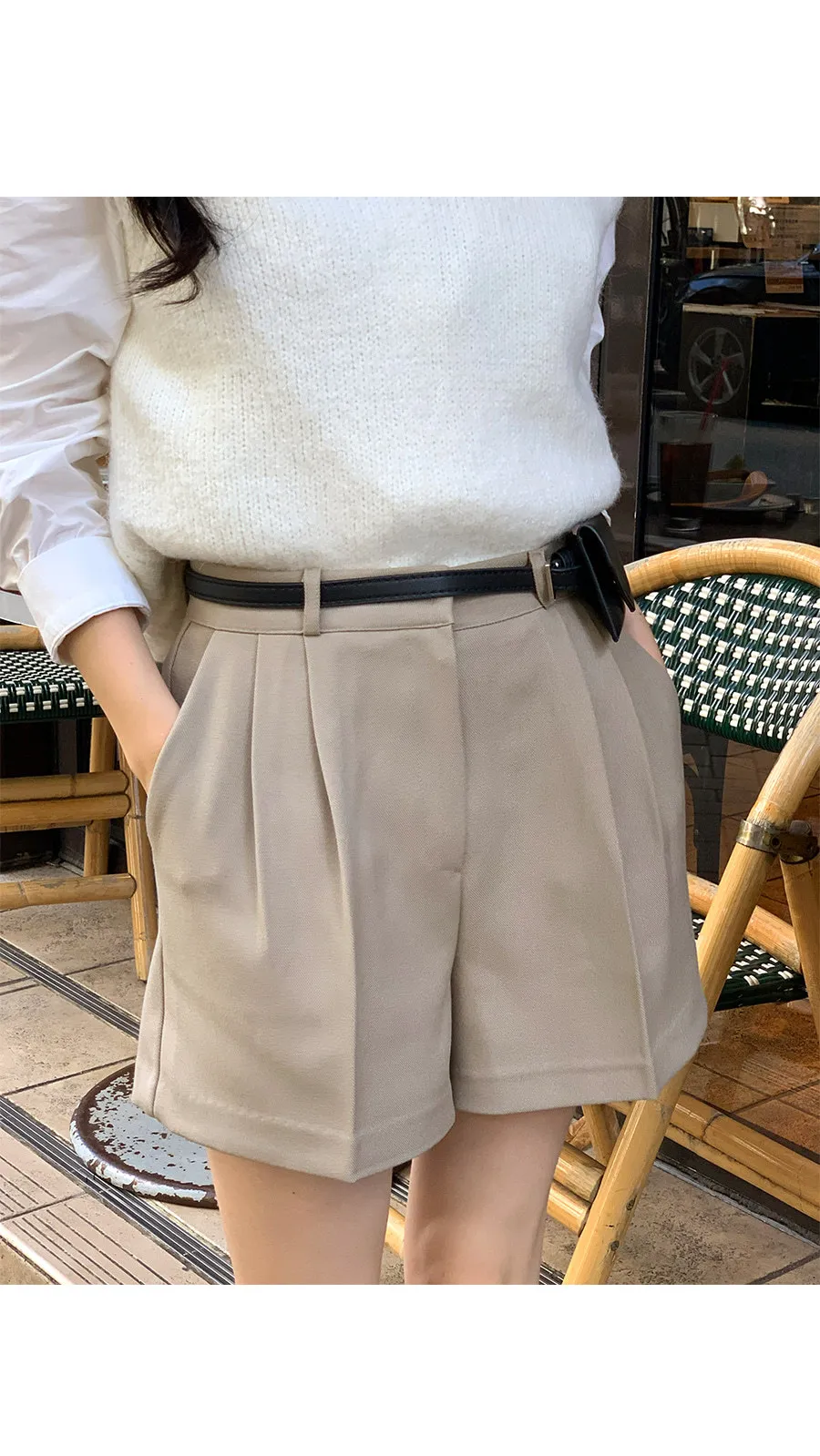 簡約氛圍A字版型修身針摺短褲