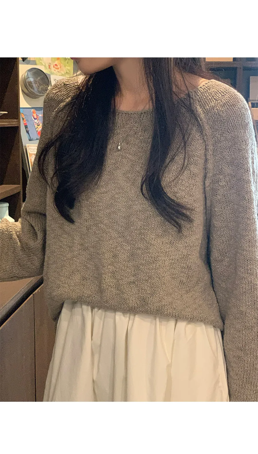 自然氛圍帆船領捲邊下擺針織上衣