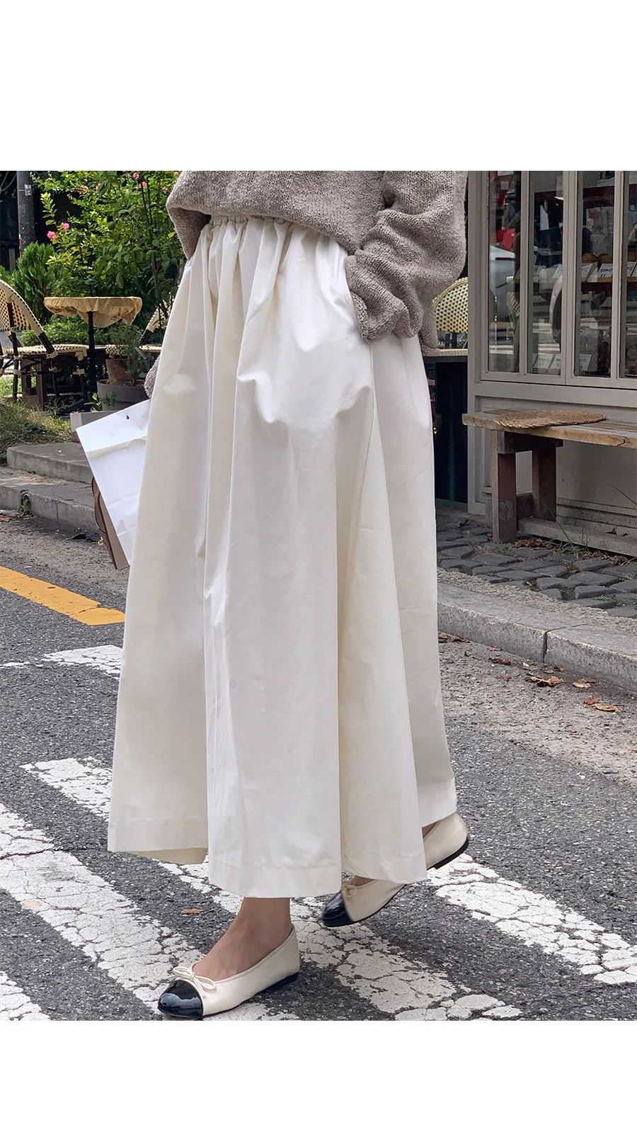 休閒腰部彈性A字傘擺中長裙