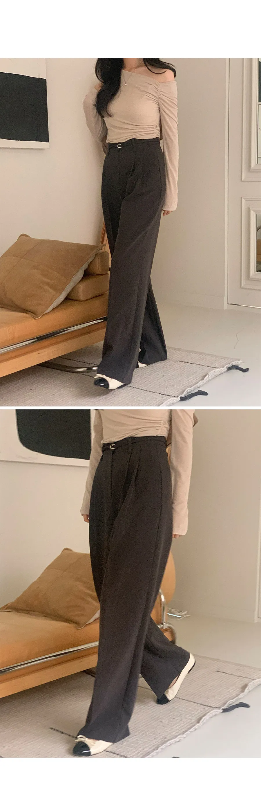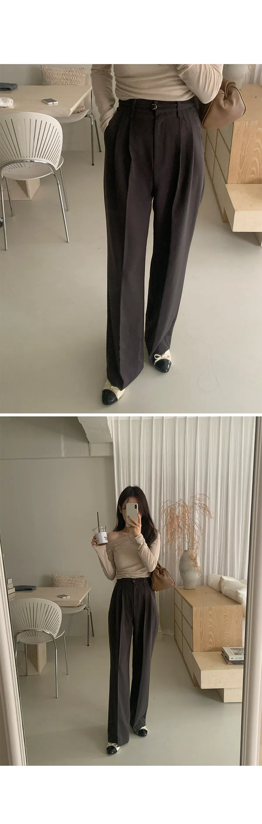 獨特雙腰帶孔附D形環扣腰帶針摺休閒褲