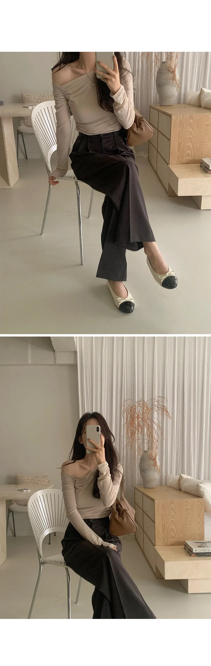 稍微露出一肩的單肩,強調女性魅力的T卹,用不平衡的對角線營造出時尚的氛圍♡