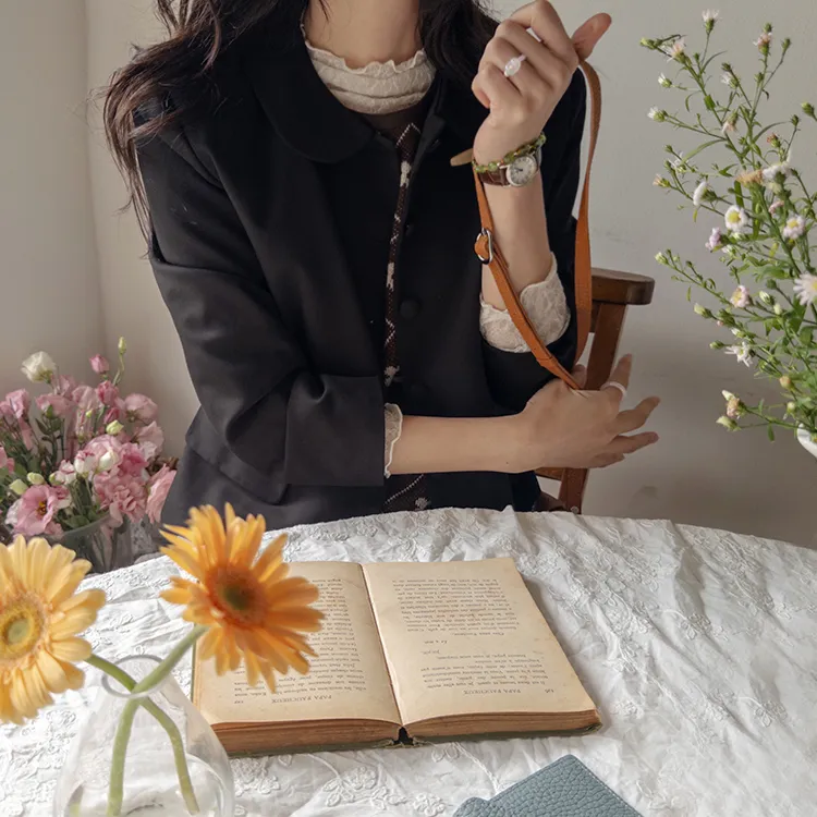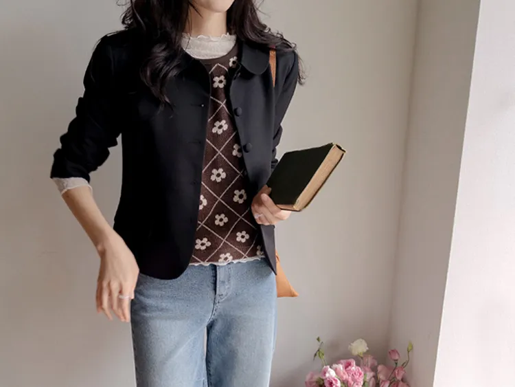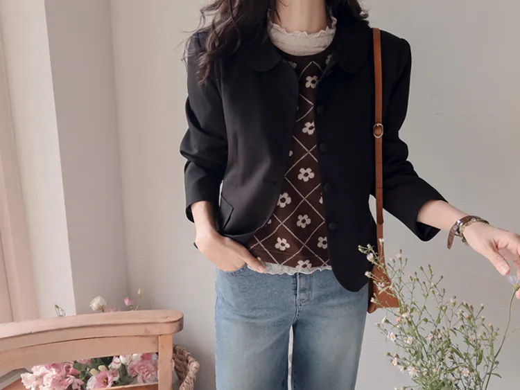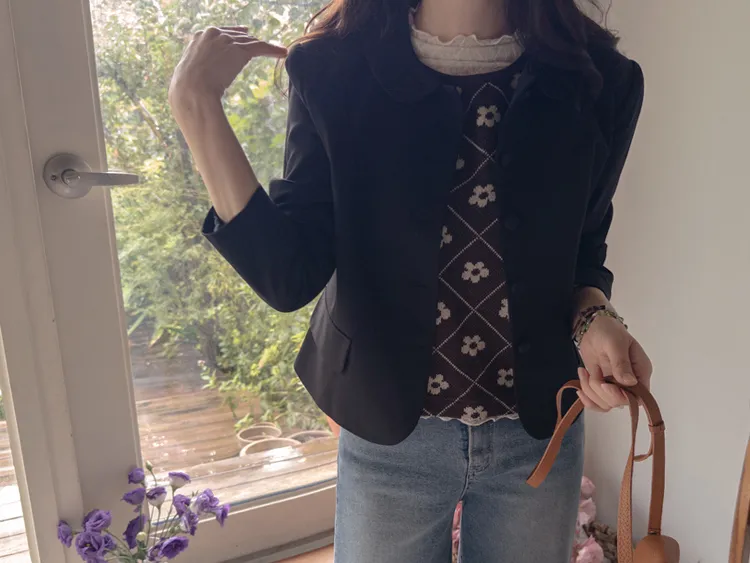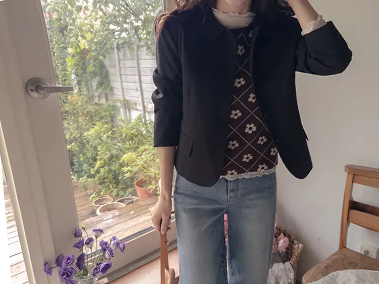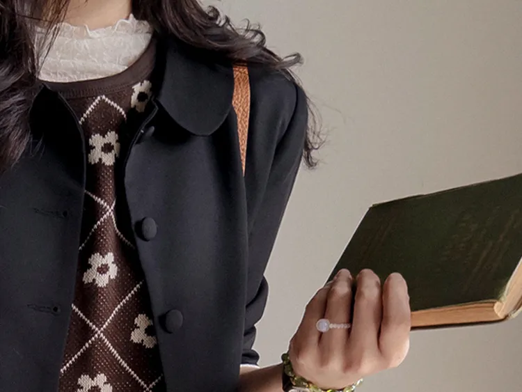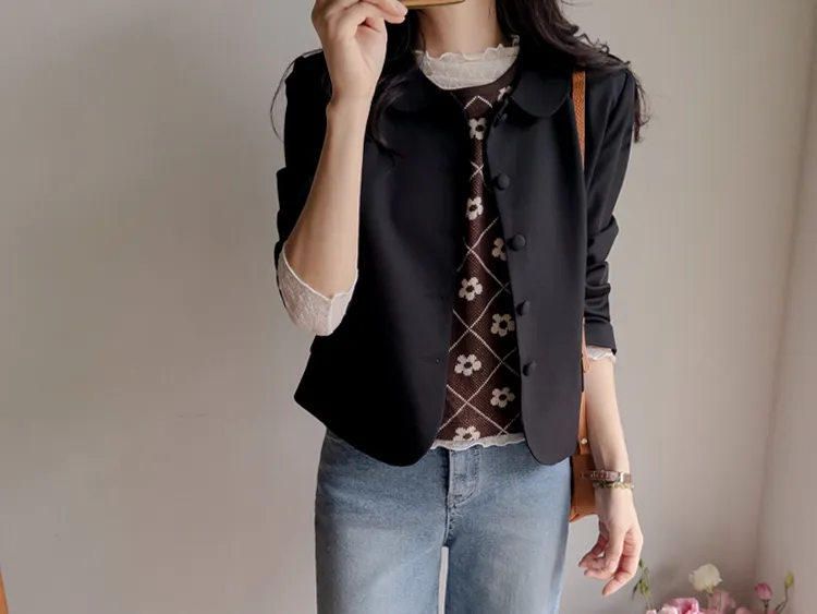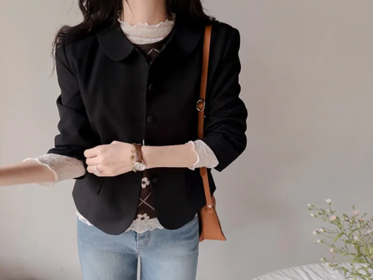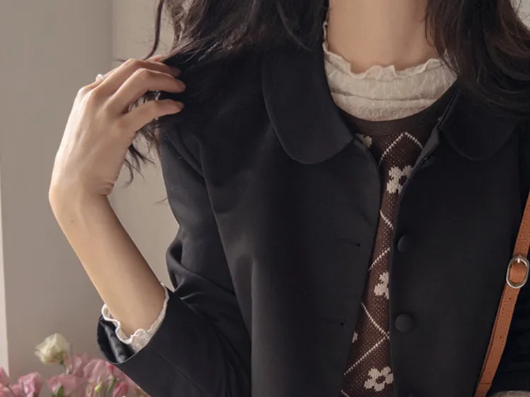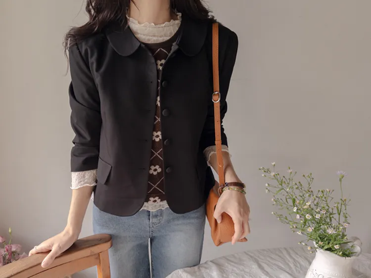 可愛好搭圓領立體包裹鈕扣排扣外套