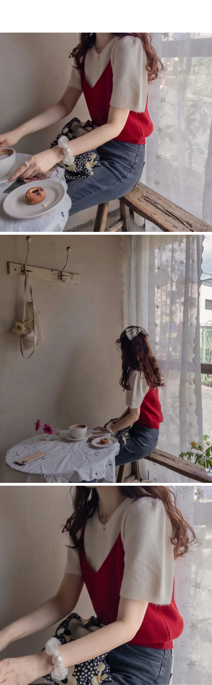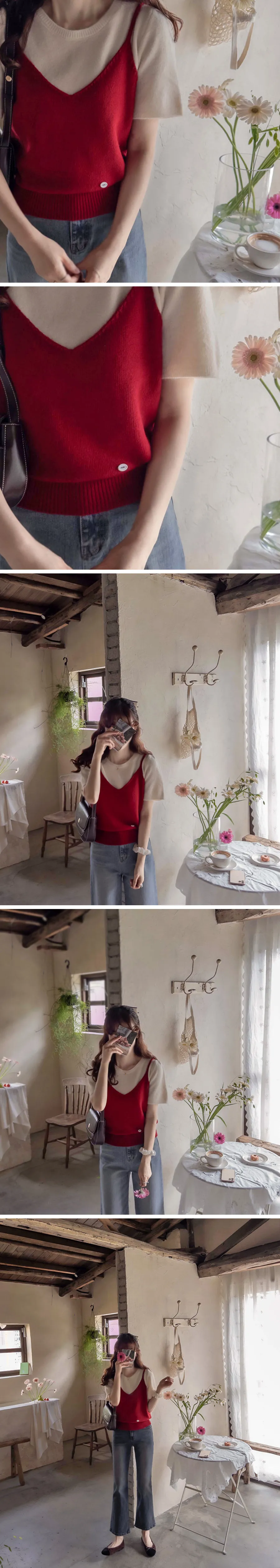 漂亮顏色疊穿點綴銀釦裝飾針織背心
