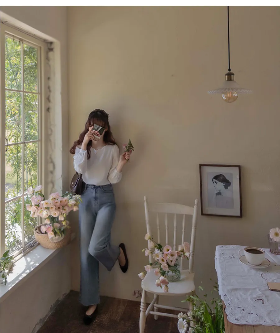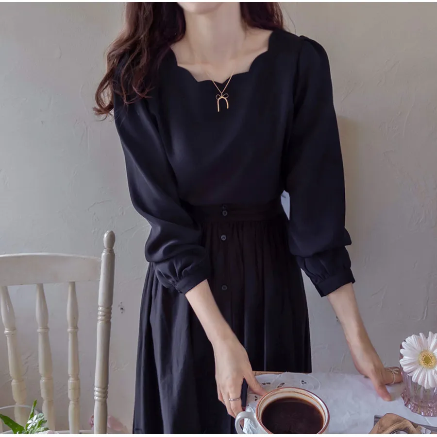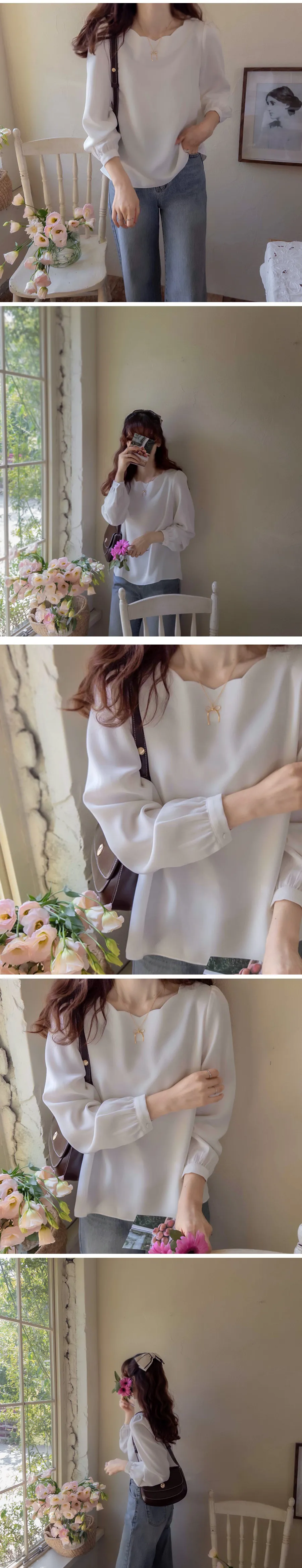 【明亮或精緻的顏色】【領口由波浪組成,營造出可愛的心情】【肩部剪裁也很漂亮】【可以在下一季優雅地穿著】【袖子鈕扣也很漂亮