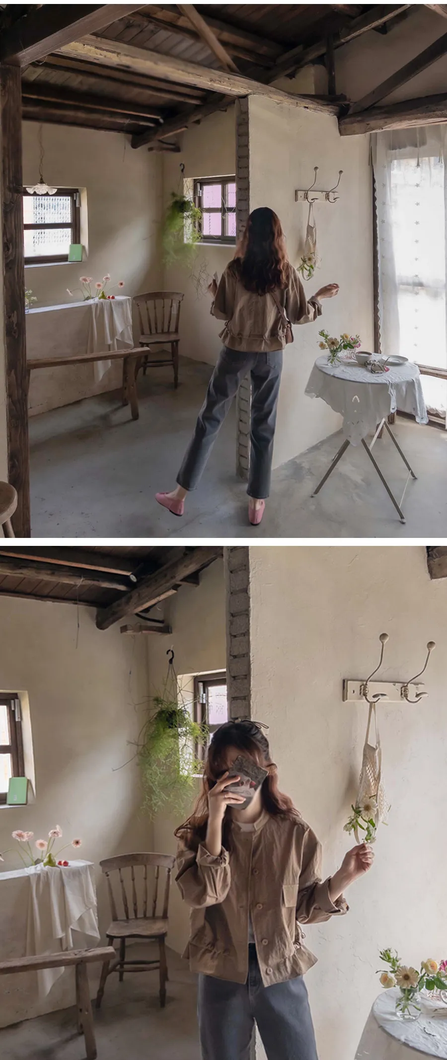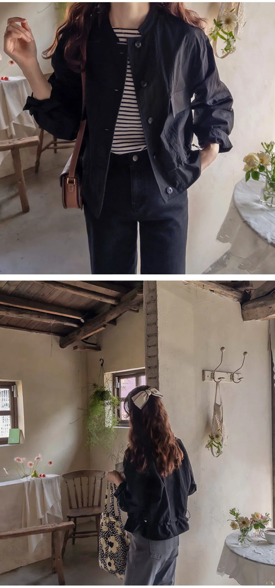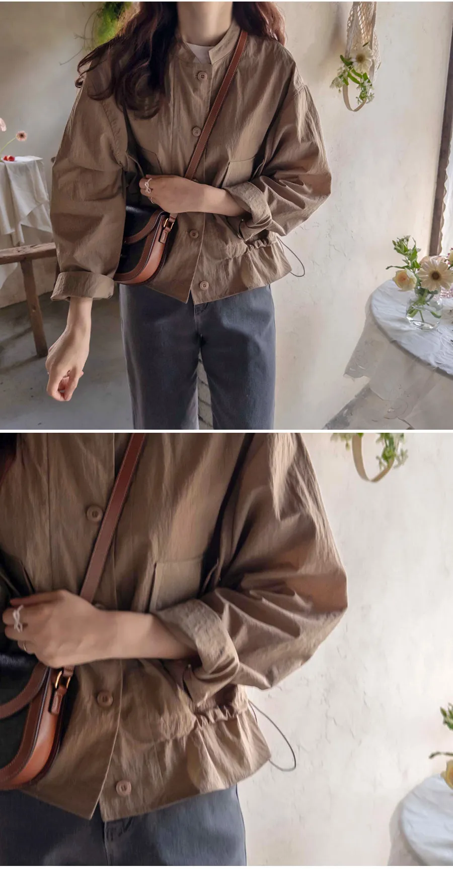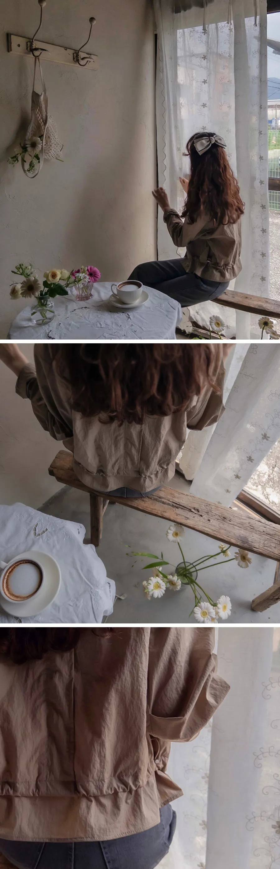 [底帶可調節:形成可愛的線條] [適合季節穿著,發出令人愉悅的沙沙聲] [時尚合身,營造精緻而可愛的心情,是季節必備單品夾克]