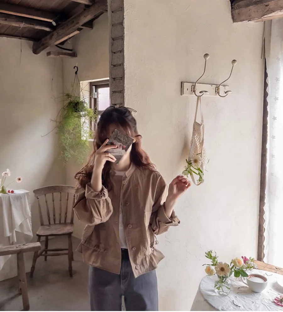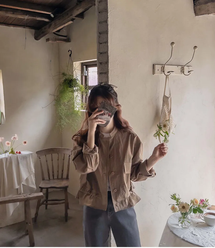 可愛休閒抽繩收腰簡單領口外套