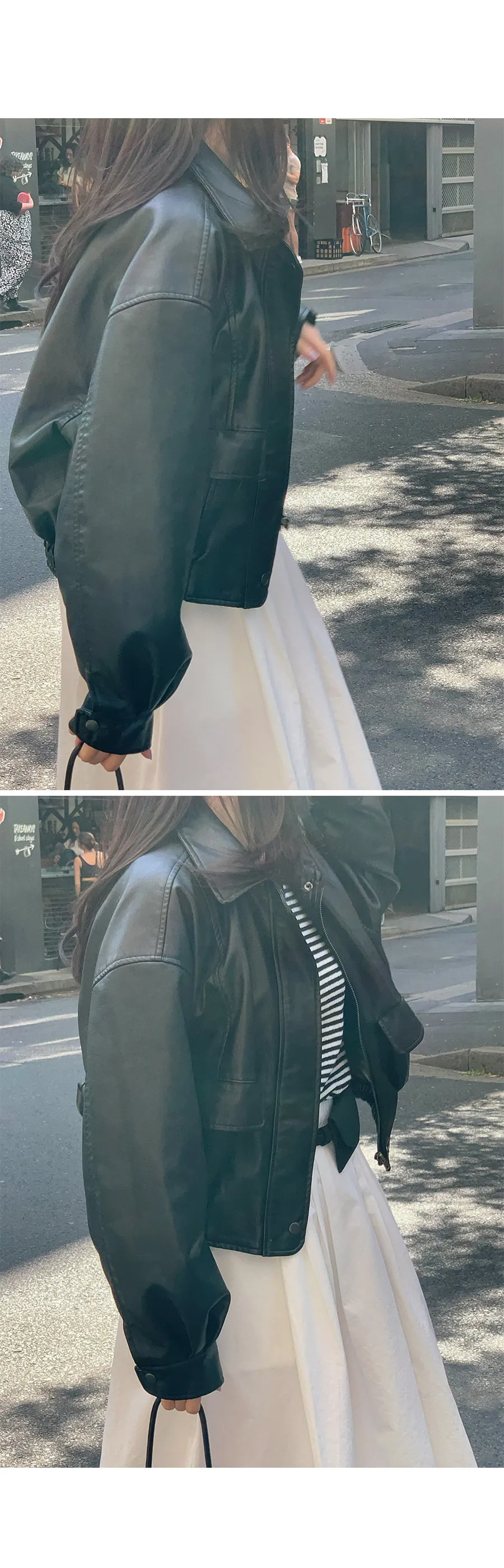 夾克的質感如同溫柔的裂紋,充滿時尚氣息,輕便的帶蓋口袋增添了可愛的感覺♡