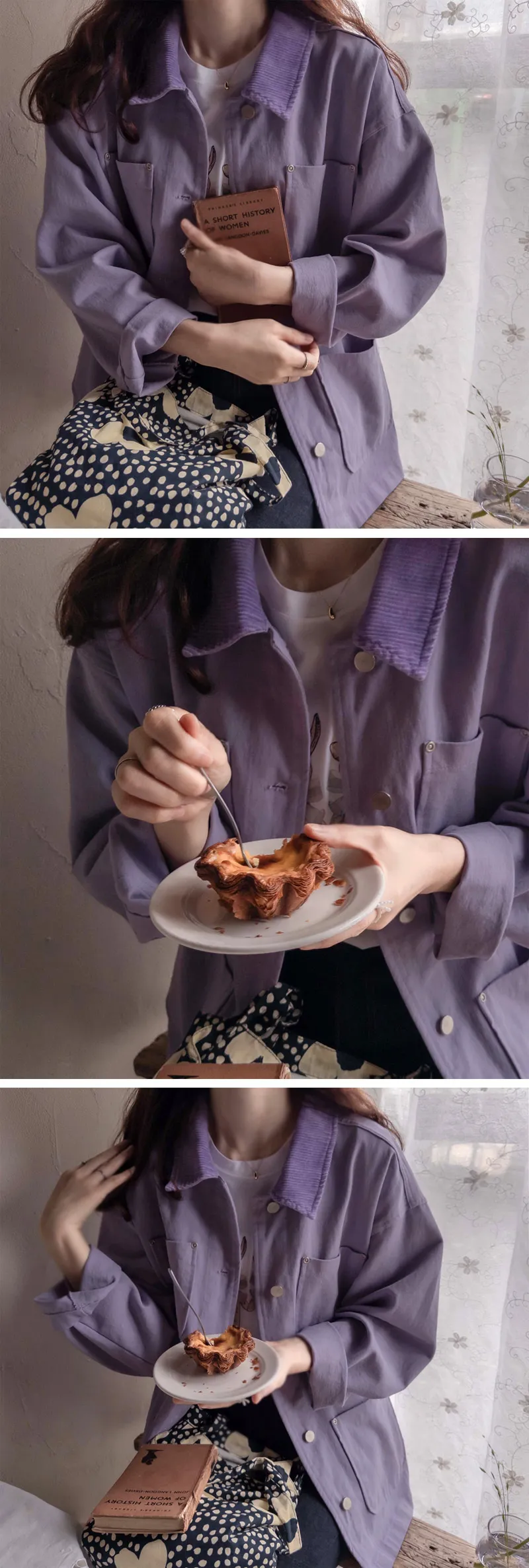 [易於穿著的生物水洗基本款夾克] [適合新季節日常穿著的柔和色彩夾克] [領口採用燈芯絨面料] [推薦作為一款賦予時尚感的夾克]