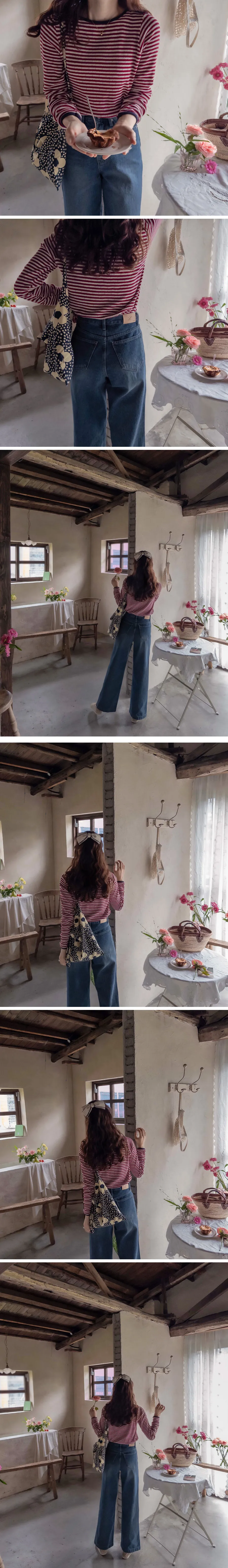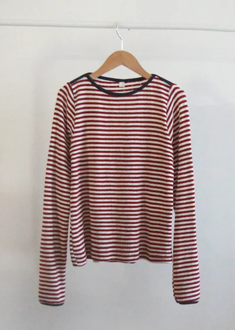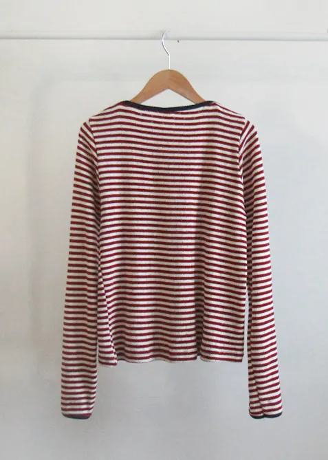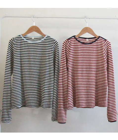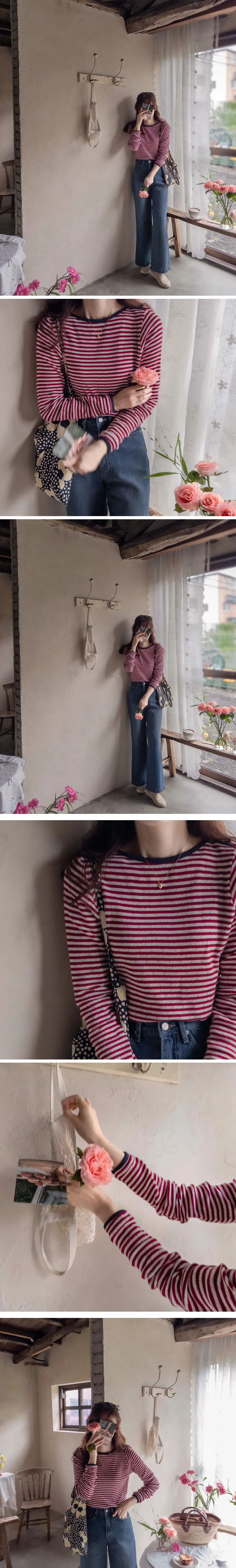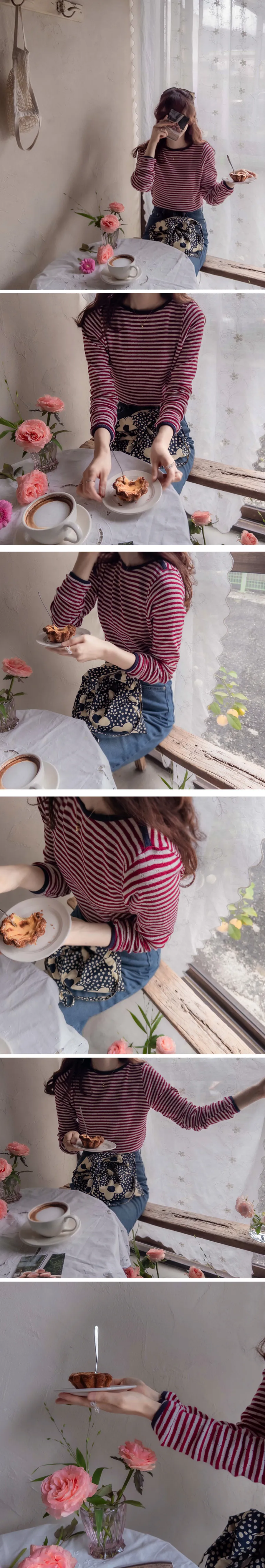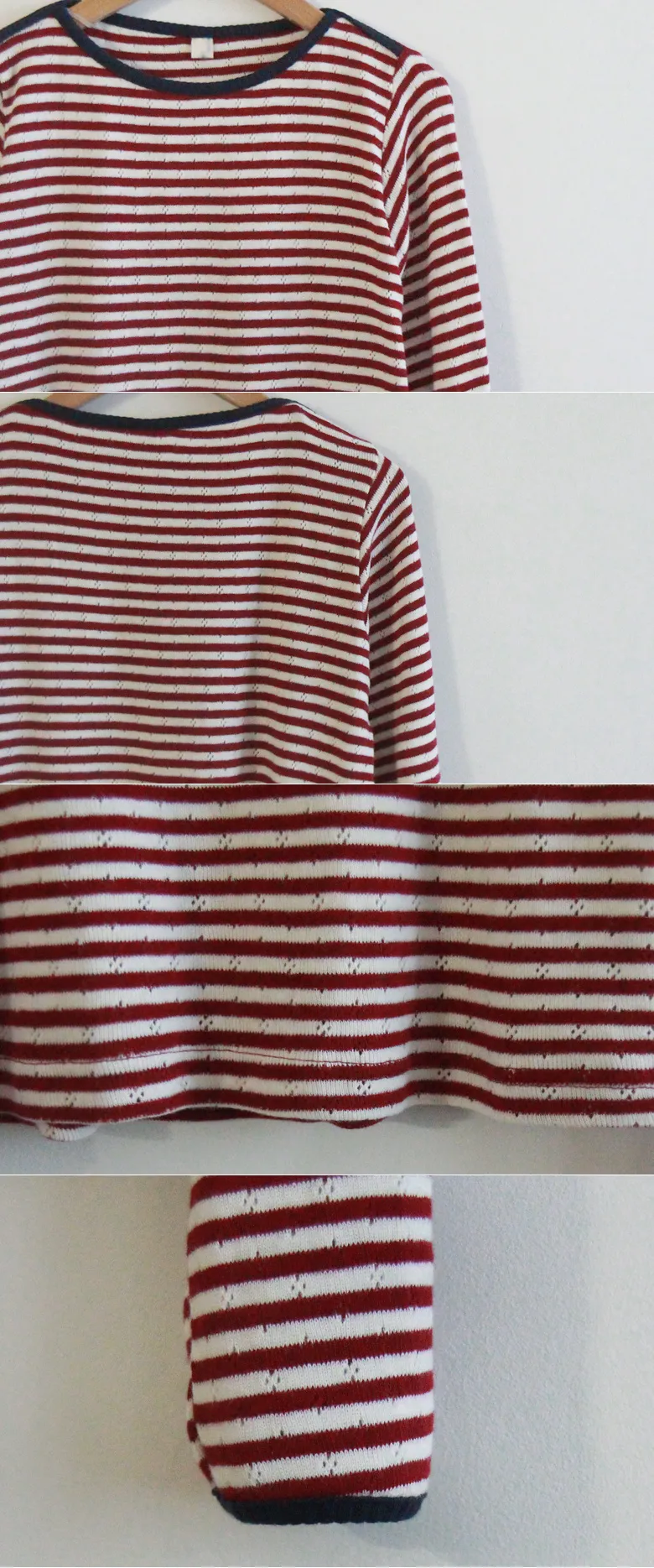 可愛彈性迷你鏤空孔洞配色邊條紋上衣
