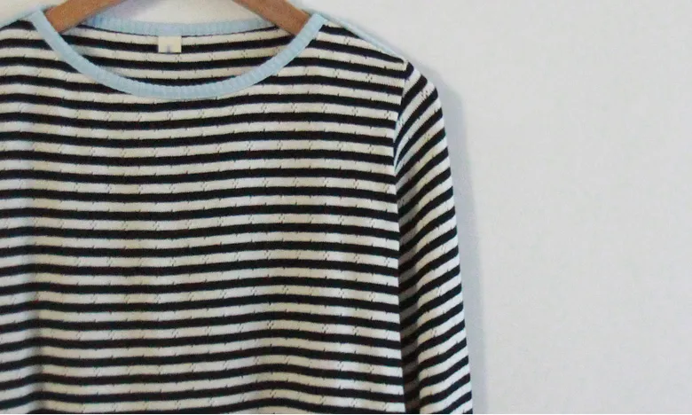 [彈性舒適的布料] [帶有微妙迷你鏤空孔洞的上衣] [時尚合身的輕款單品,非常適合日常穿著] [季節色彩] [頸部和袖子末端的顏色組合] [具有舒適彈性]