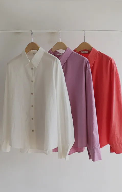 [襯衫是基本單品,可以搭配任何服裝♥] [穿著舒適,即使裸露皮膚也不會感覺有負擔~! ] [由100%純棉製成,適合長時間穿著] [基本色和重點色都好穿搭]。