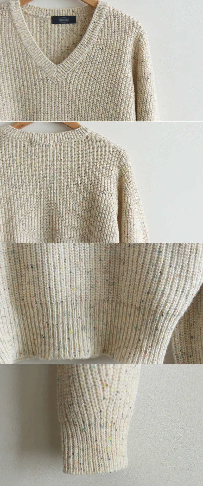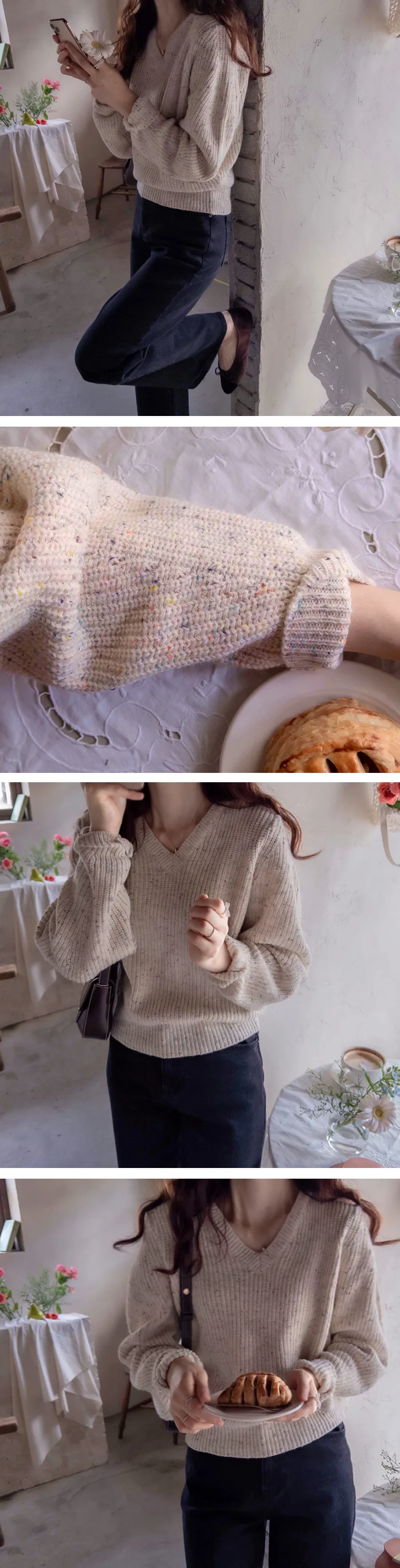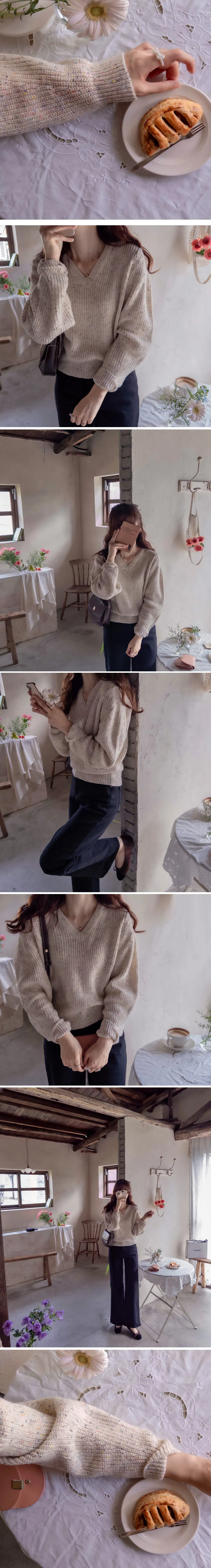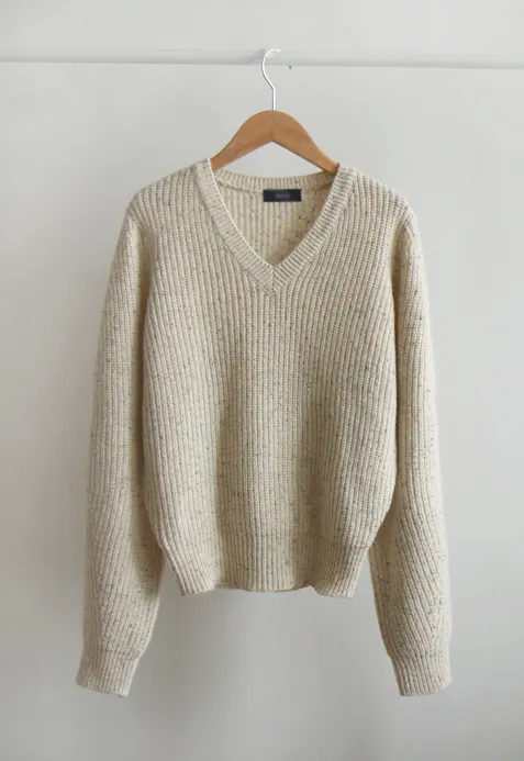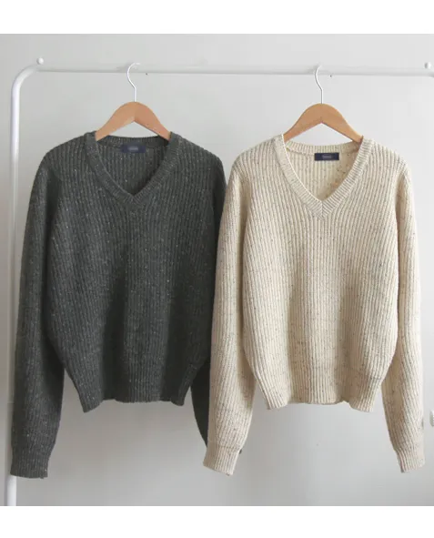[含有20%羊毛的材質][像微妙的波卡西針織物一樣,非常適合穿搭風格][觸感柔軟且厚度適當的針織][精緻的V領非常漂亮][時尚合身針織] [柔和色調針織獨特推薦]