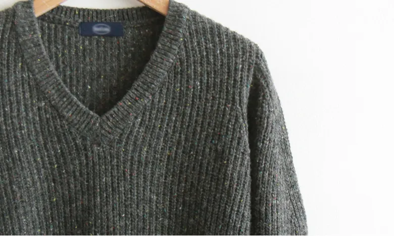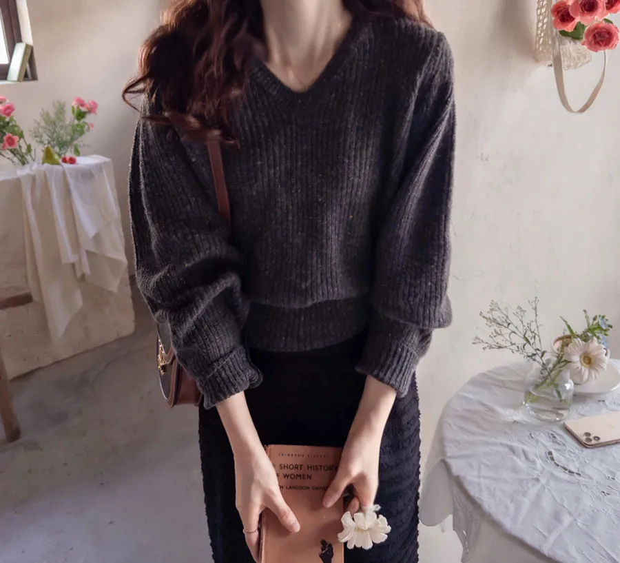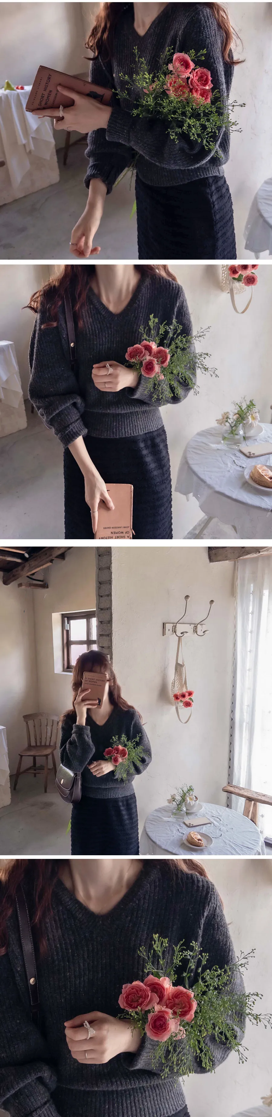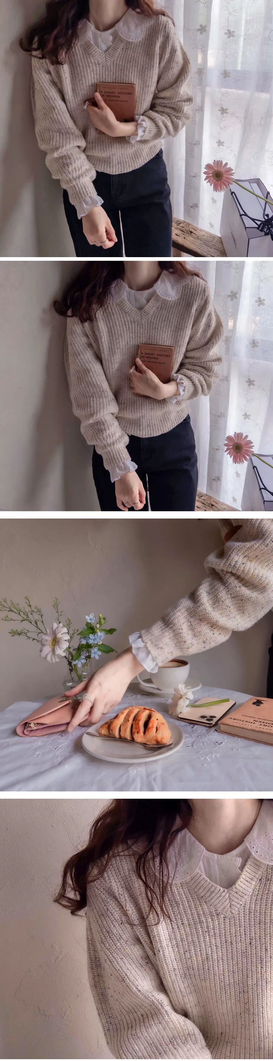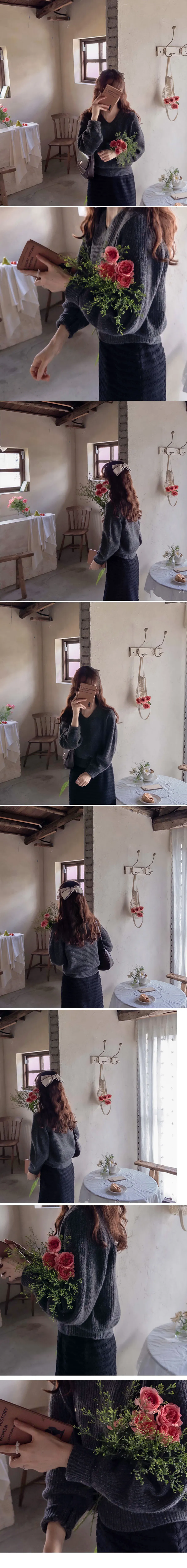 [含有20%羊毛的材質][像微妙的波卡西針織物一樣,非常適合穿搭風格][觸感柔軟且厚度適當的針織][精緻的V領非常漂亮][時尚合身針織] [柔和色調針織獨特推薦]