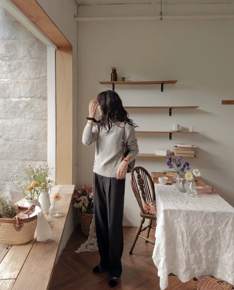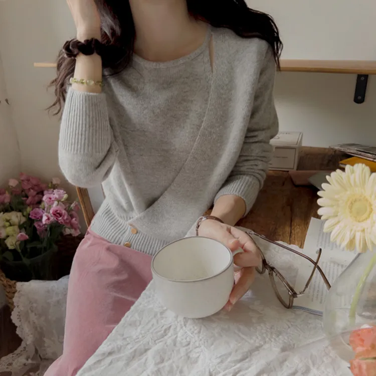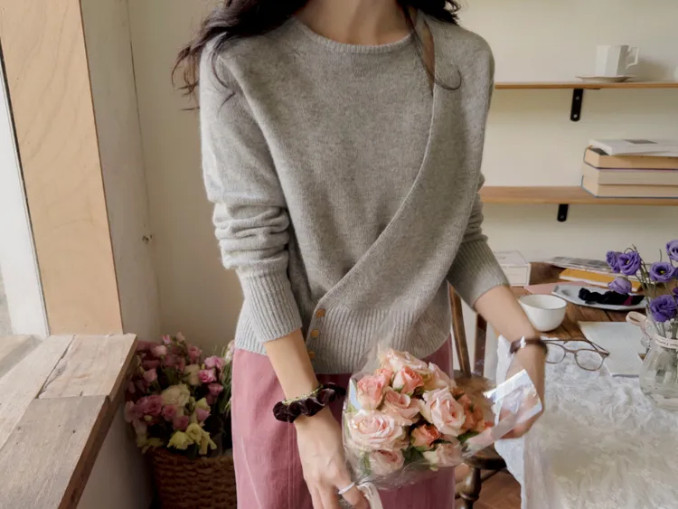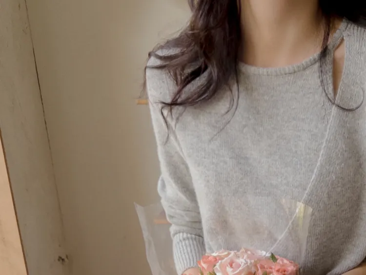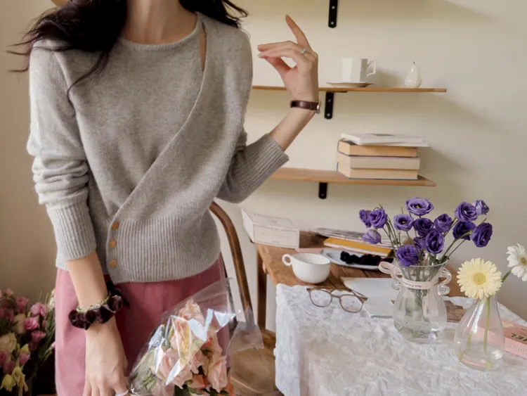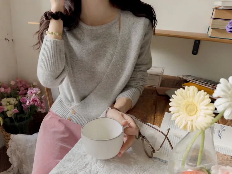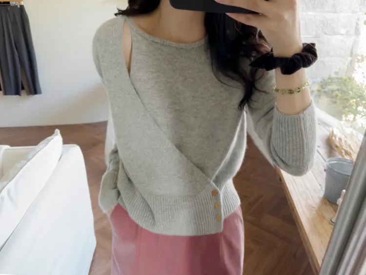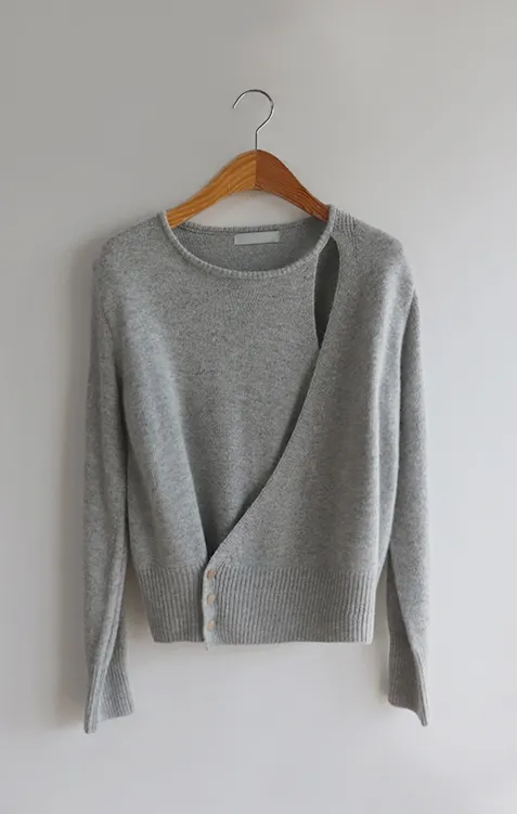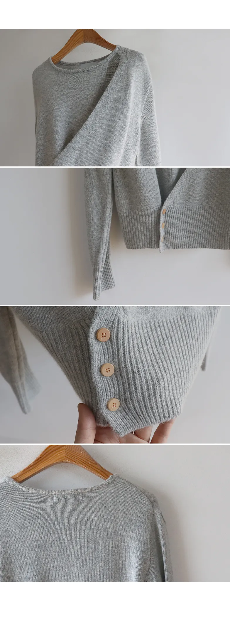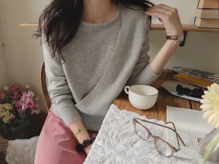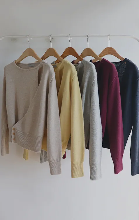 [柔軟的針織品,穿起來有一種獨特的心情♥] [羊毛和浣熊混紡的優質紗線,很舒服] [微妙的肩部開衩細節充滿女人味~] [針織物包裹式針織物