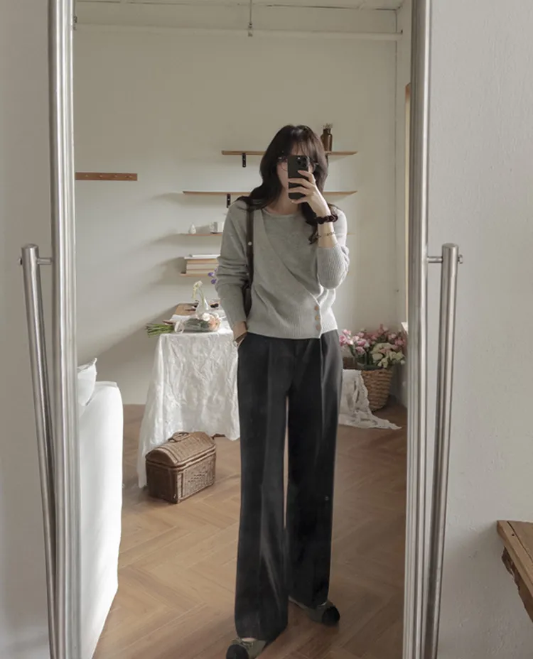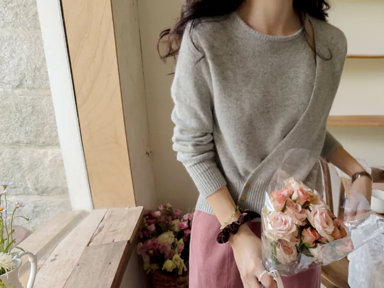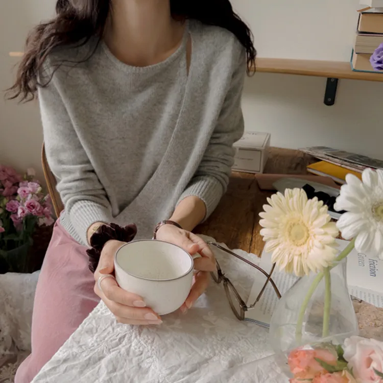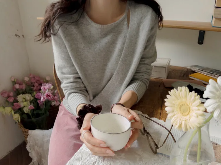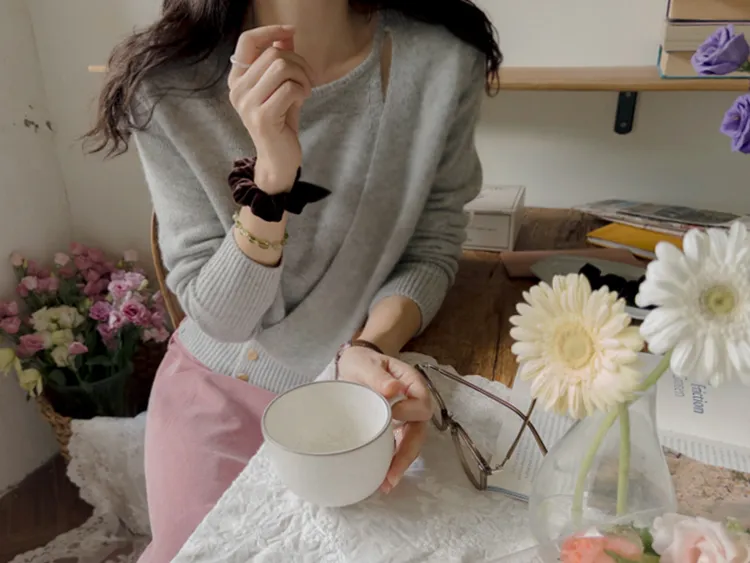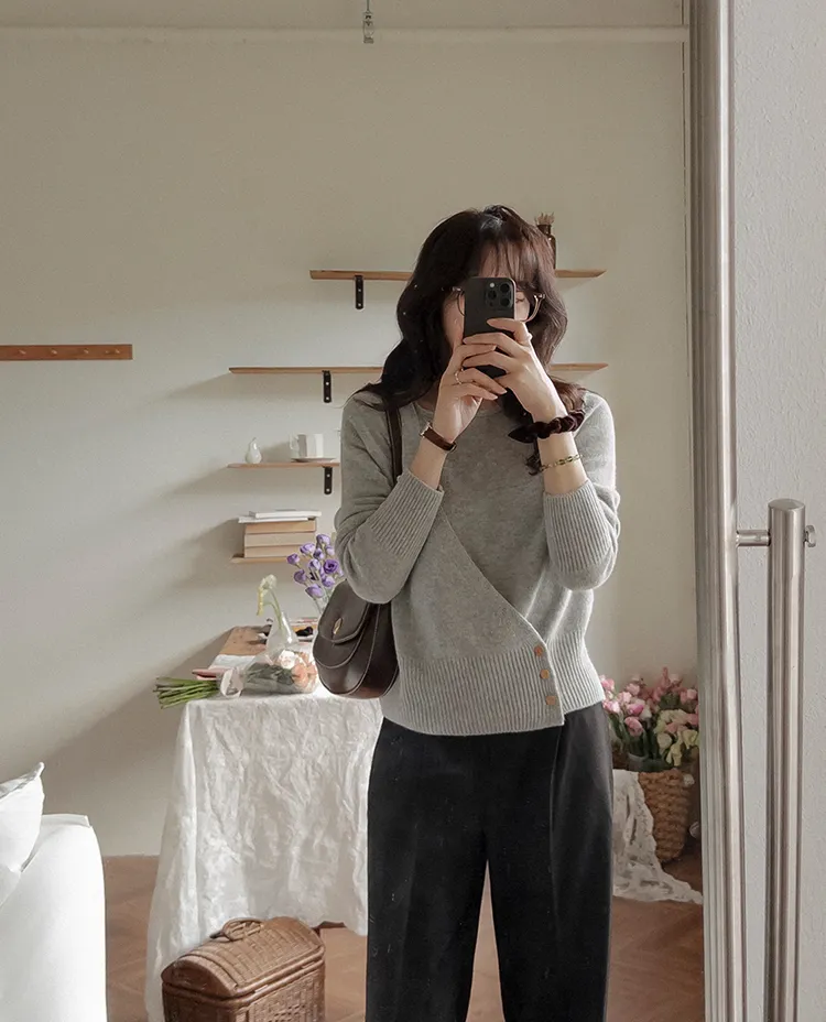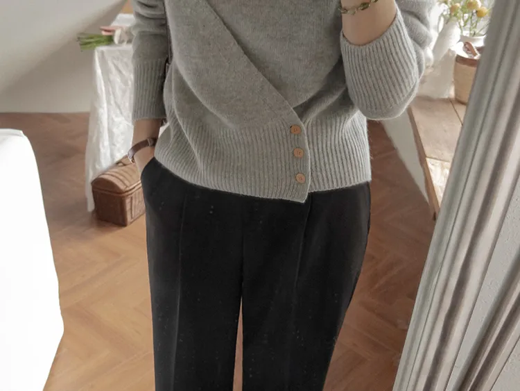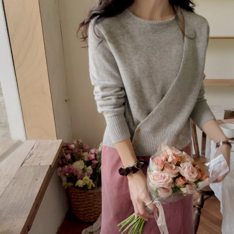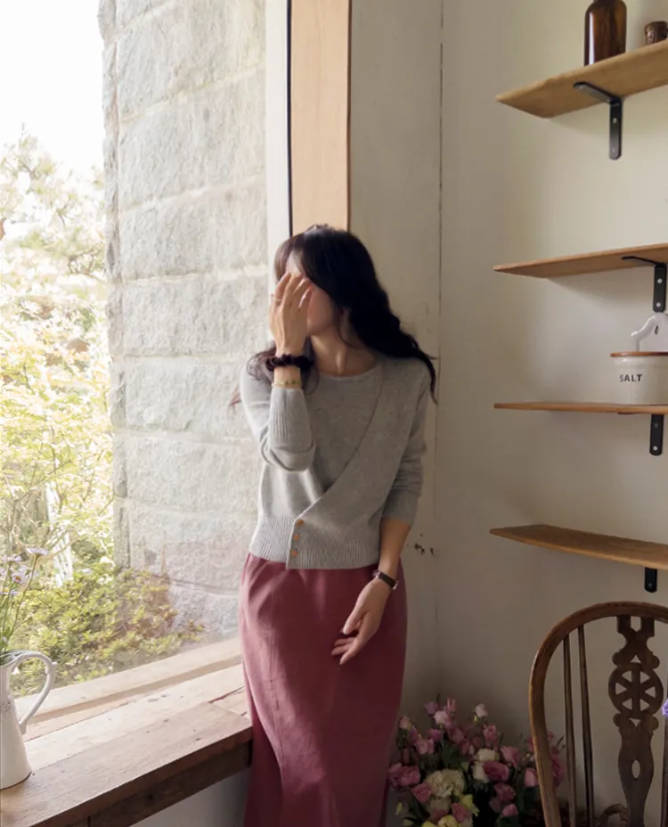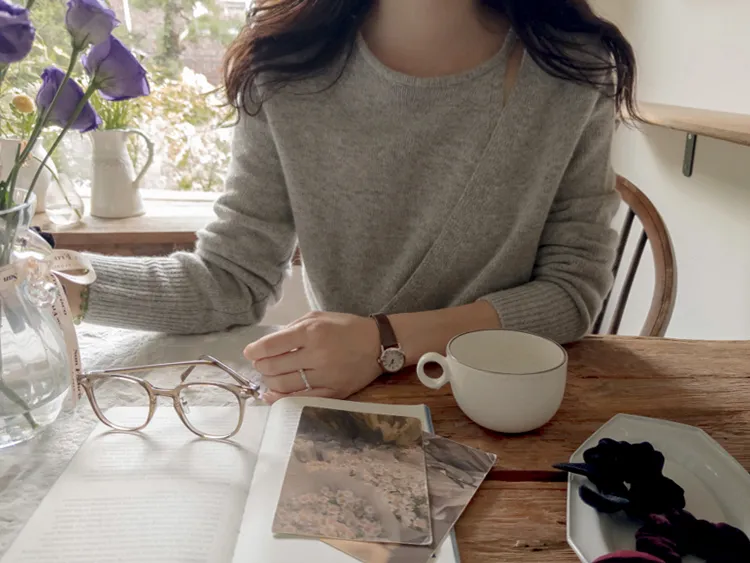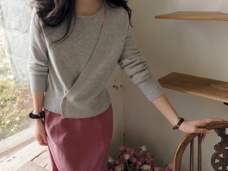 [柔軟的針織品,穿起來有一種獨特的心情♥] [羊毛和浣熊混紡的優質紗線,很舒服] [微妙的肩部開衩細節充滿女人味~] [針織物包裹式針織物