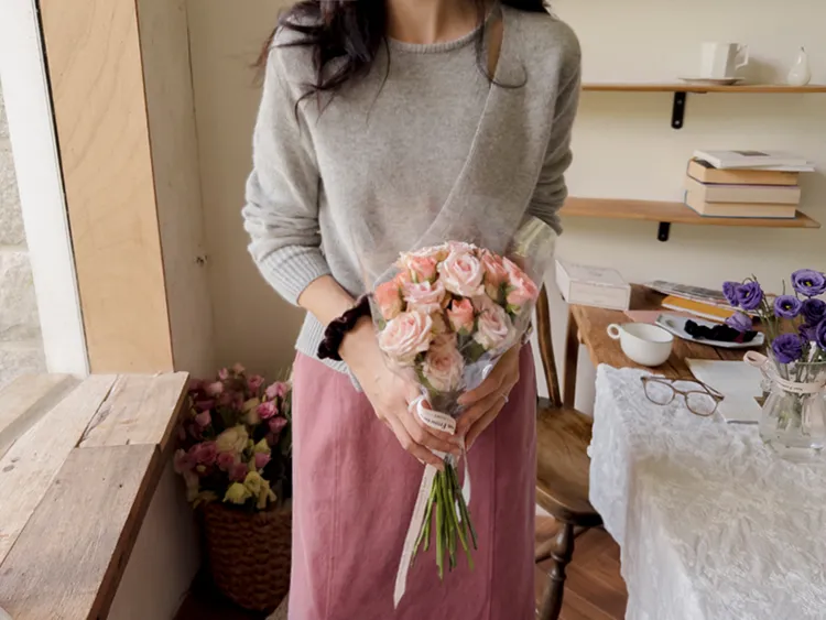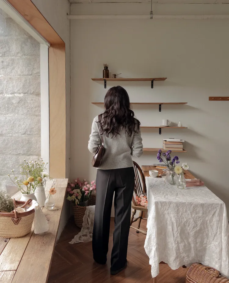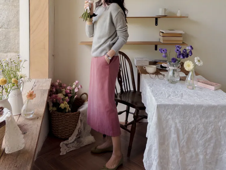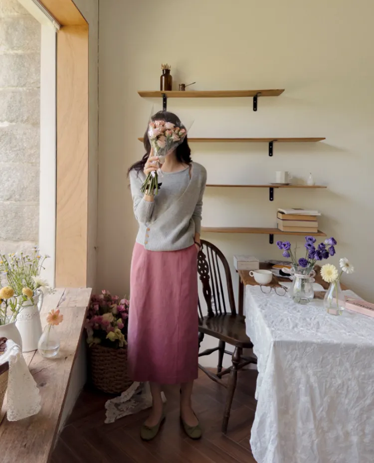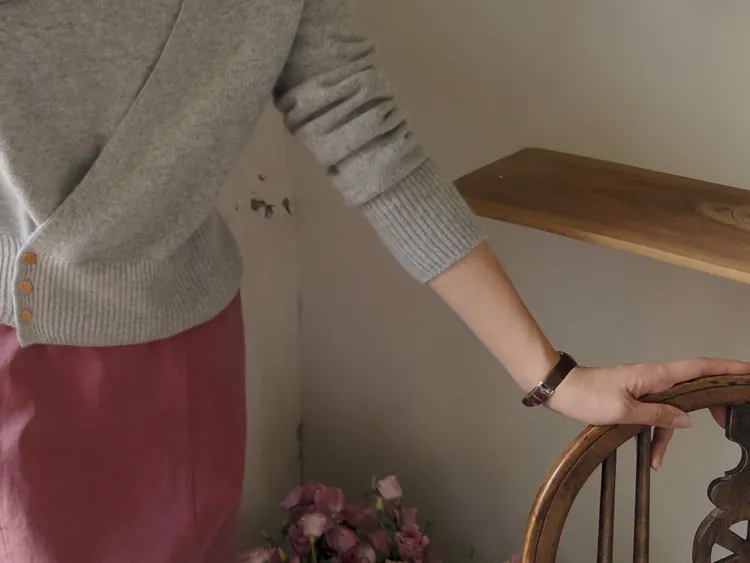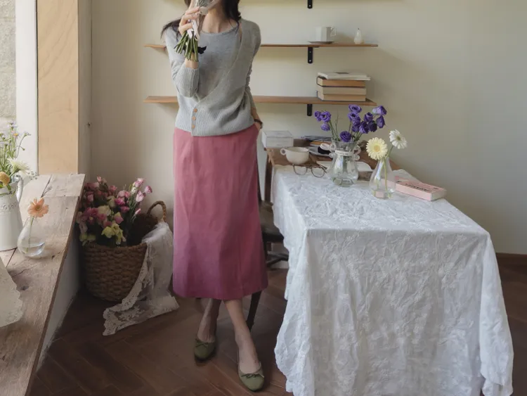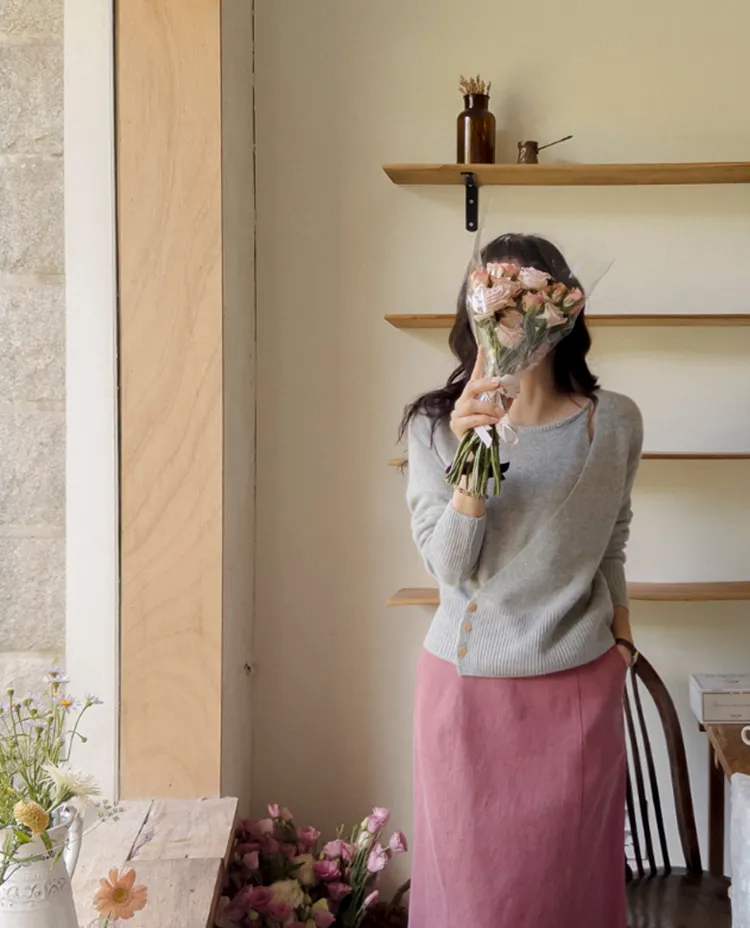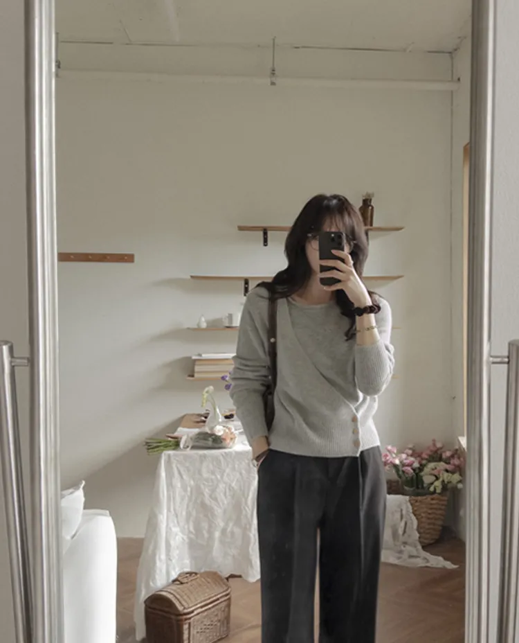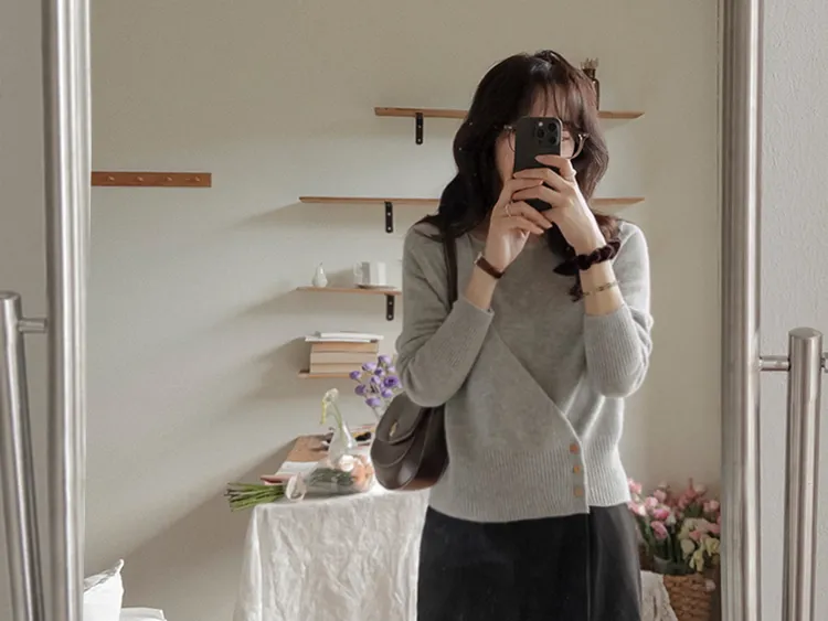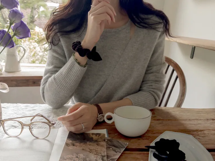 [柔軟的針織品,穿起來有一種獨特的心情♥] [羊毛和浣熊混紡的優質紗線,很舒服] [微妙的肩部開衩細節充滿女人味~] [針織物包裹式針織物