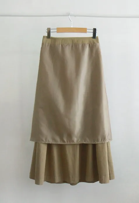 [聚酯襯裡] [腰部後帶處理] [後拉鍊結構] [舒適的後帶裙擺] [時令材質,穿著時尚] [針褶打造漂亮線條] [易於協調,邊緣合身]