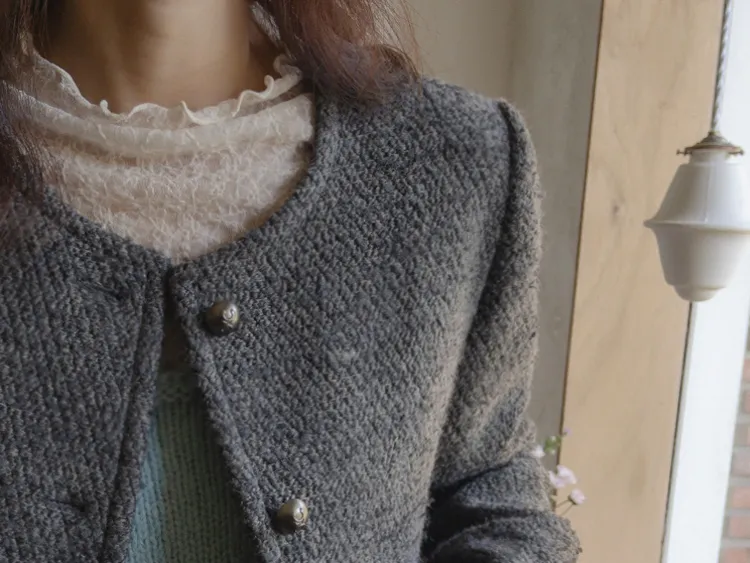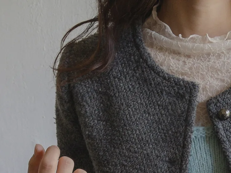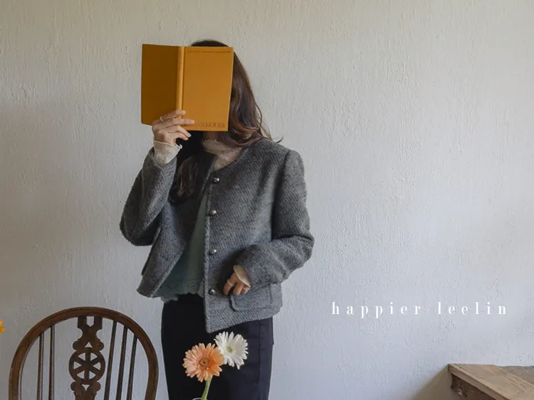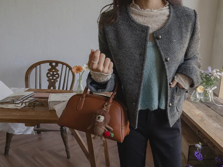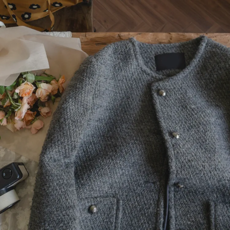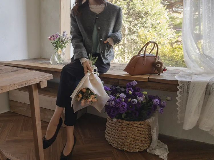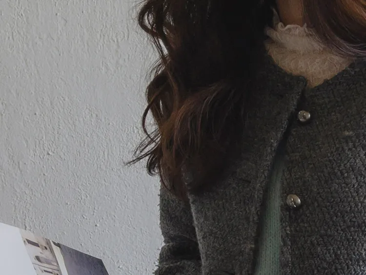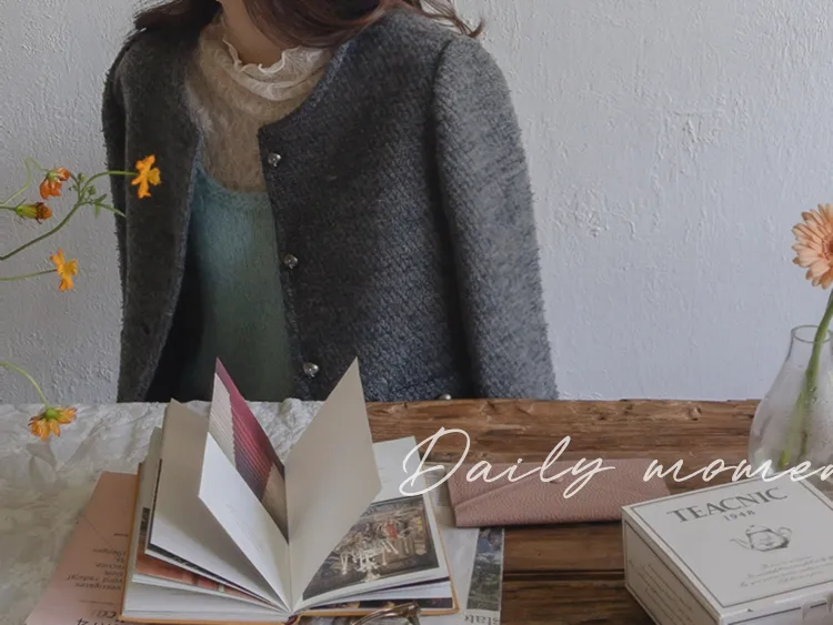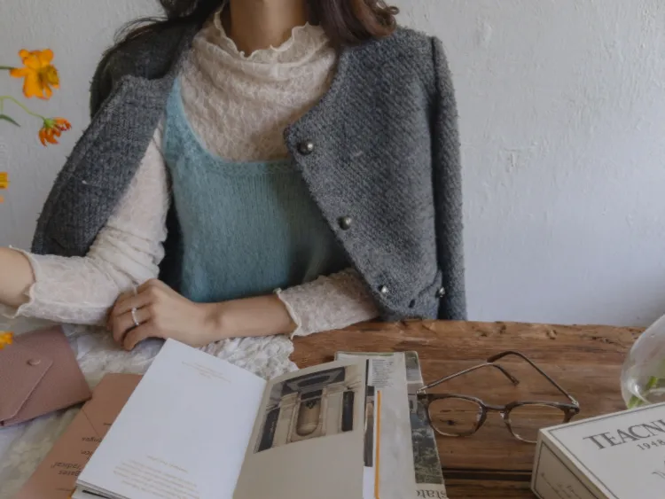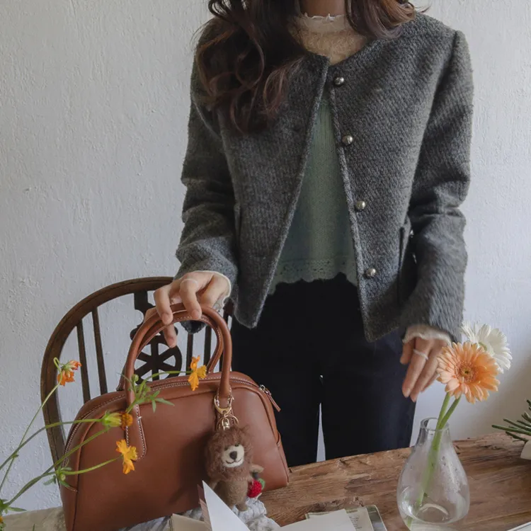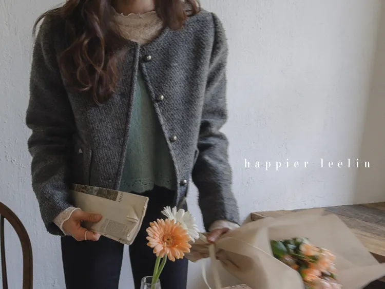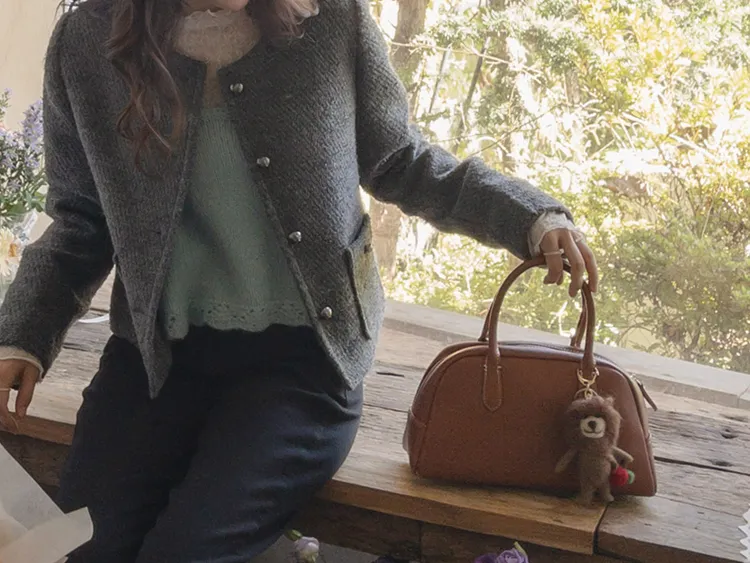 優雅經典魅力奢華霧面金釦花呢外套 深灰色穿搭照