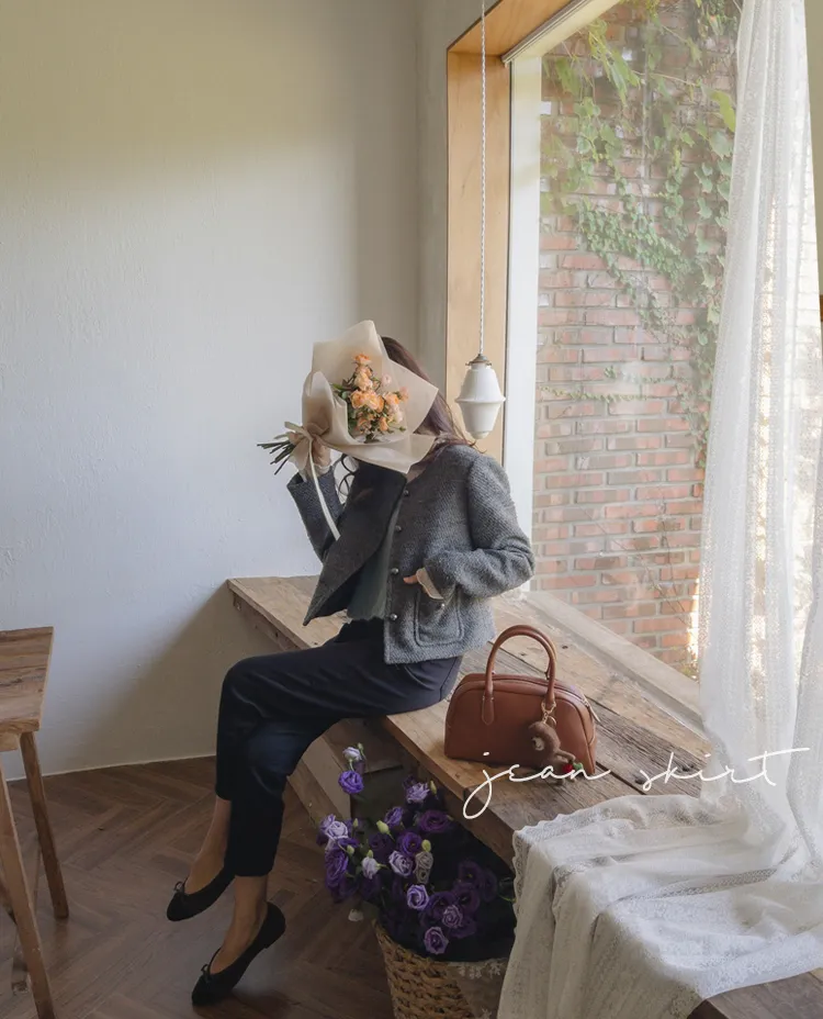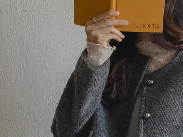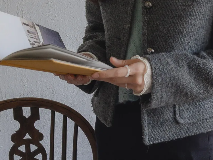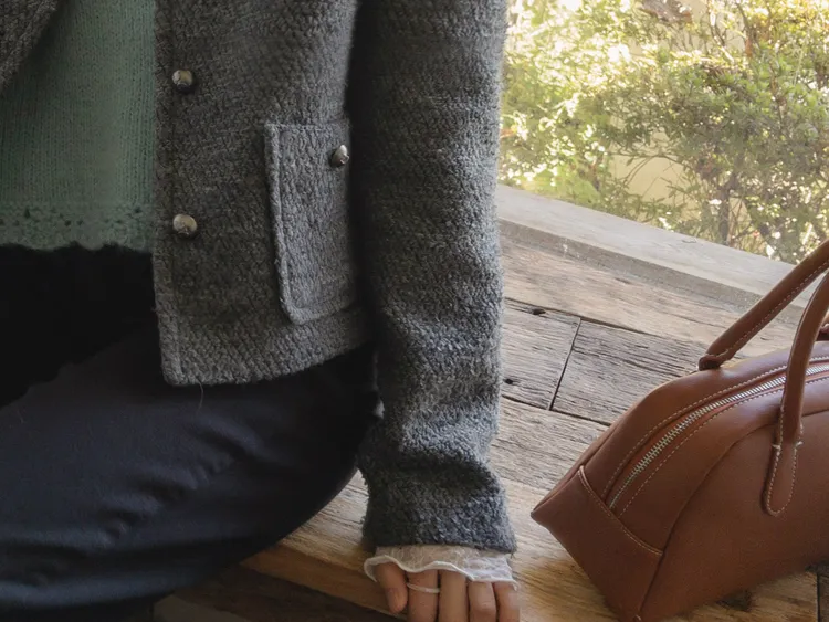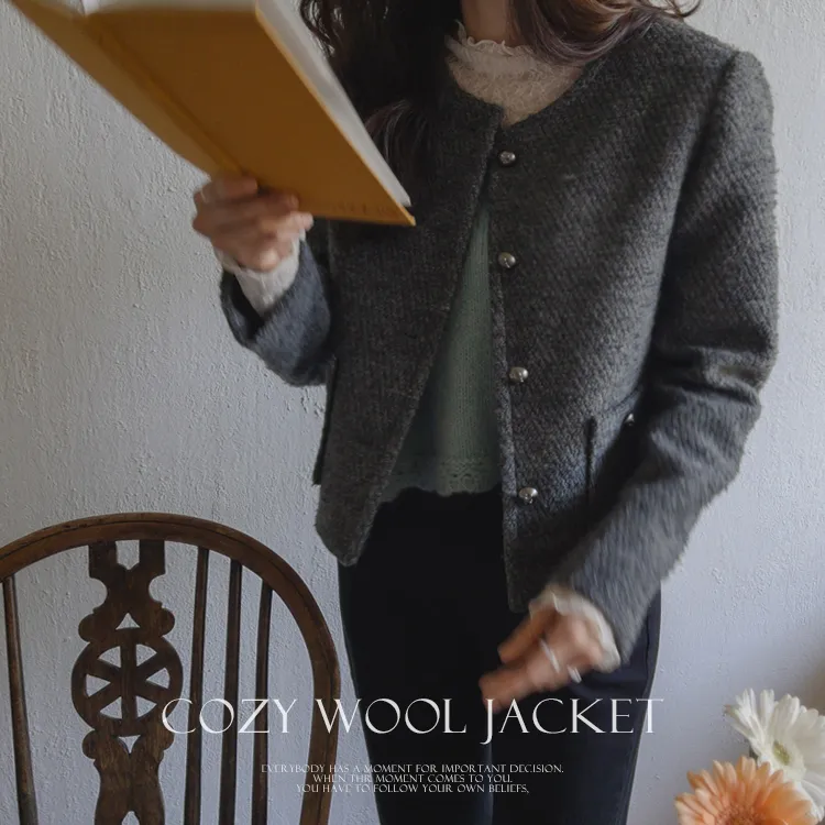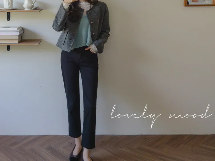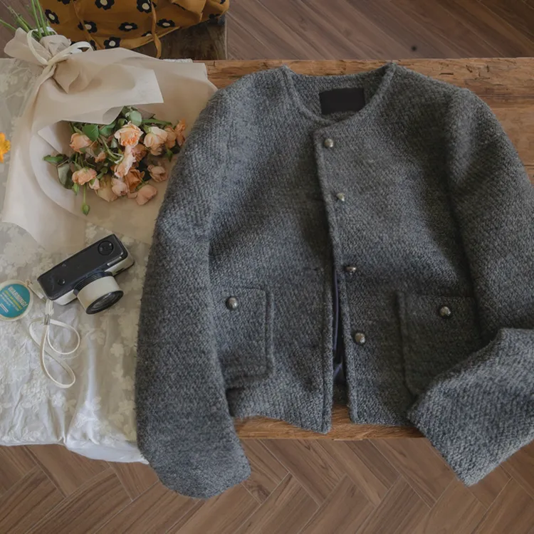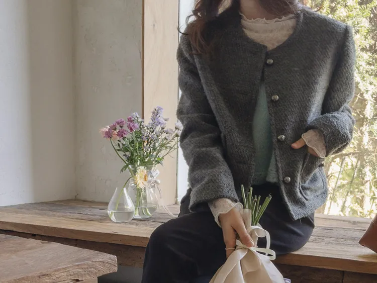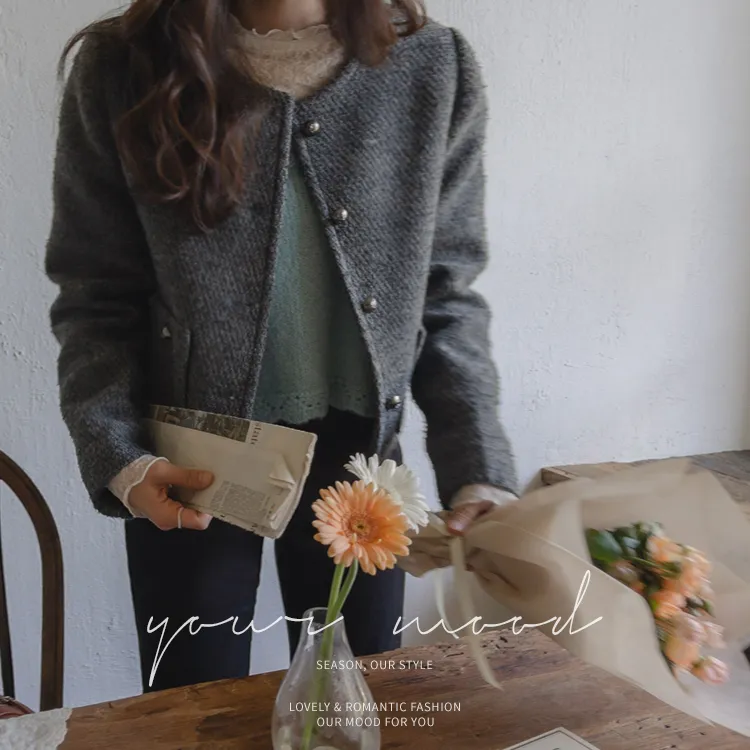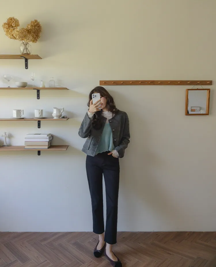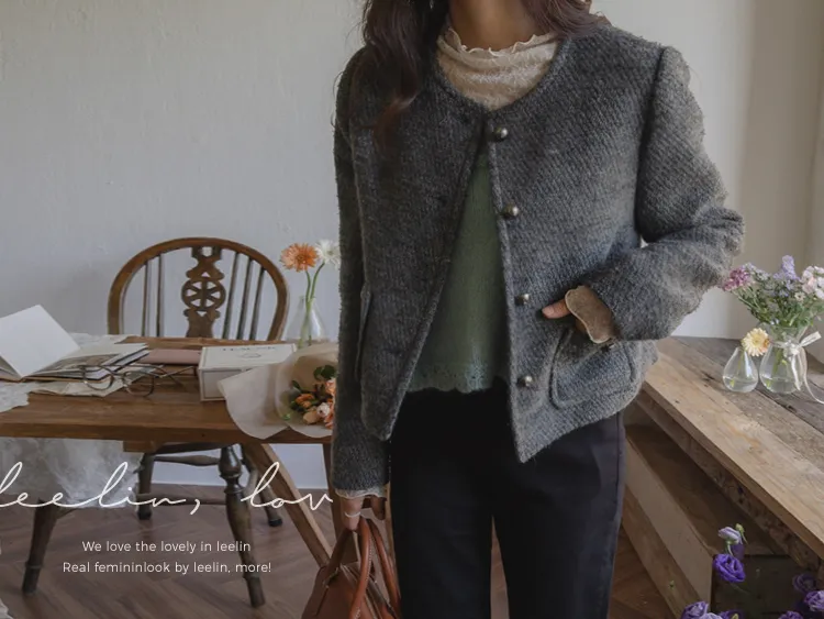 優雅經典魅力奢華霧面金釦花呢外套 深灰色穿搭照