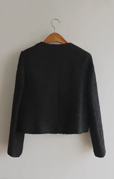 優雅經典魅力奢華霧面金釦花呢外套 黑色穿搭照