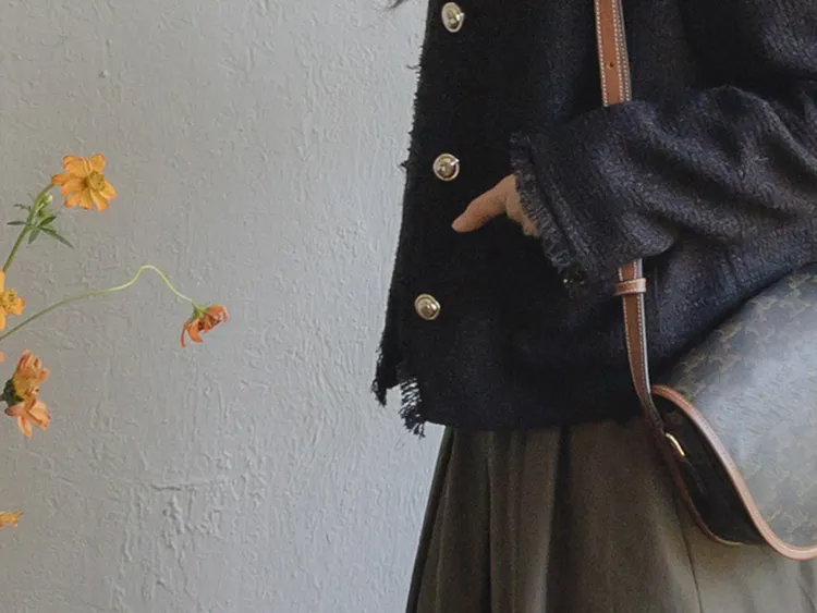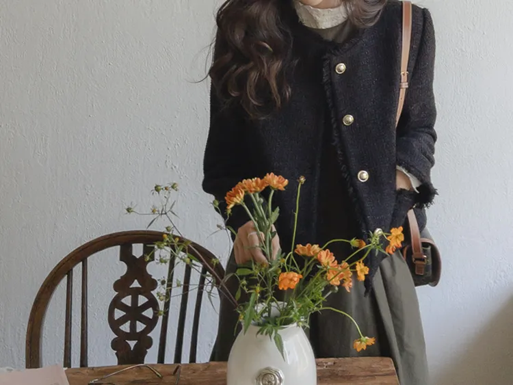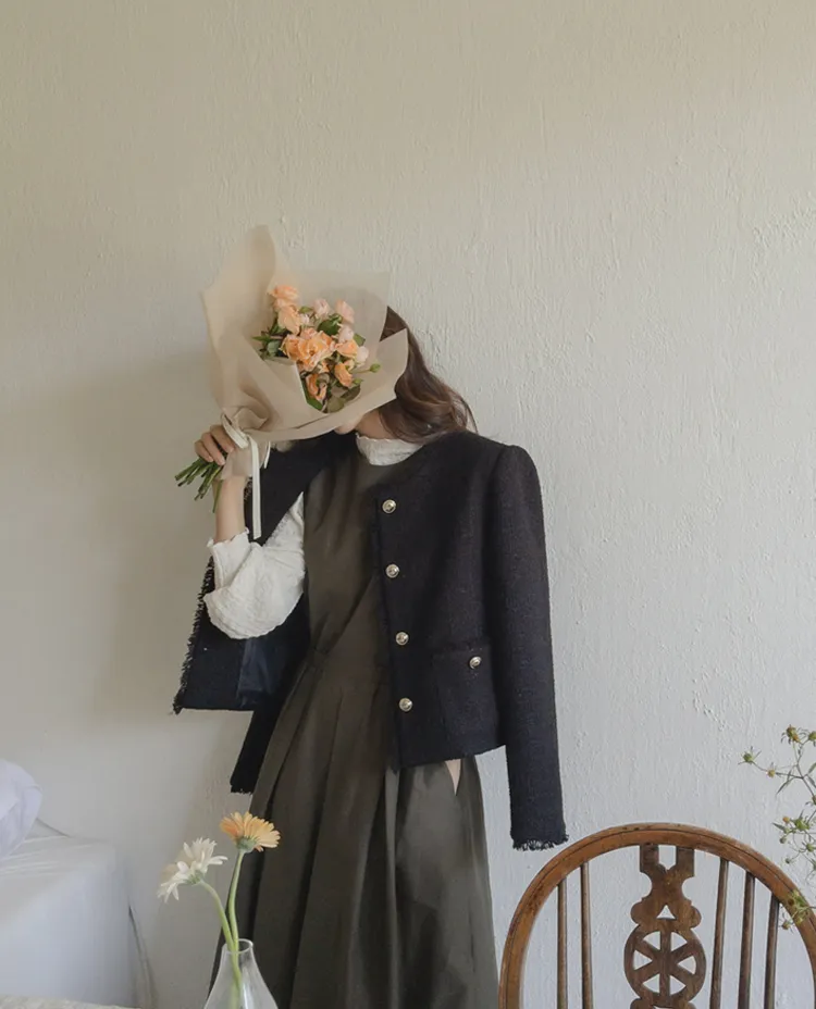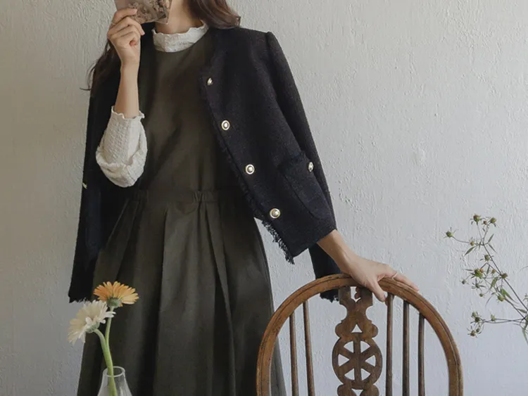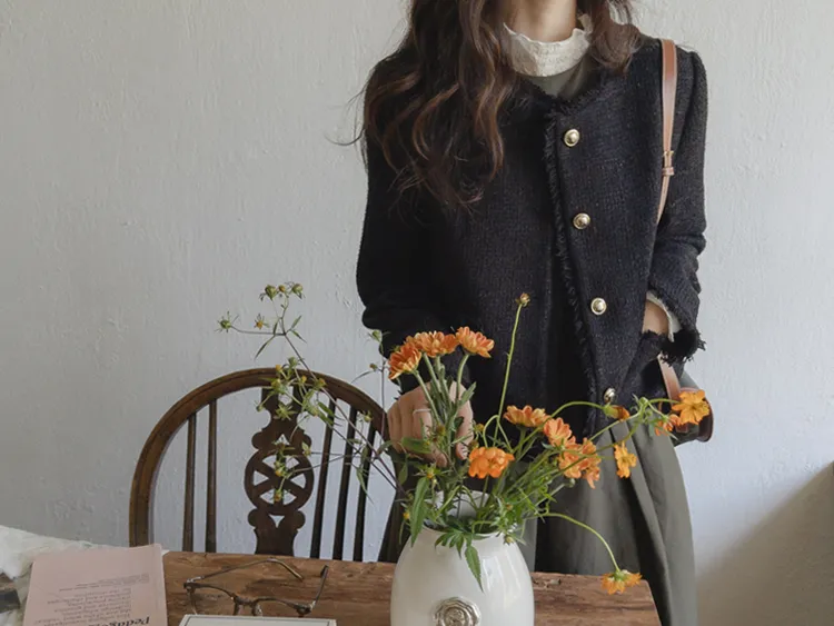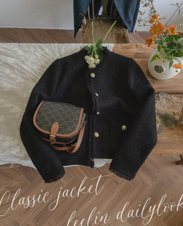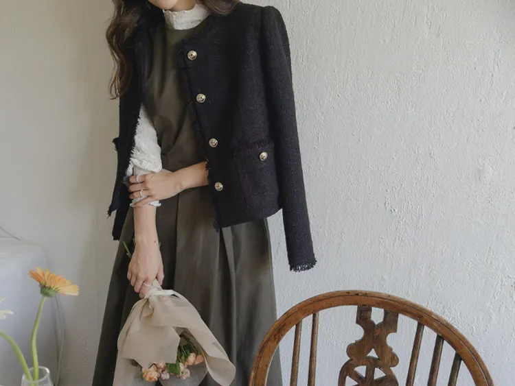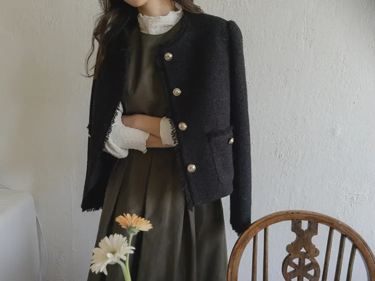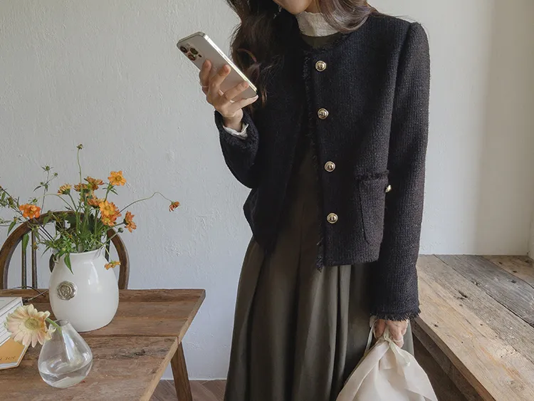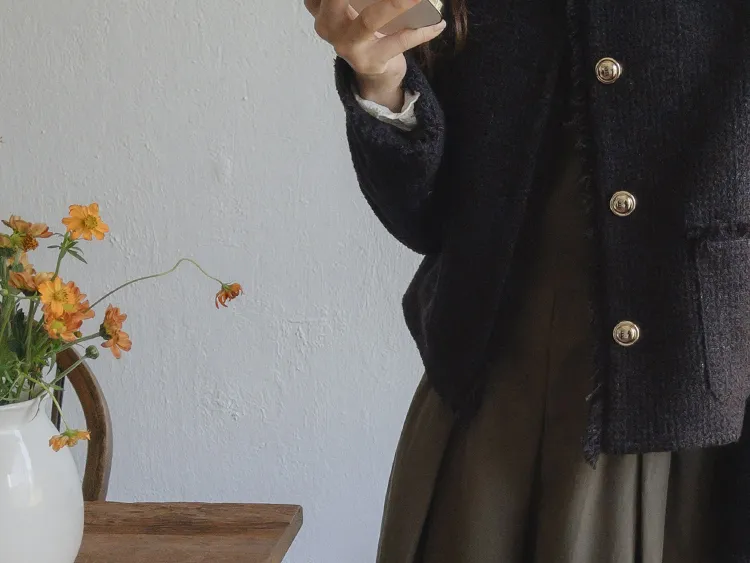 【末端的抽鬚細節帶來高級感的花呢外套♥】【無論是日常穿著還是正裝都非常適合~!】【堅實優質的花呢布料】【具有立體效果的金色鈕扣】