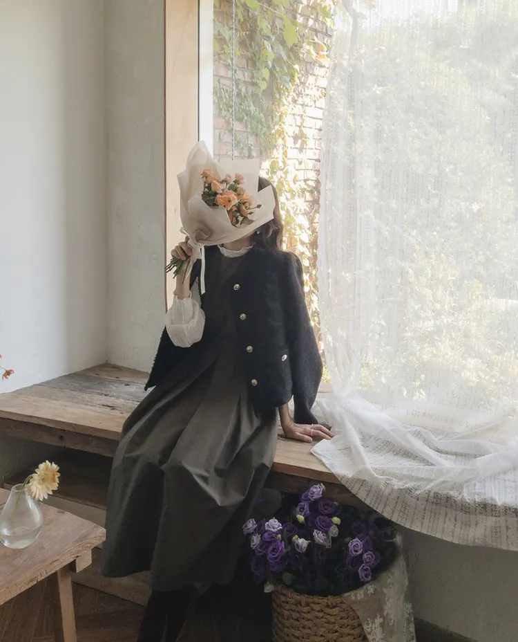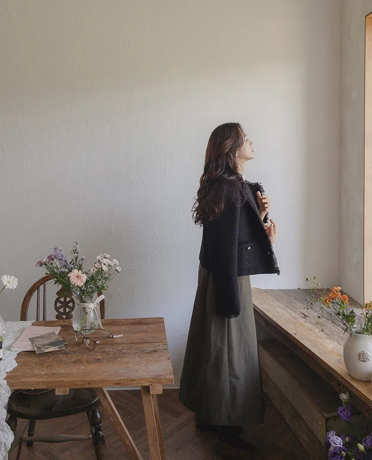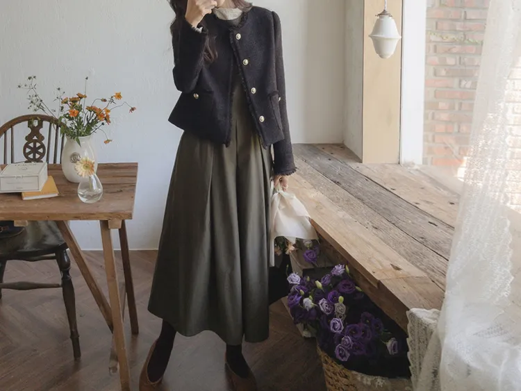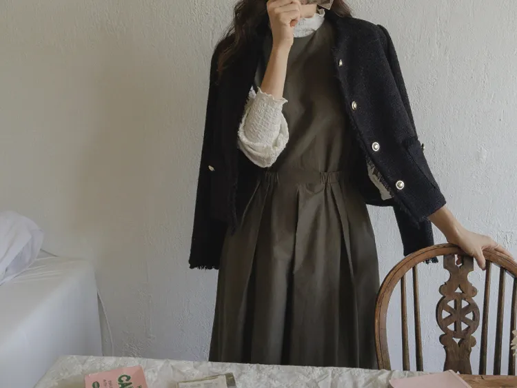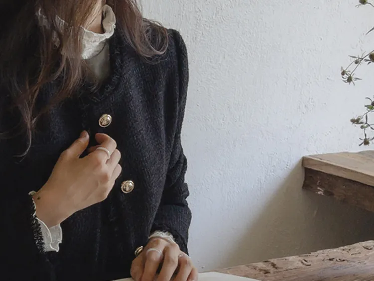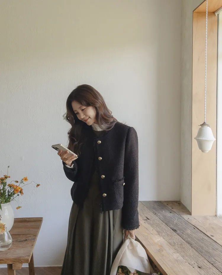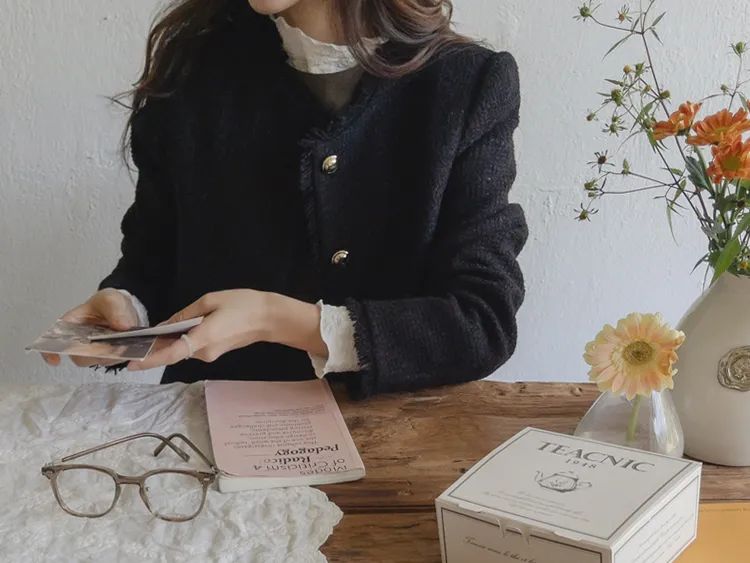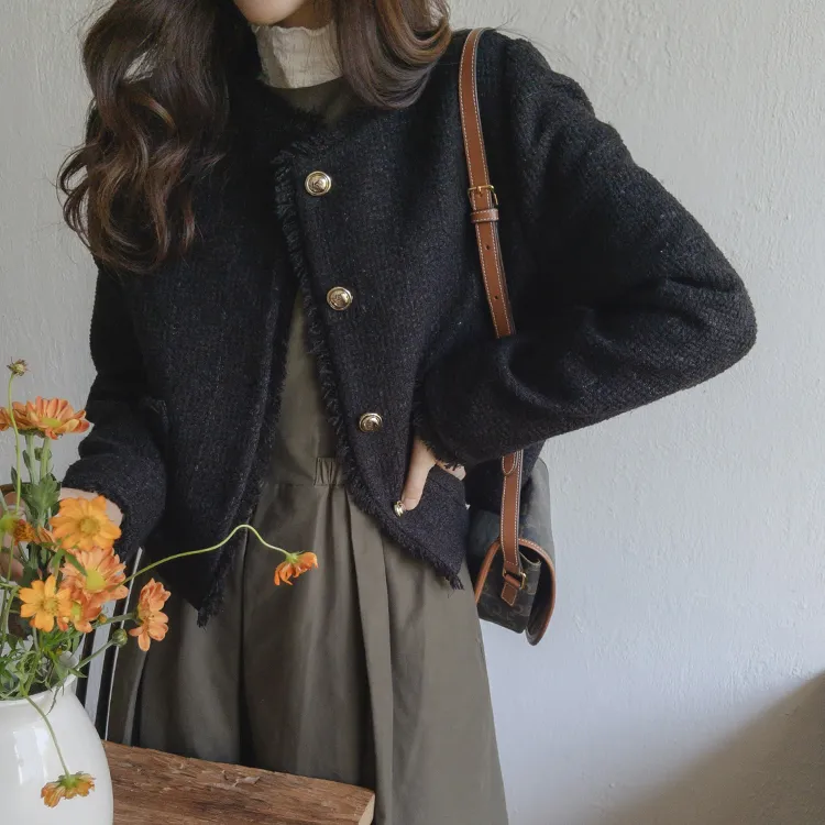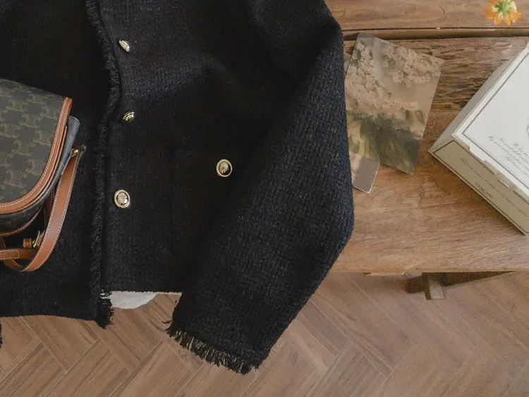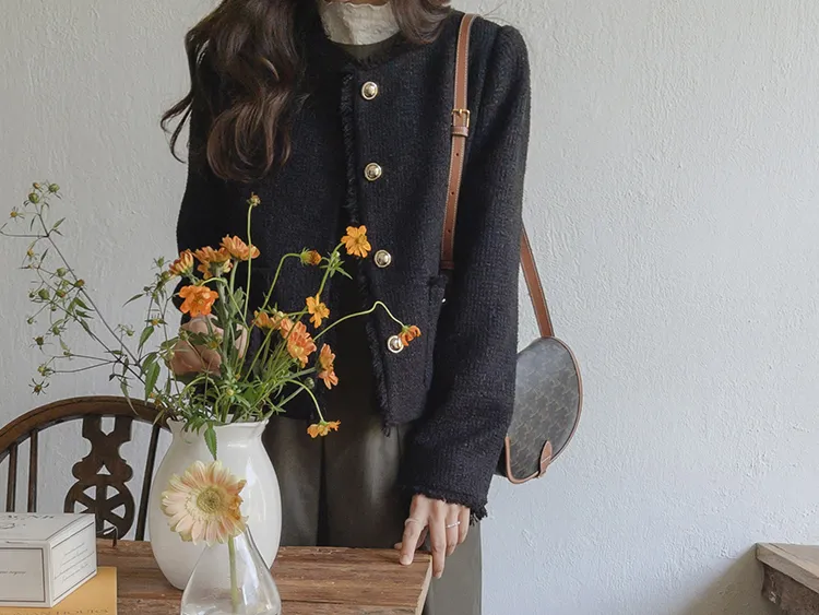 【末端的抽鬚細節帶來高級感的花呢外套♥】【無論是日常穿著還是正裝都非常適合~!】【堅實優質的花呢布料】【具有立體效果的金色鈕扣】