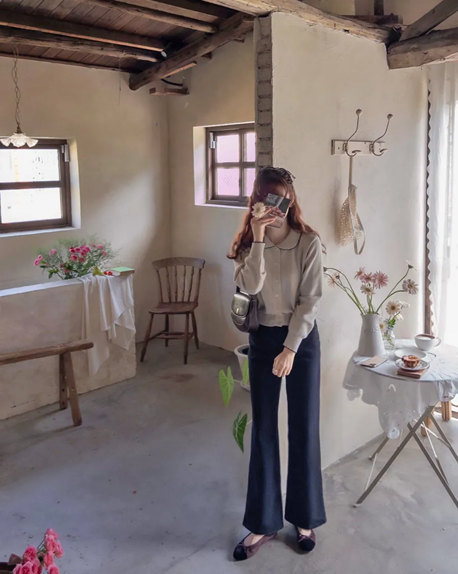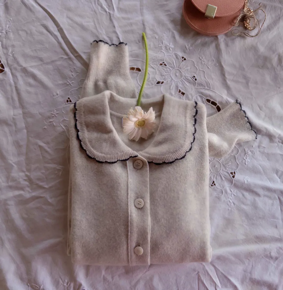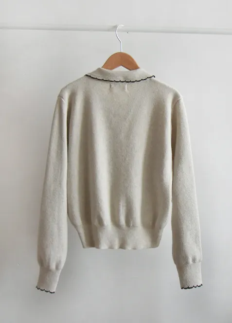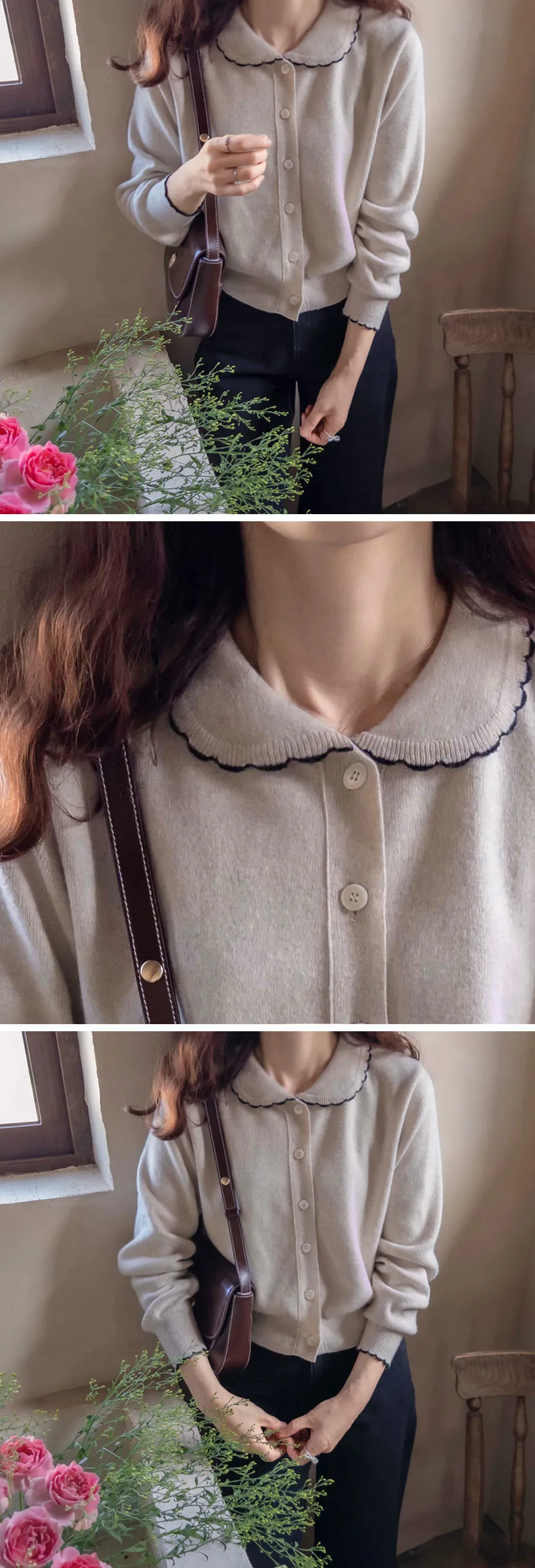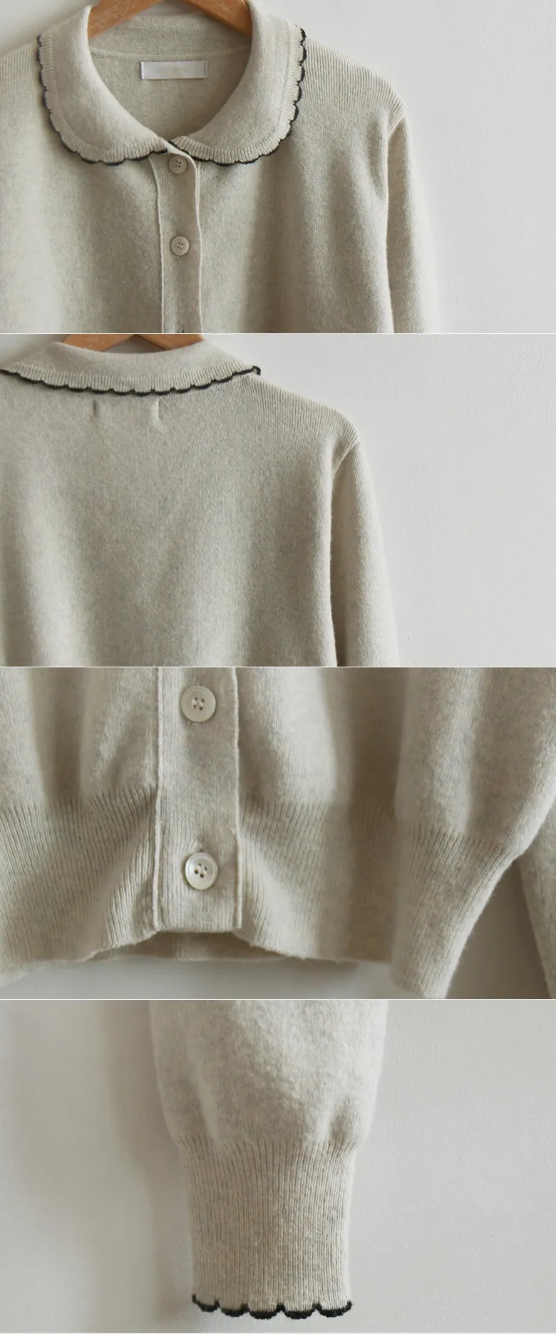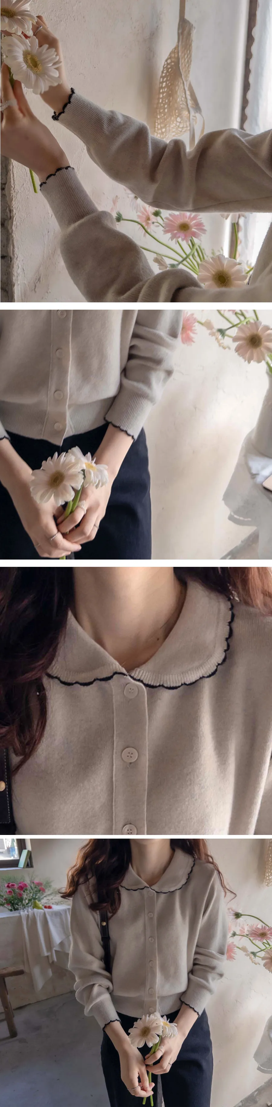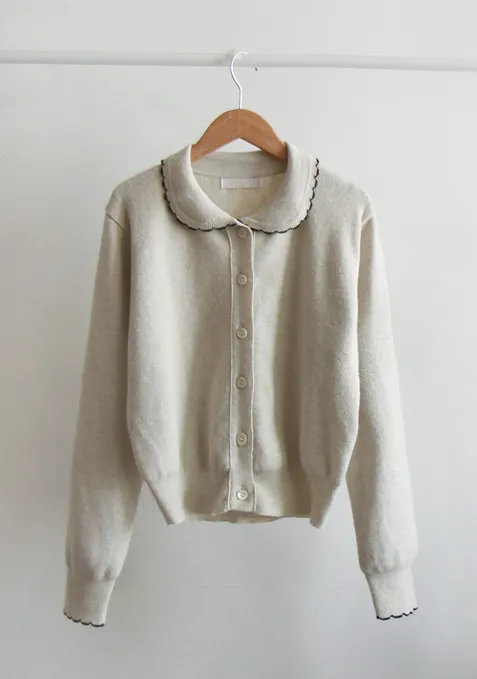 [含羊毛材質,柔軟彈性的品牌優質紗線] [微妙的波浪領口是亮點] [適合下一季經常穿著的簡約版型開衫] [精緻色彩,充滿時尚情調的開衫] [袖子波浪形狀也很漂亮][推薦作為日常時尚合身的開衫]