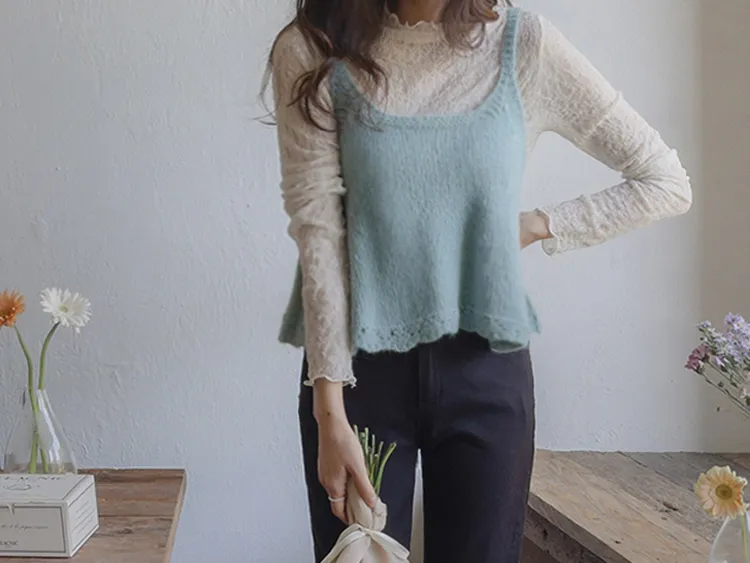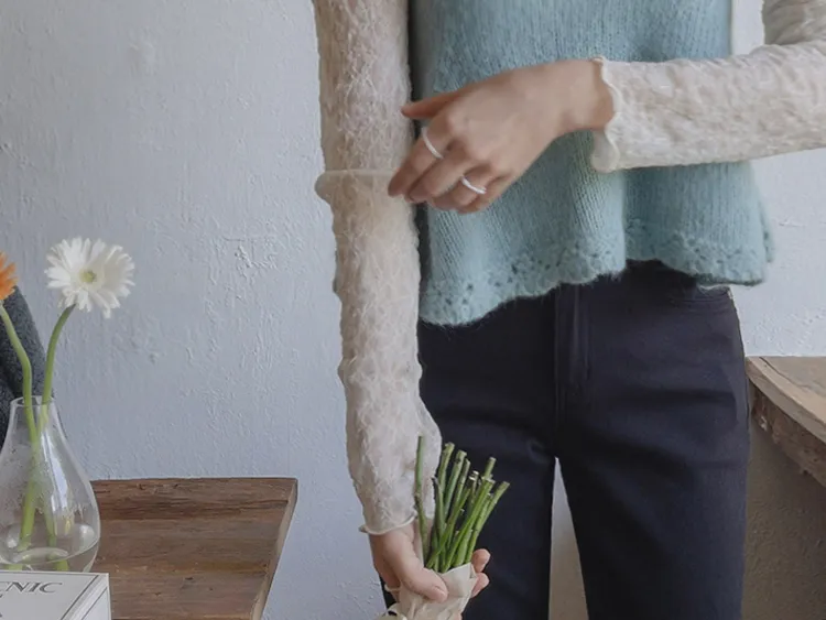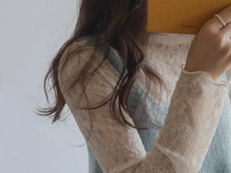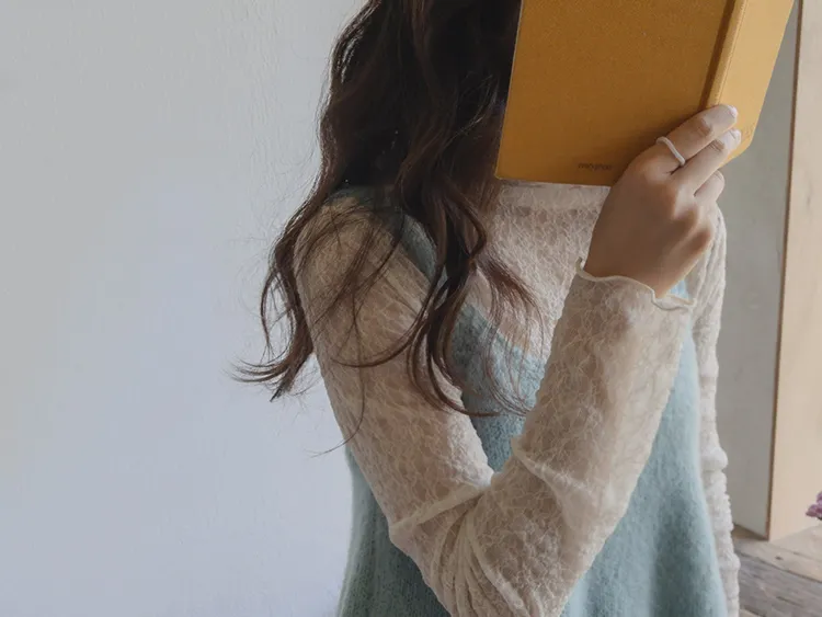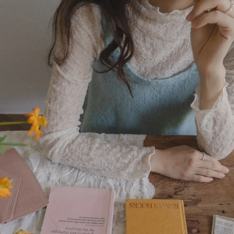 【充滿女人味的蕾絲上衣♥】【精緻的蕾絲布料提升了點! 】【適合與各種單品搭配的萬能疊搭單品】【彈性好,很舒服~】