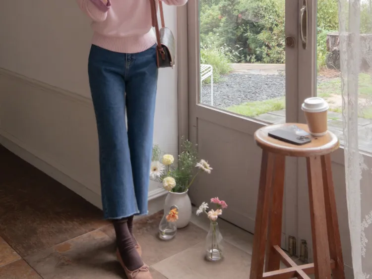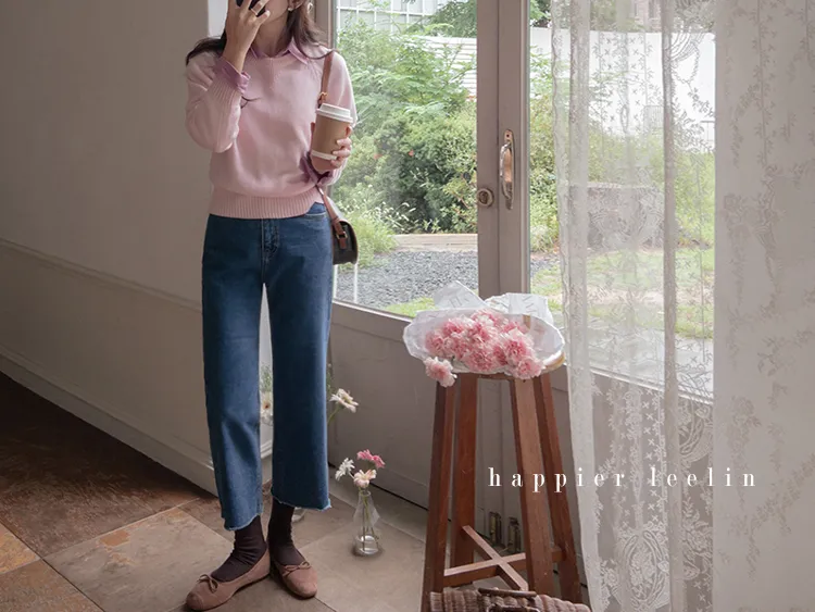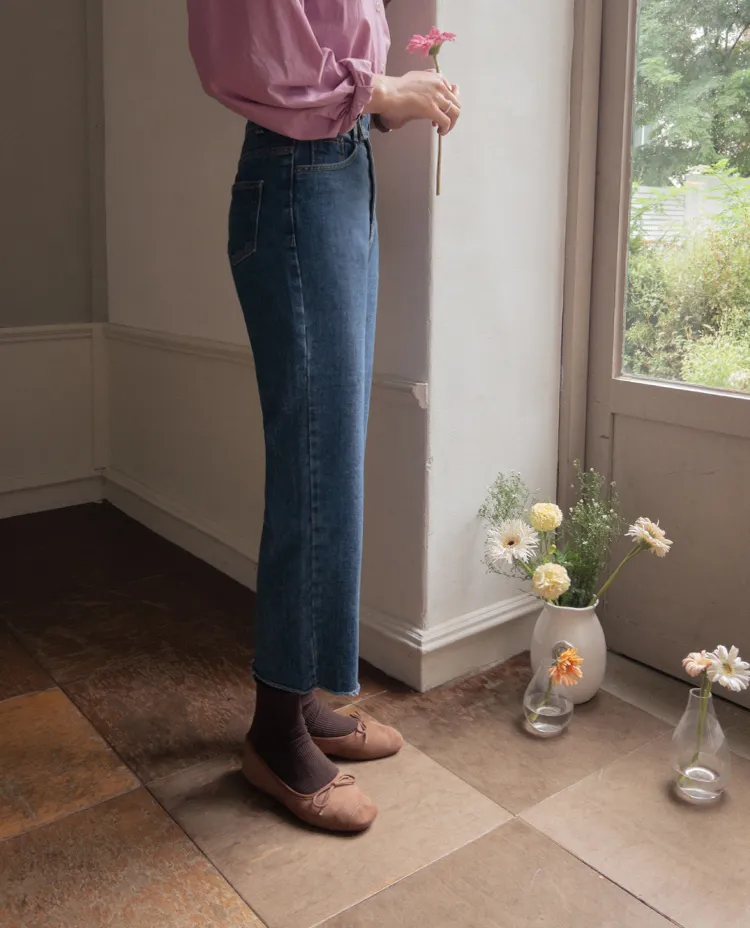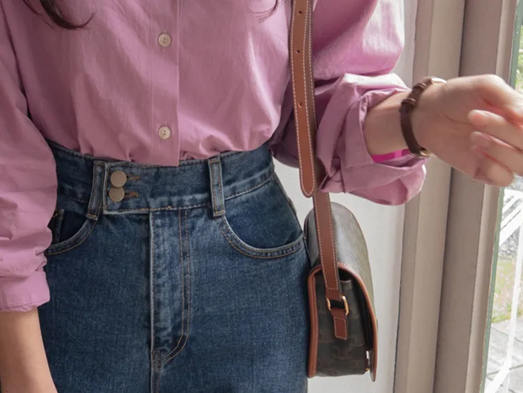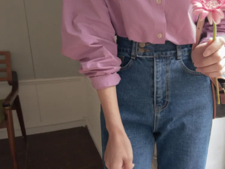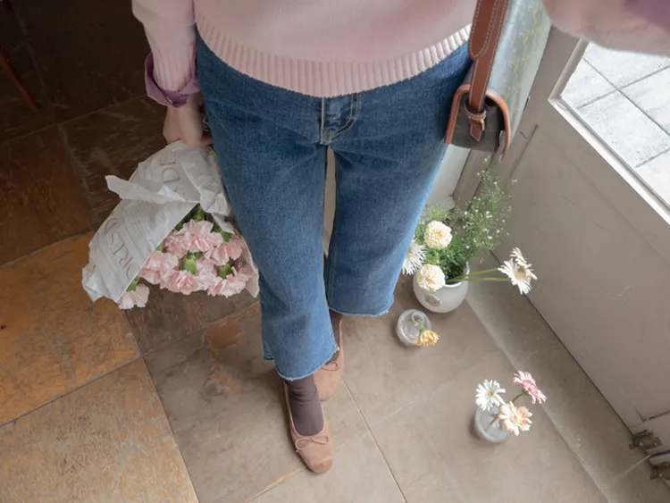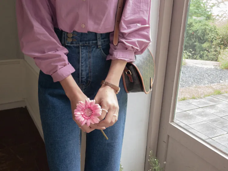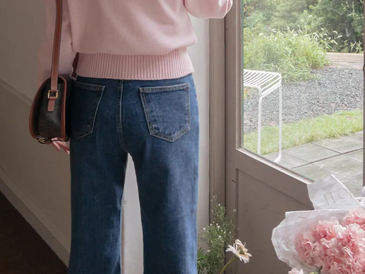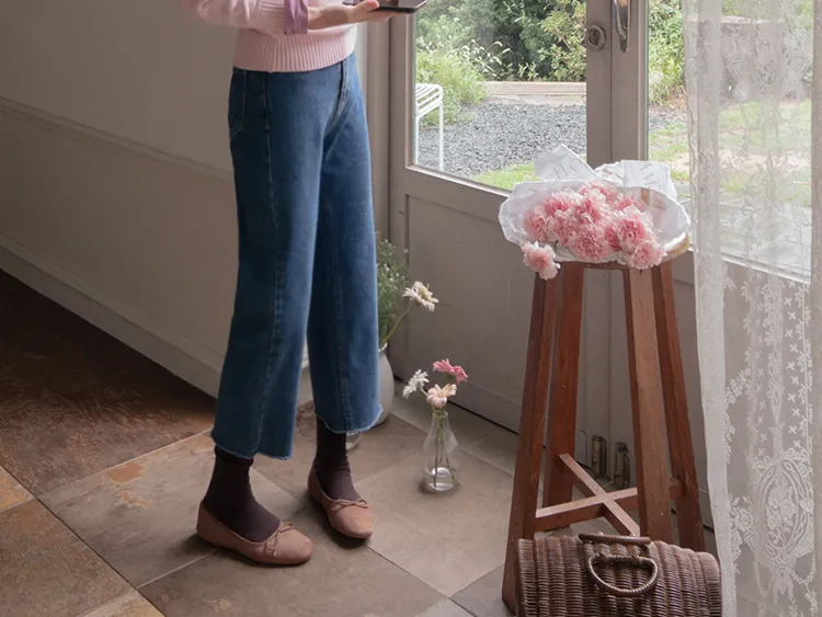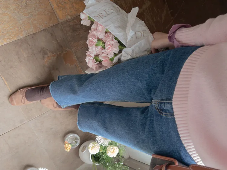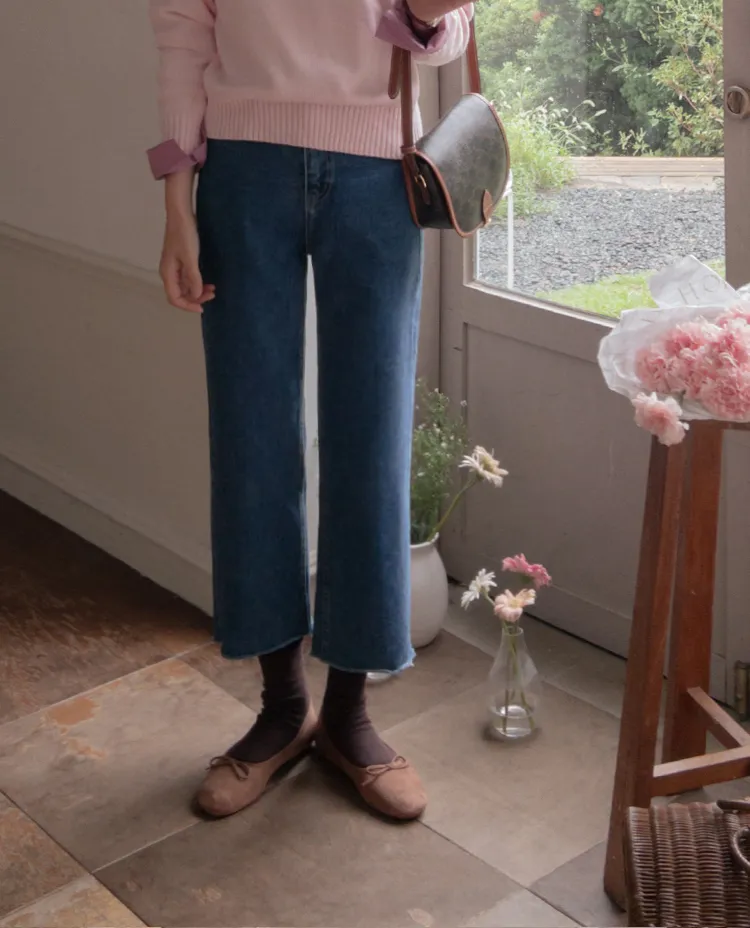 獨特魅力雙扣設計半寬下擺自然剪裁牛仔褲