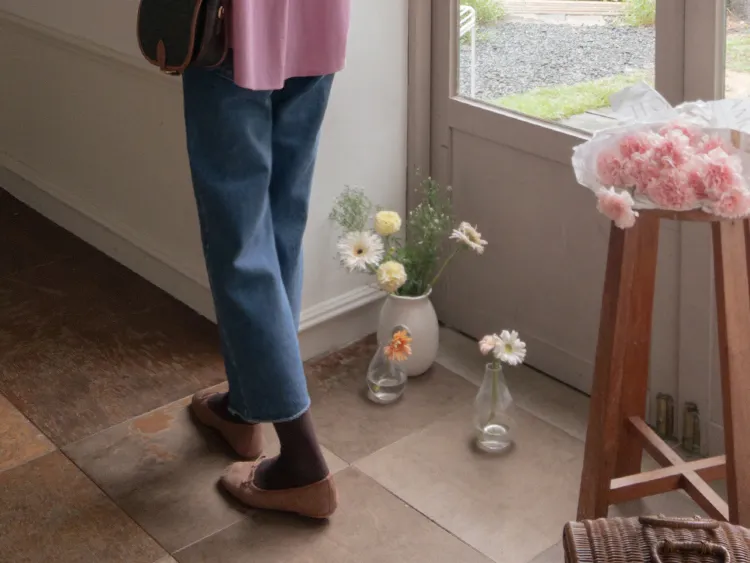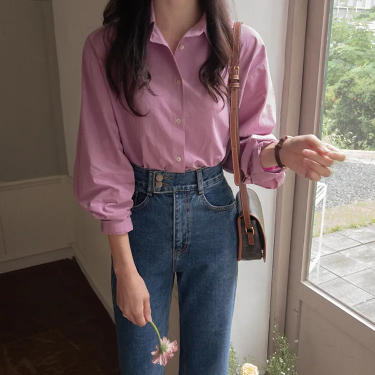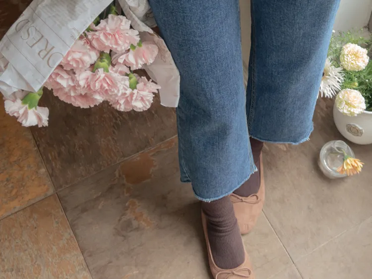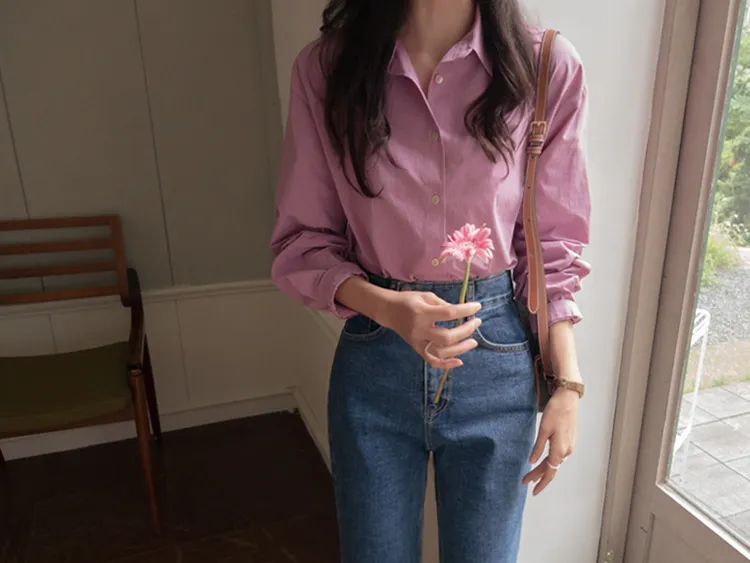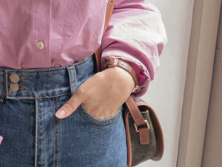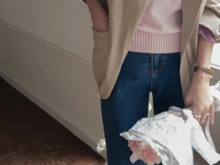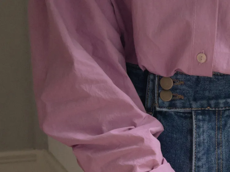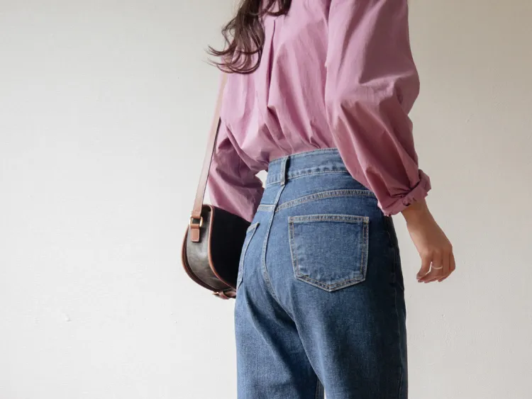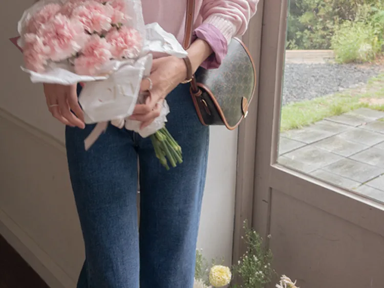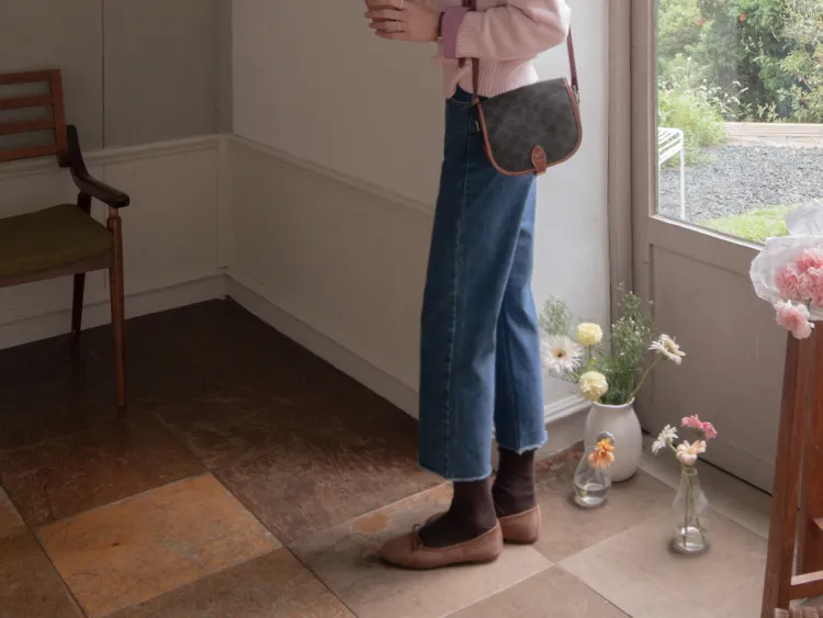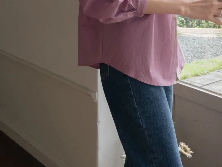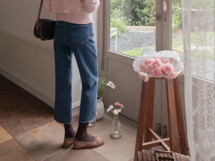 獨特魅力雙扣設計半寬下擺自然剪裁牛仔褲