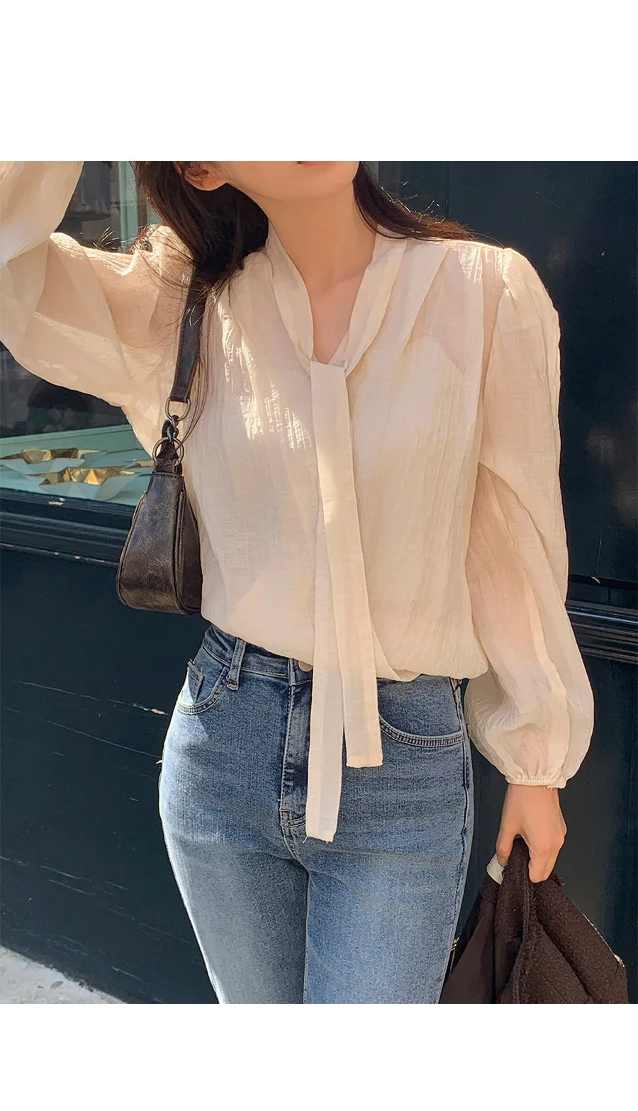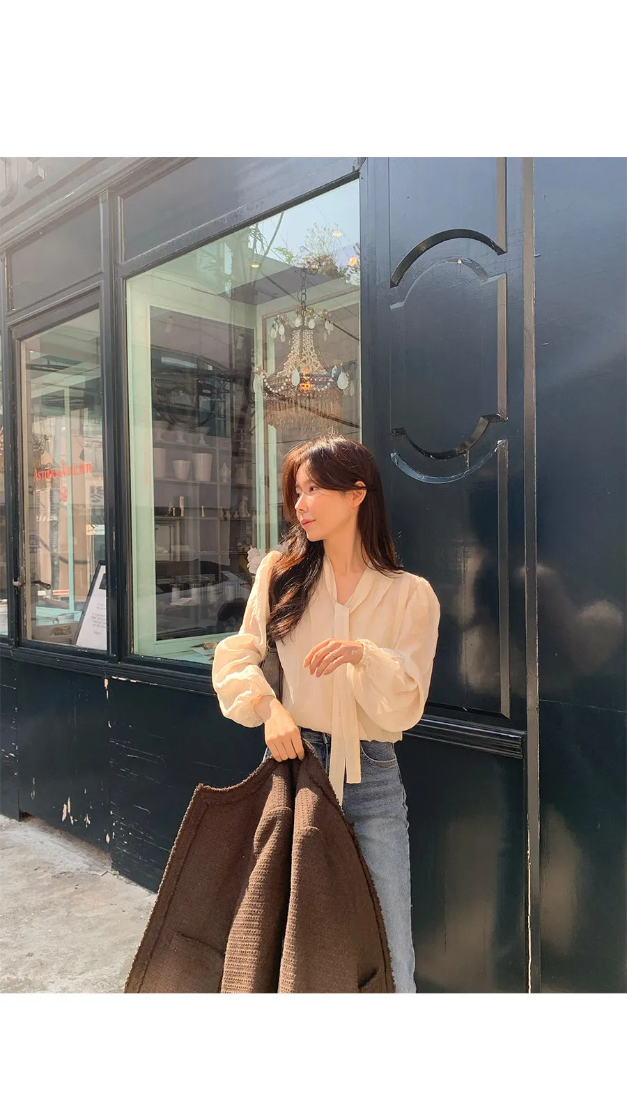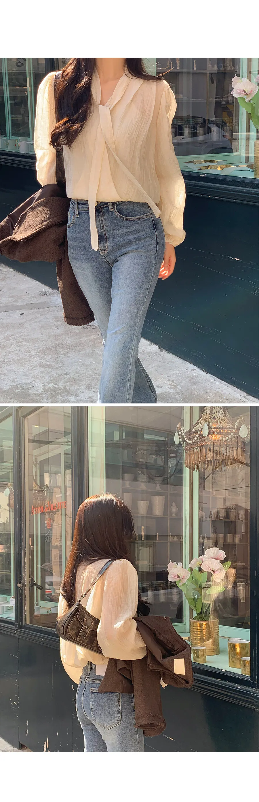 柔美肩線針摺領綁帶皺摺裹身上衣