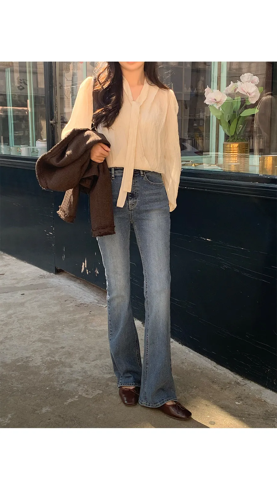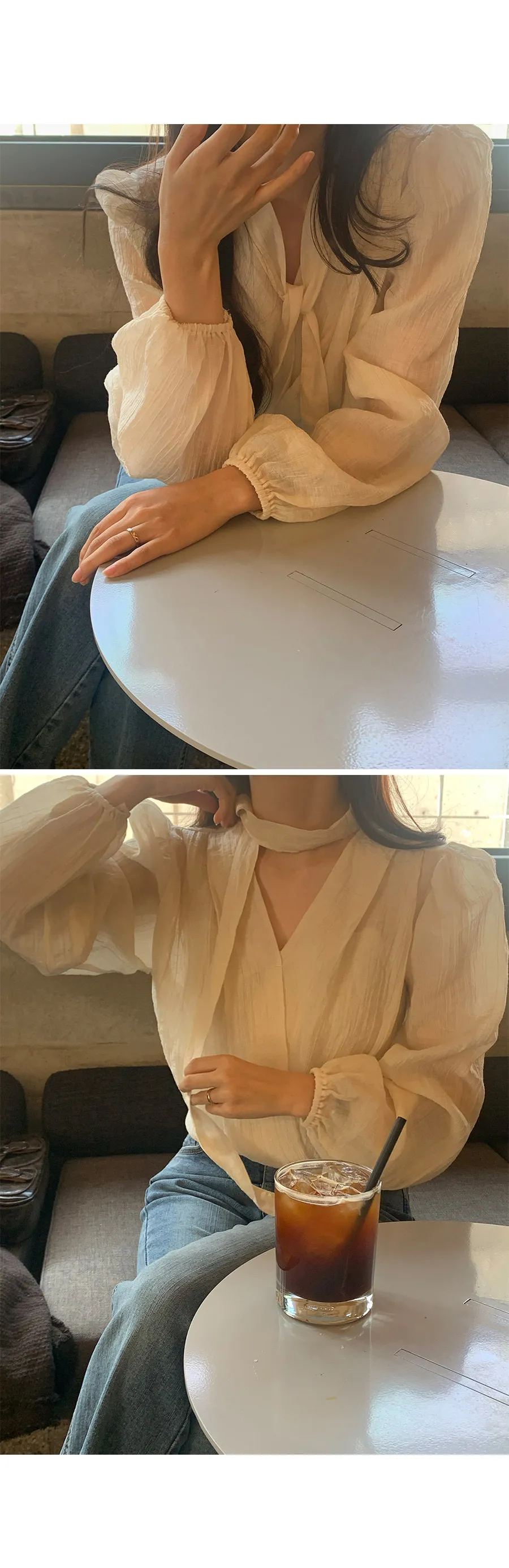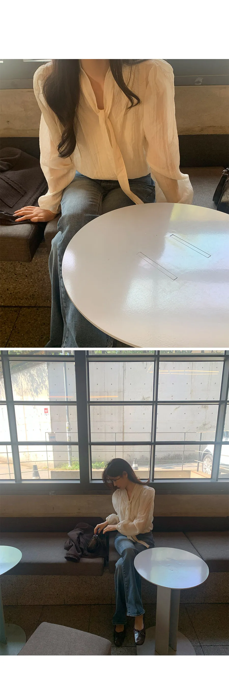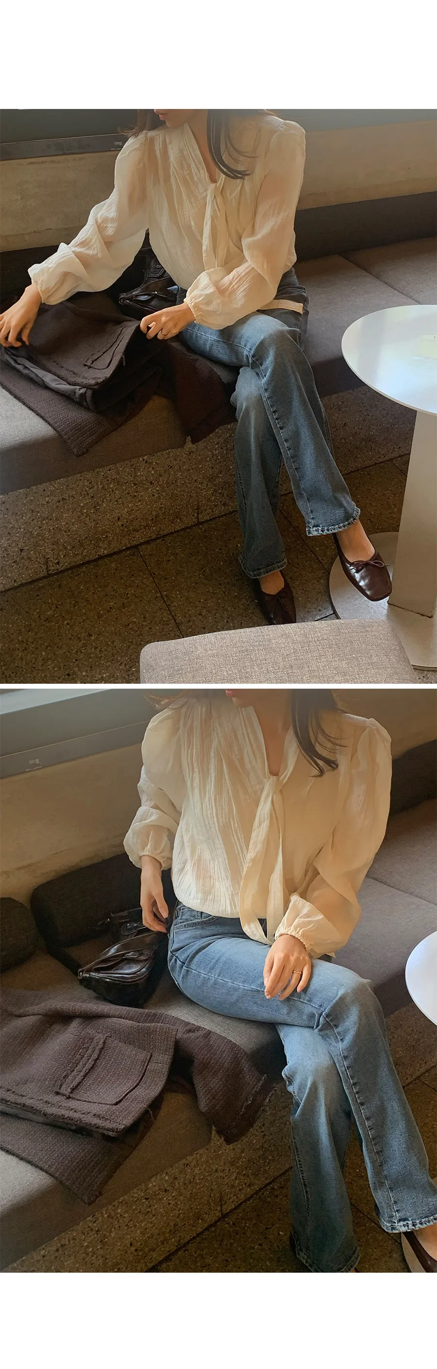 柔美肩線針摺領綁帶皺摺裹身上衣