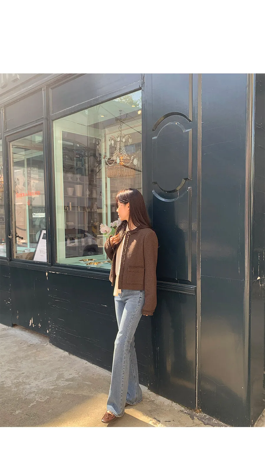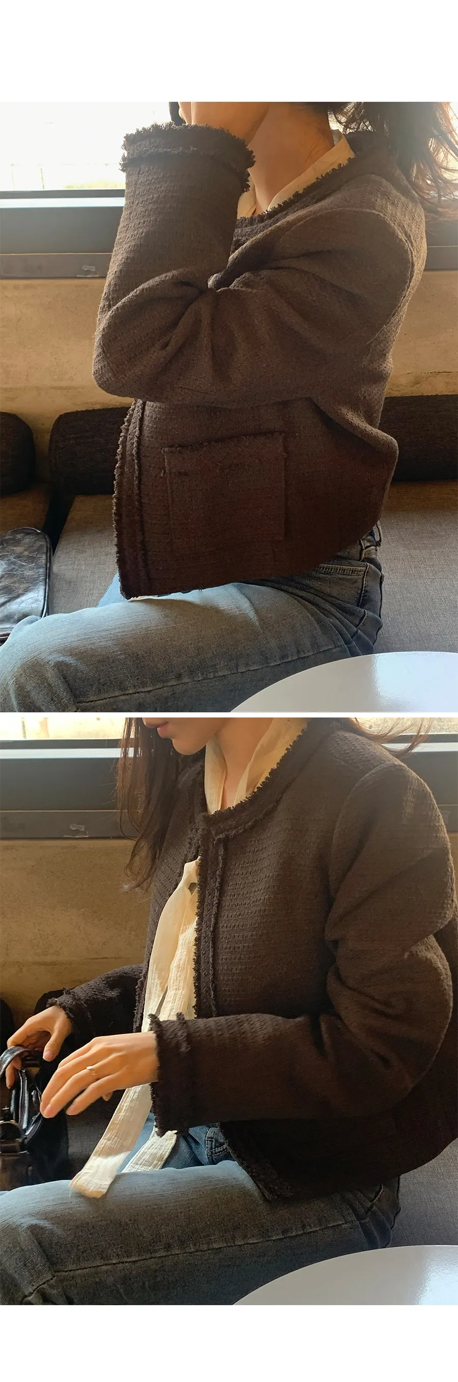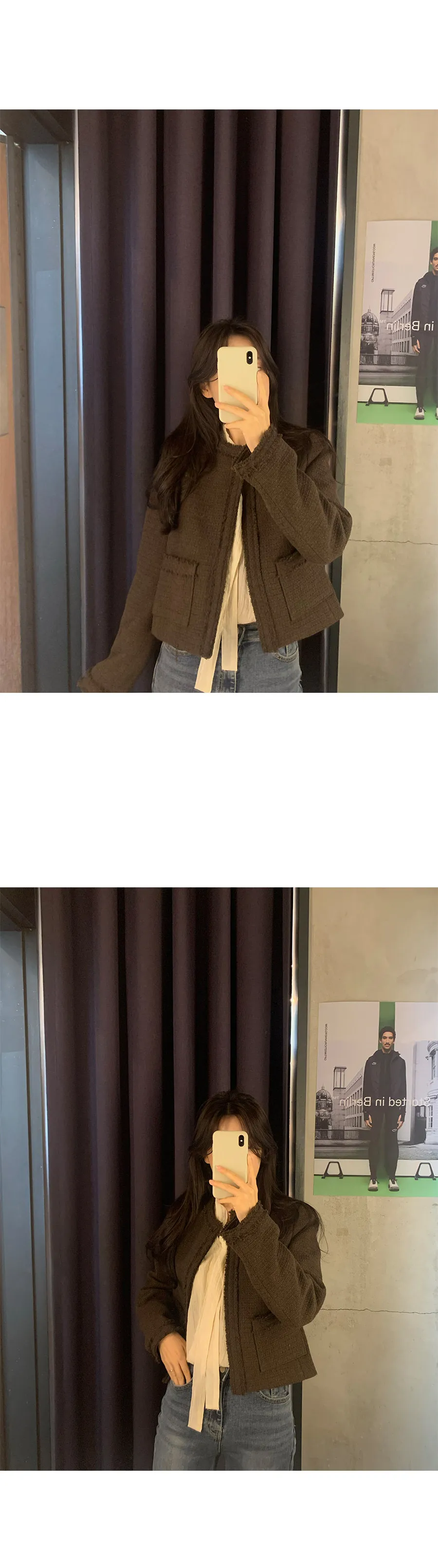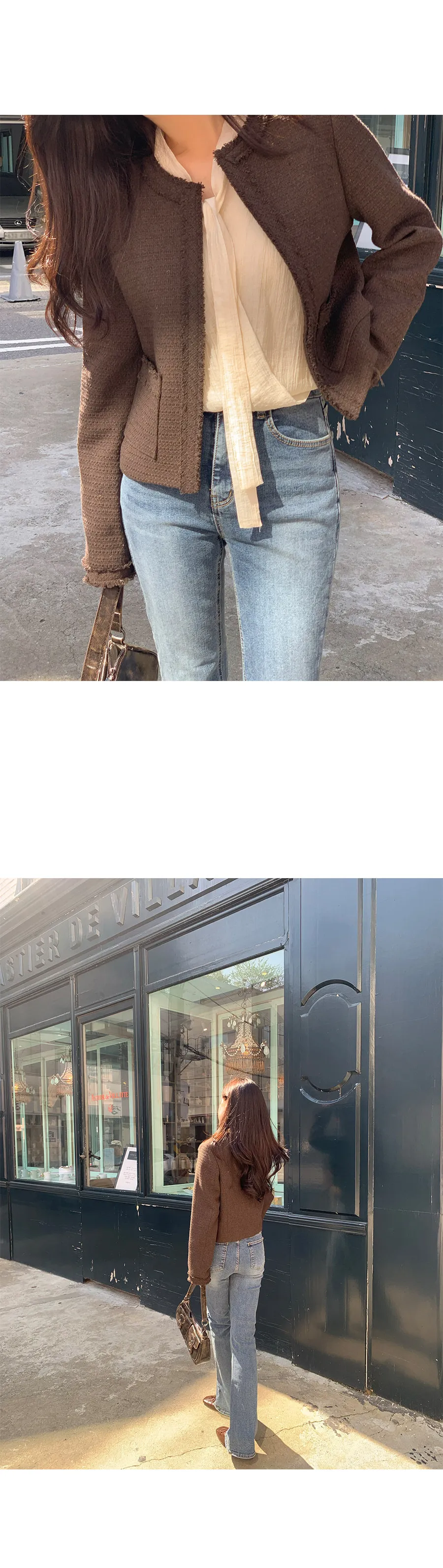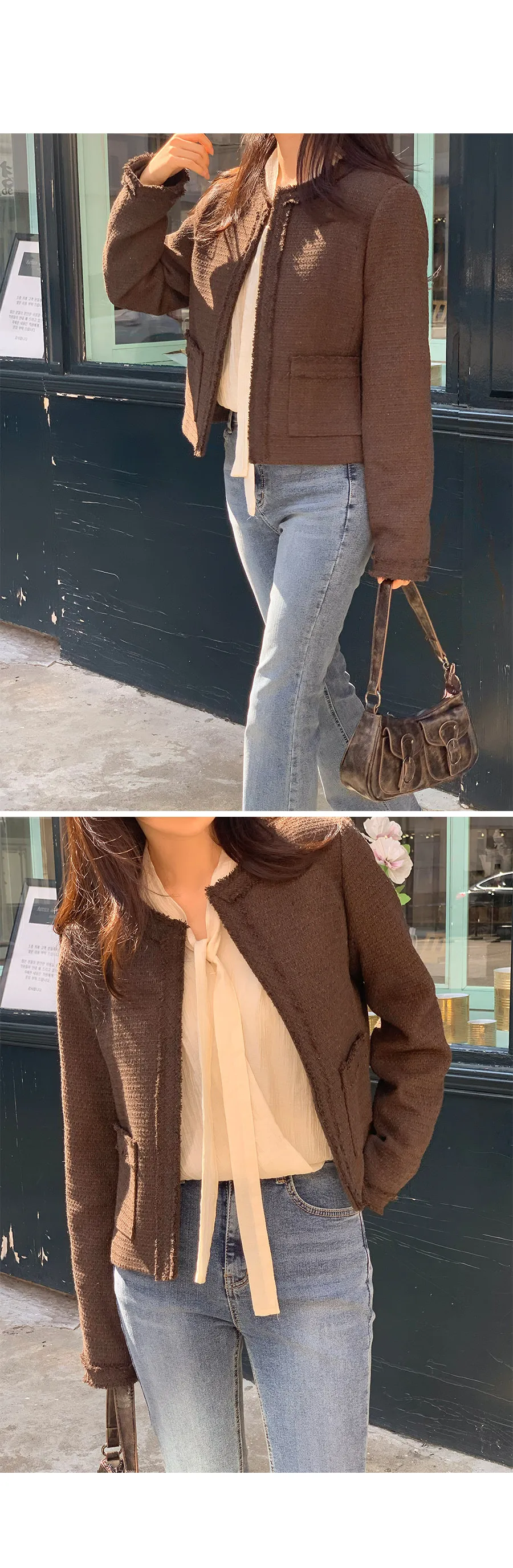領口和口袋上有流蘇細節,營造出女性氣質的女性化外套,略帶遮蓋臀部的半短款,打造時尚輪廓♡