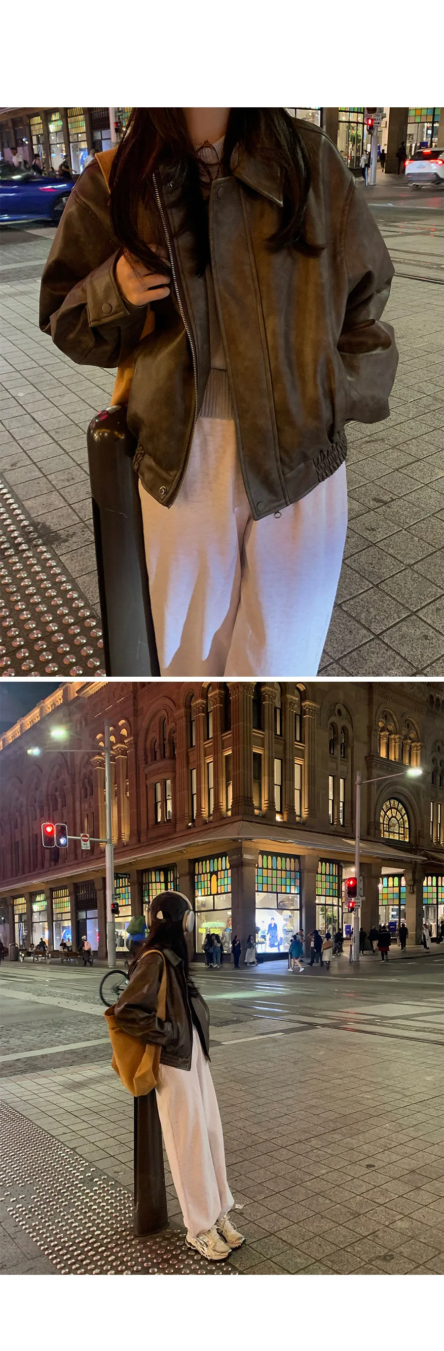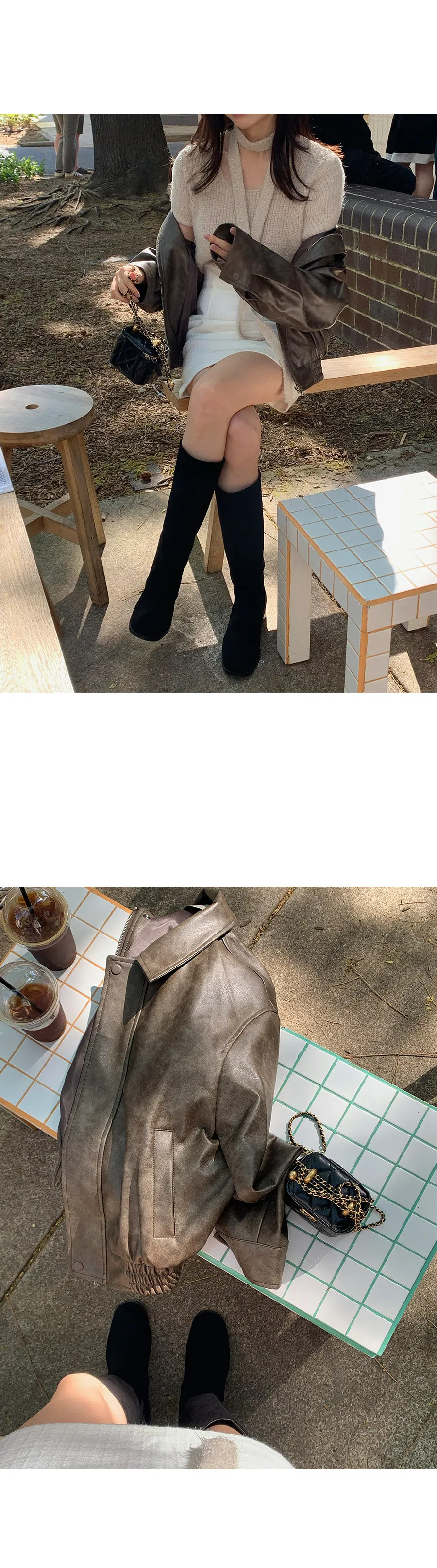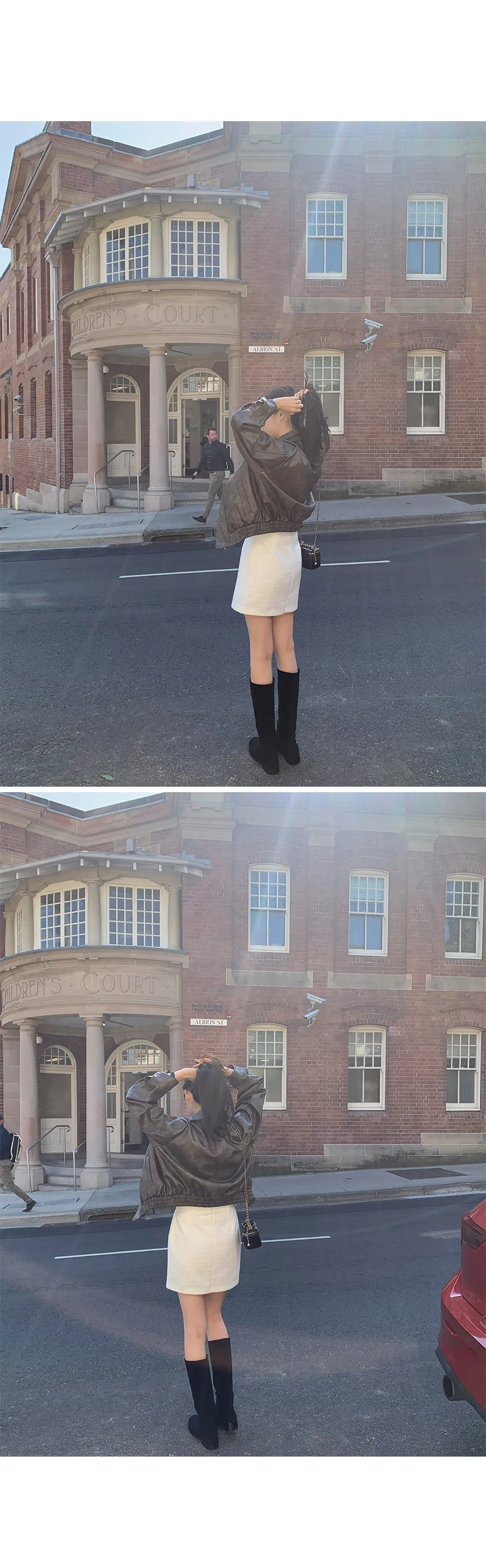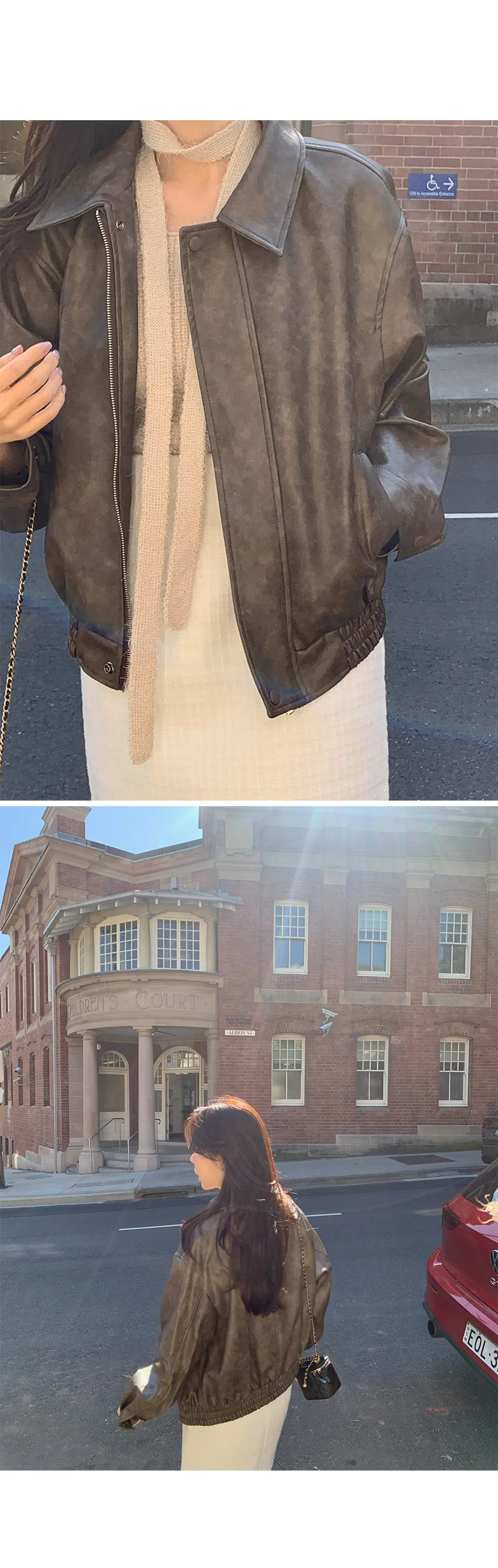 別緻時尚下擺鑲邊貼合皮革外套