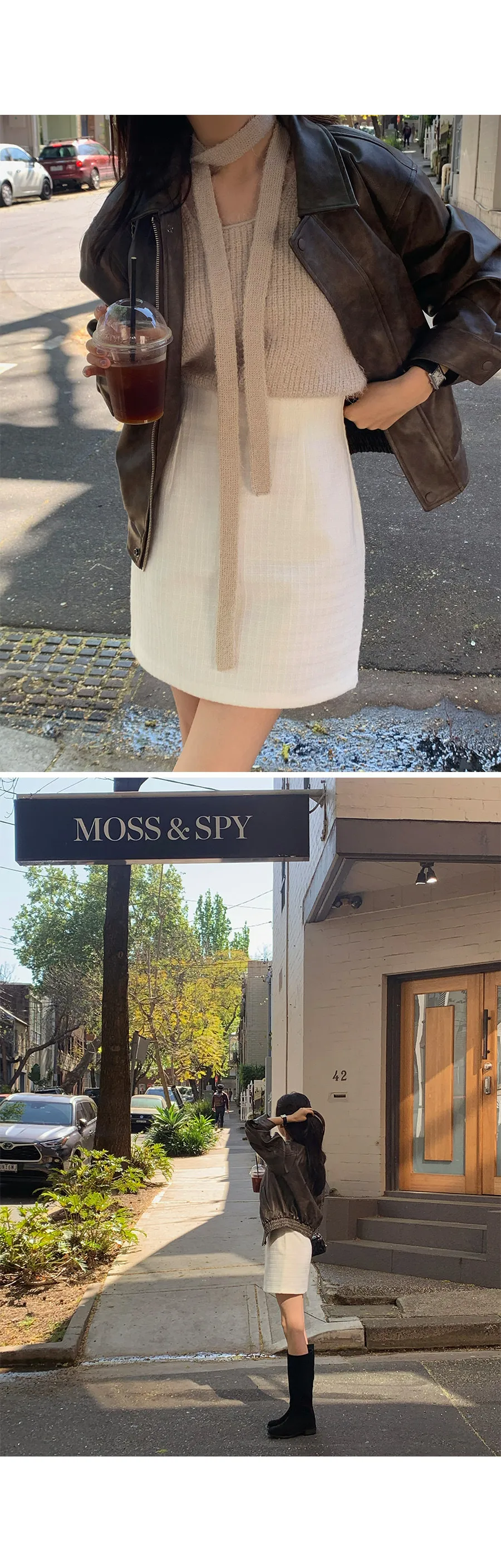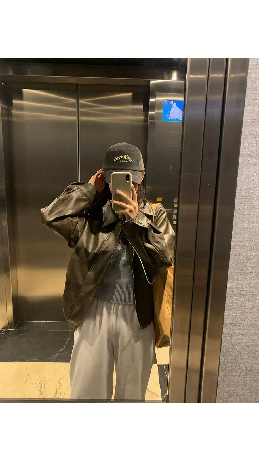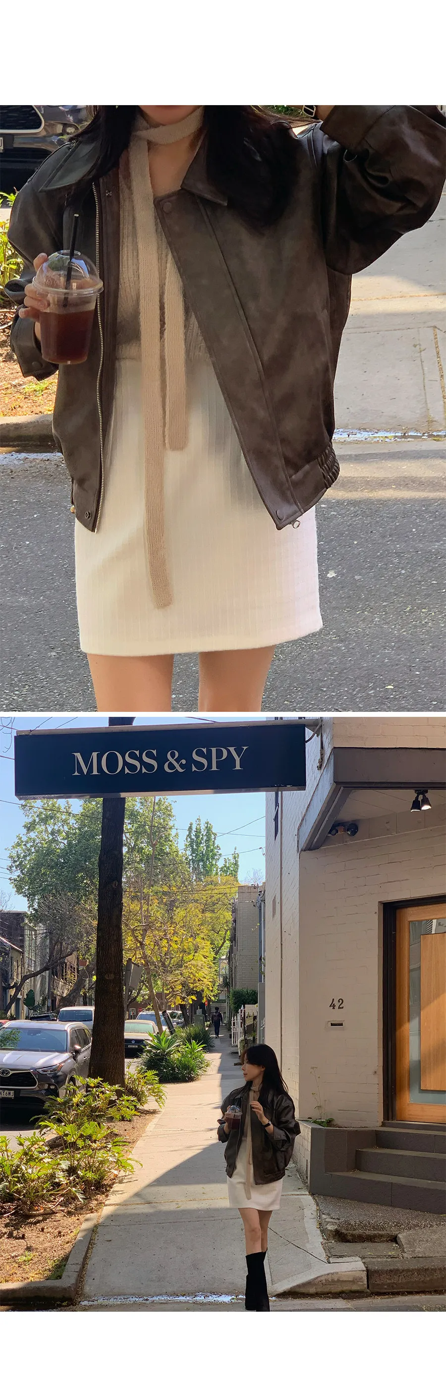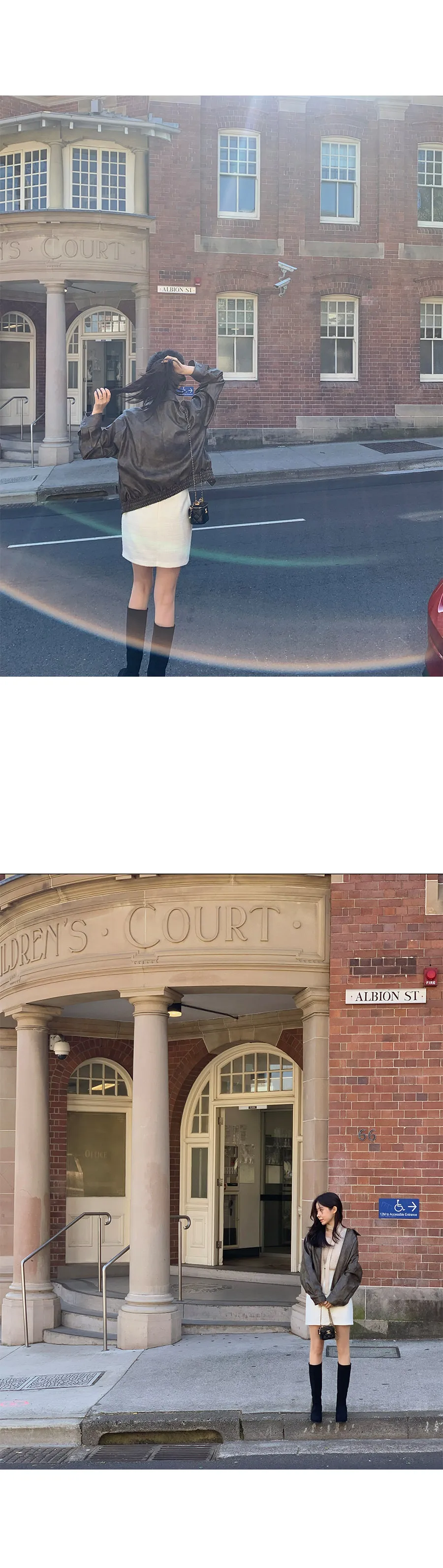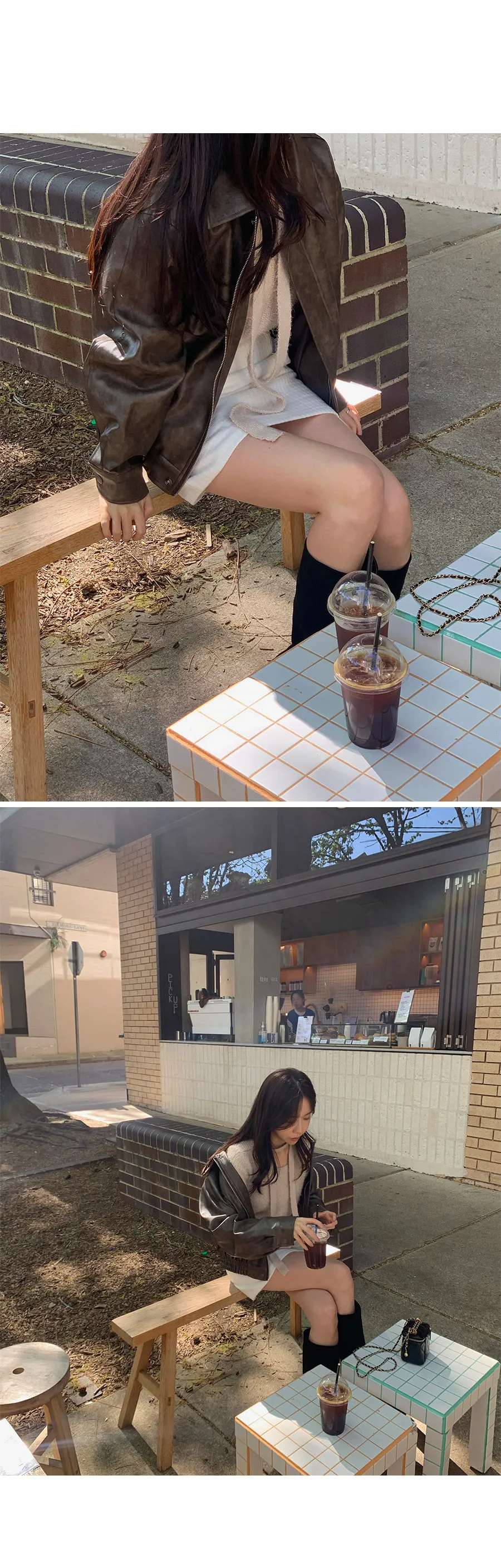 別緻時尚下擺鑲邊貼合皮革外套