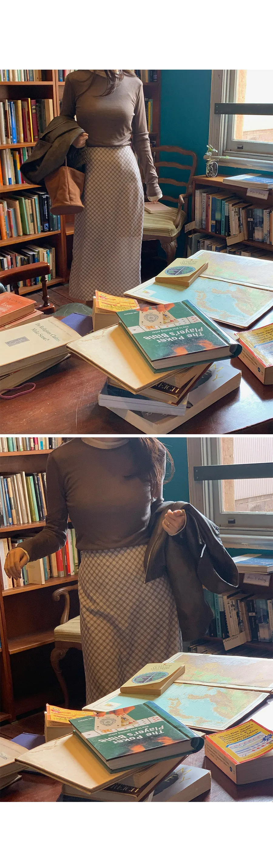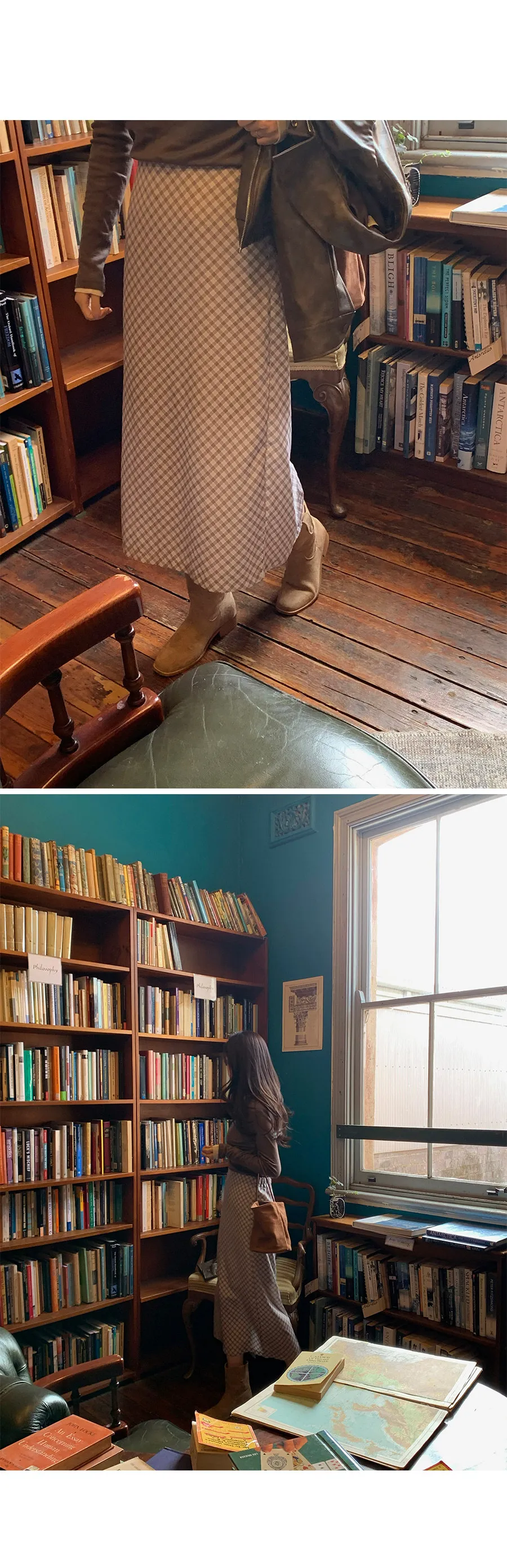 復古時尚H剪裁後開衩格紋中長裙