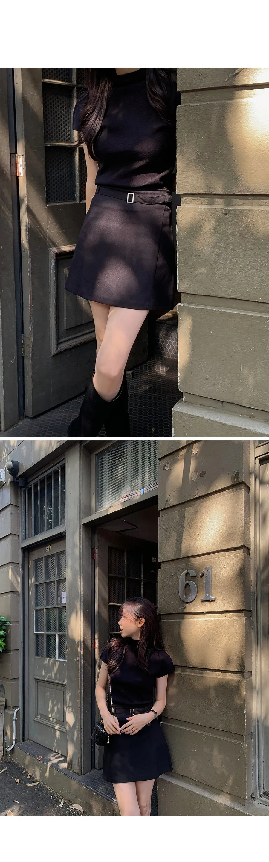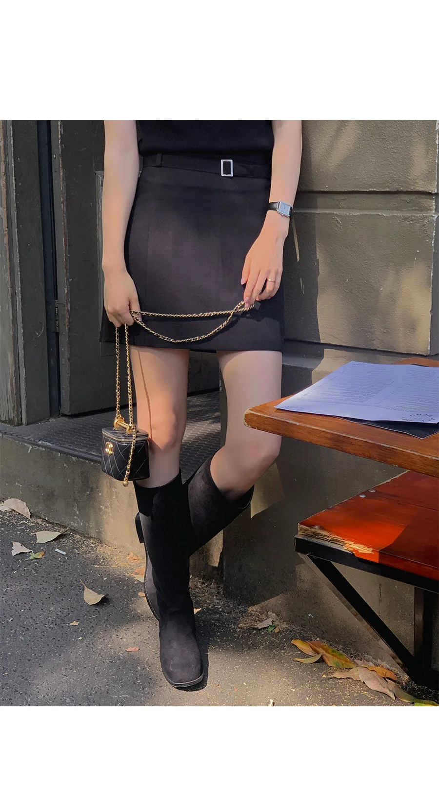 風格半A字版型方釦腰帶設計短裙