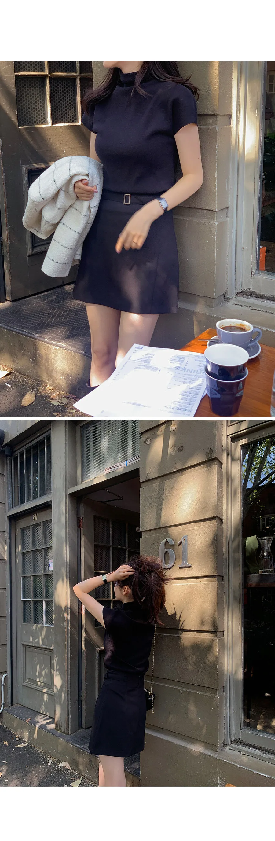 成熟都會氣息半領蓋袖柔軟針織上衣