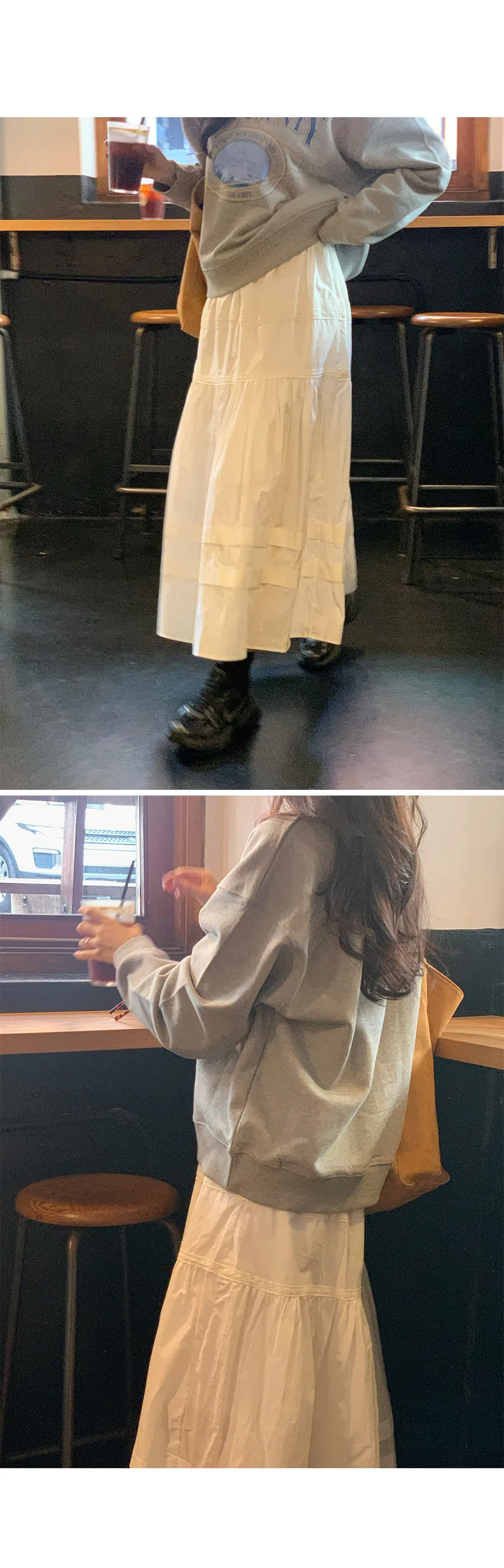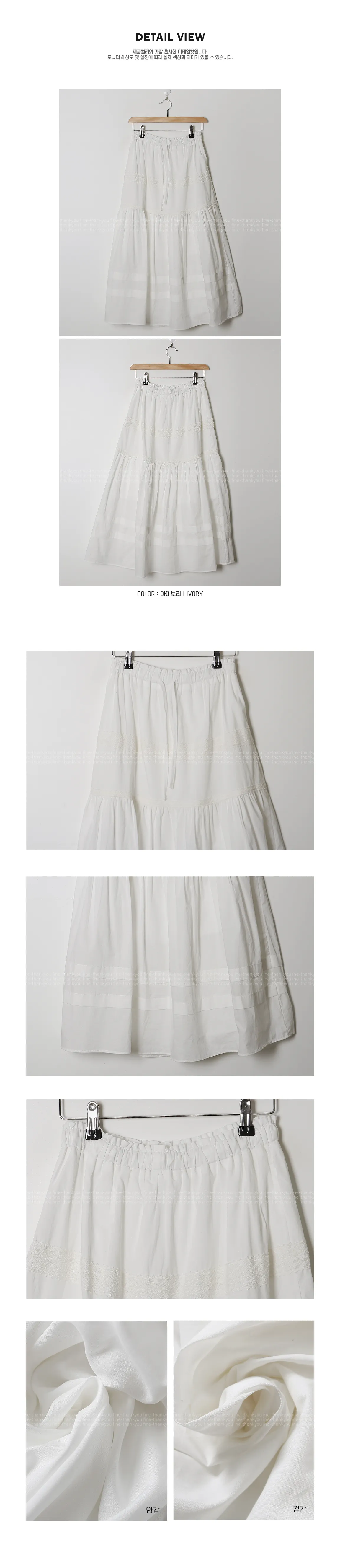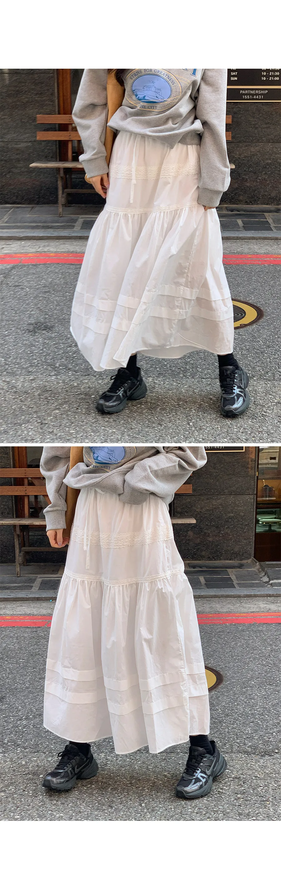 浪漫氛圍蕾絲飾邊下擺針摺層次裙擺中長裙