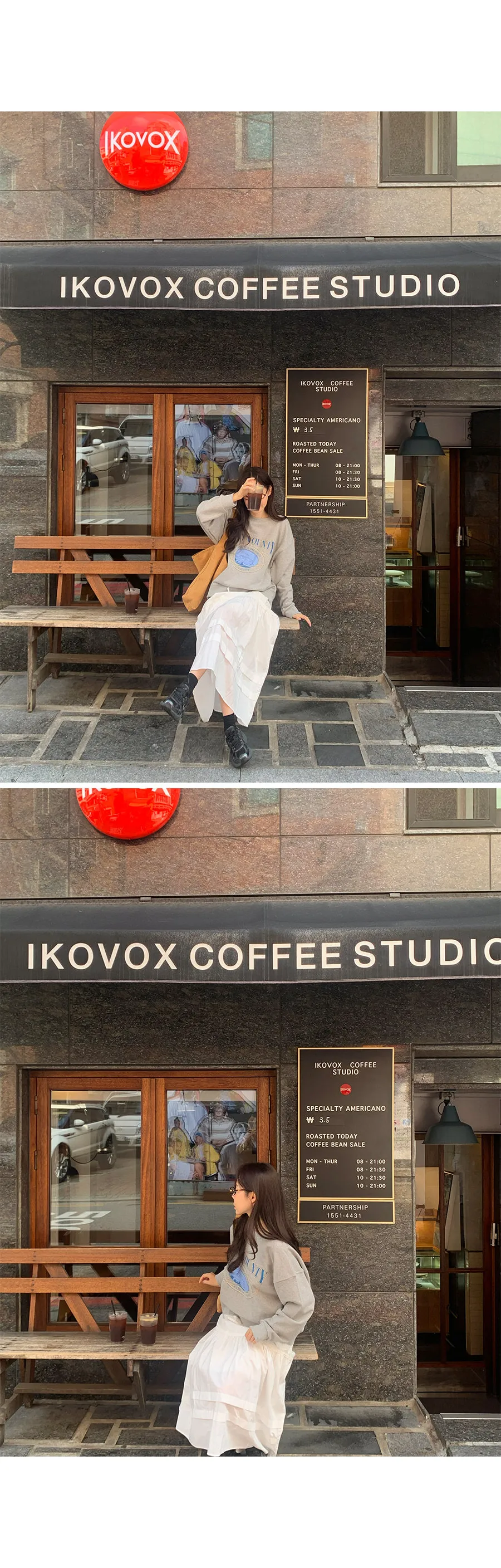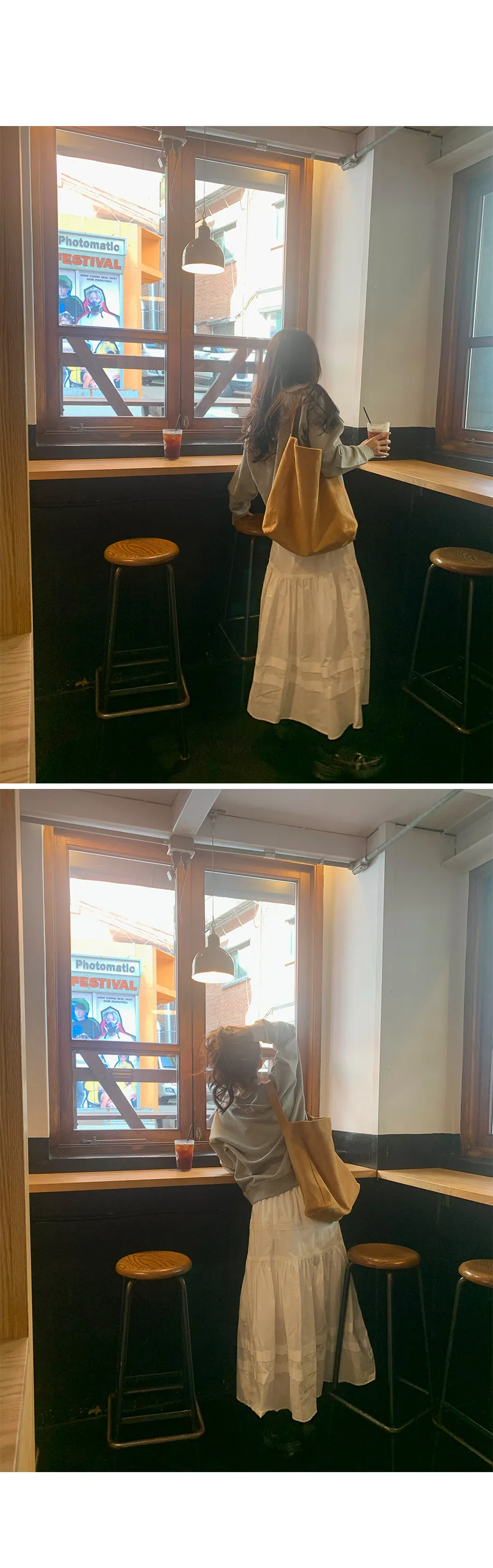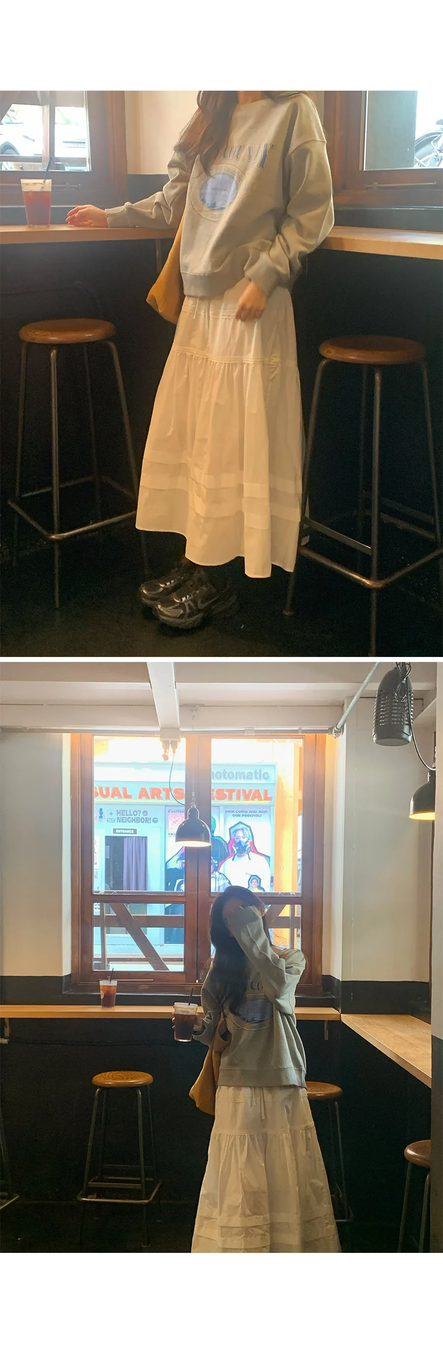 浪漫氛圍蕾絲飾邊下擺針摺層次裙擺中長裙