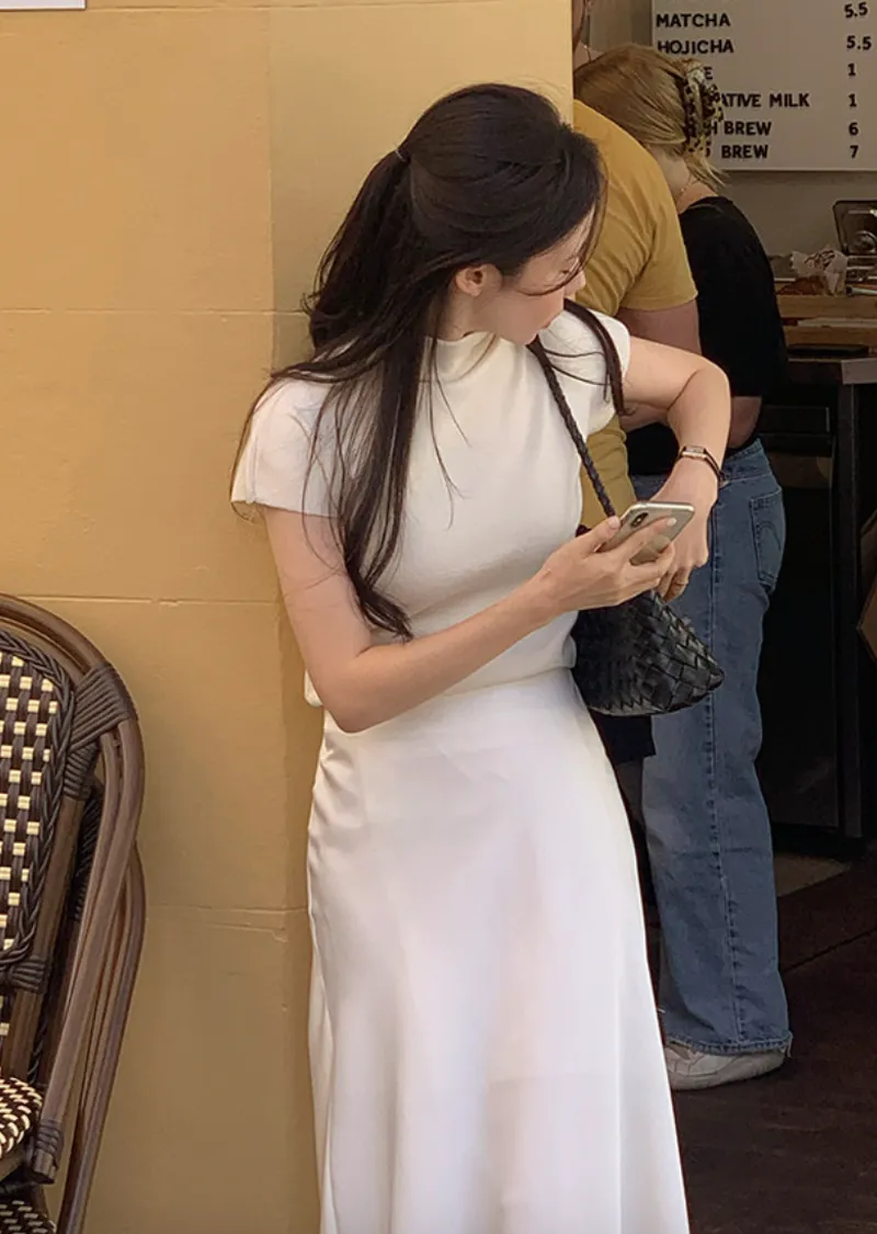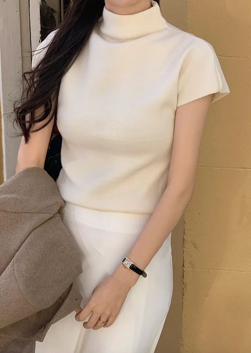 成熟都會氣息半領蓋袖柔軟針織上衣