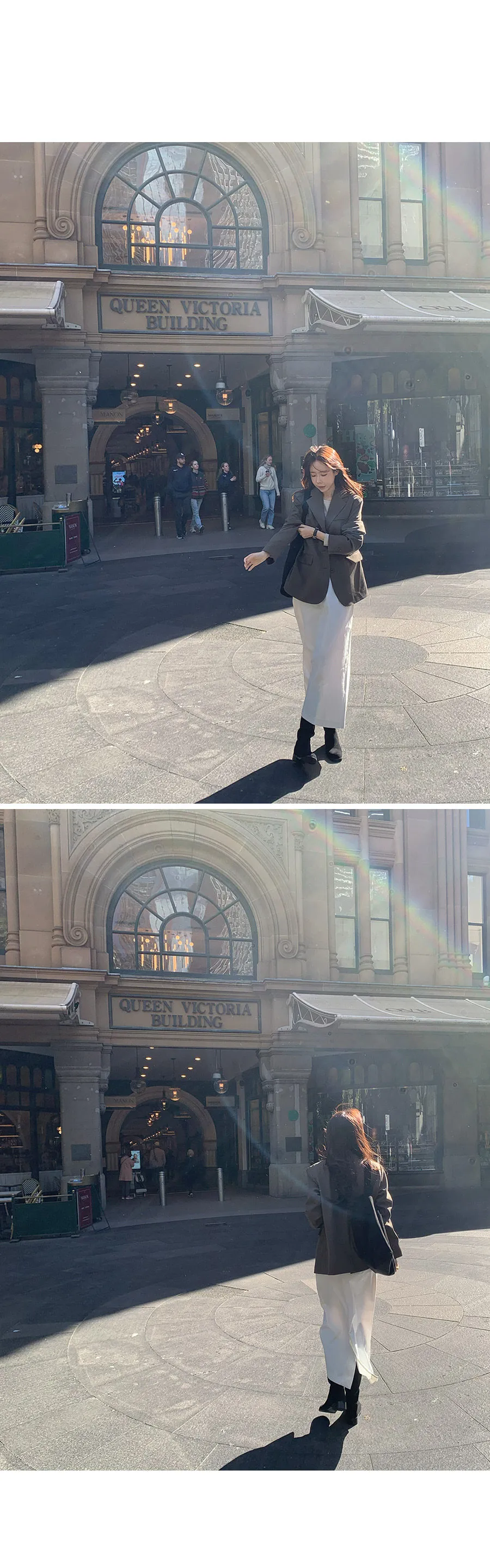 時尚氣息扣環與腰帶孔設計後開衩中長裙