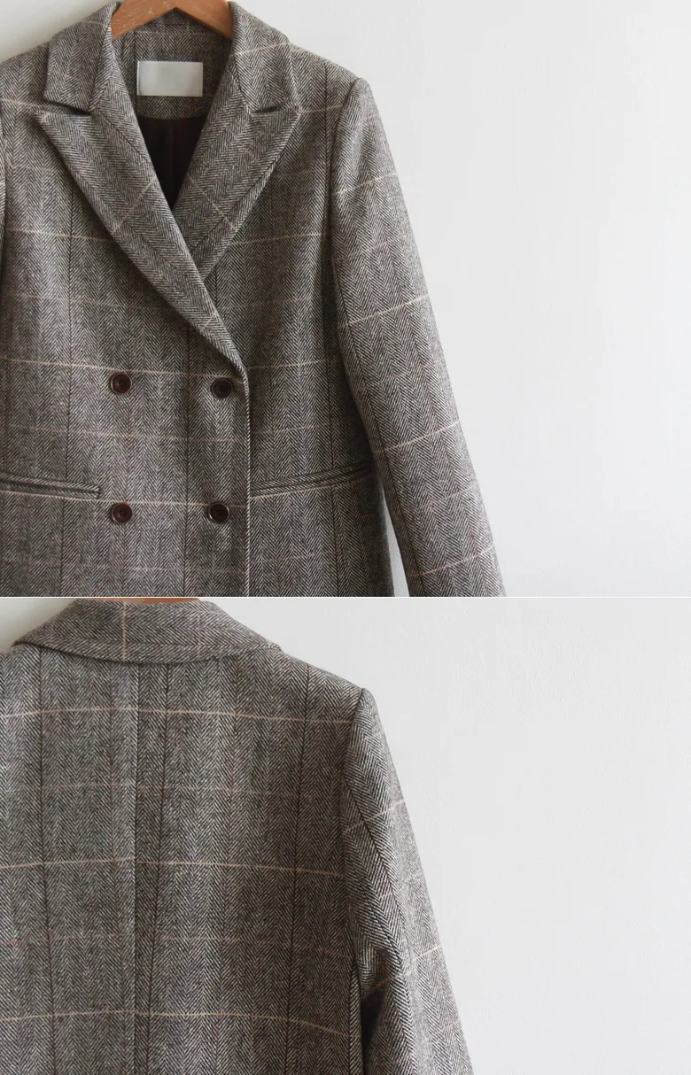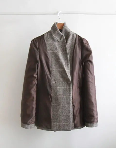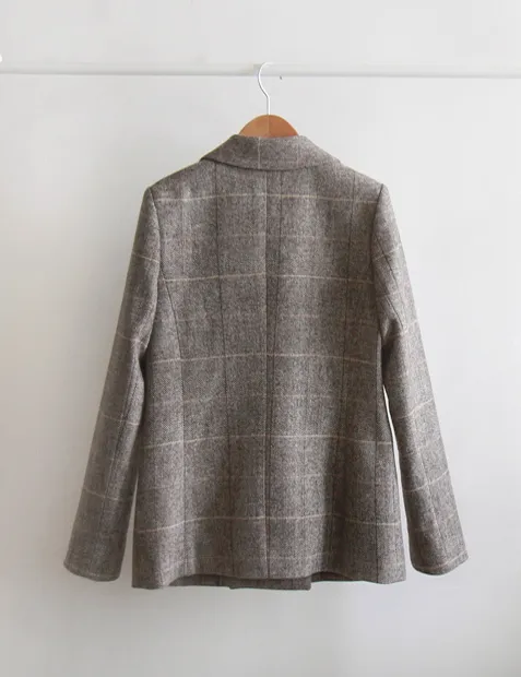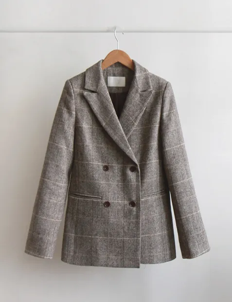 [含有20%羊毛] [品牌面料的品牌工藝和品牌品質] [品牌合身夾克,肩部和腰部完美貼合] [精緻的接縫正面,穿著時展現時尚線條] [搭配休閒,即使是絲綢材質的內裡層層強大的格紋外套,一下子就可以裝扮起來。]